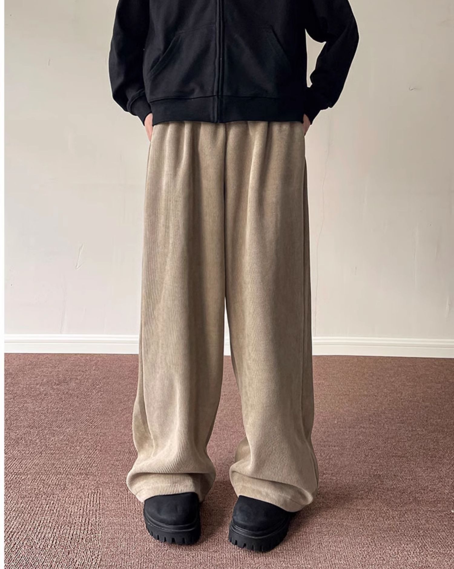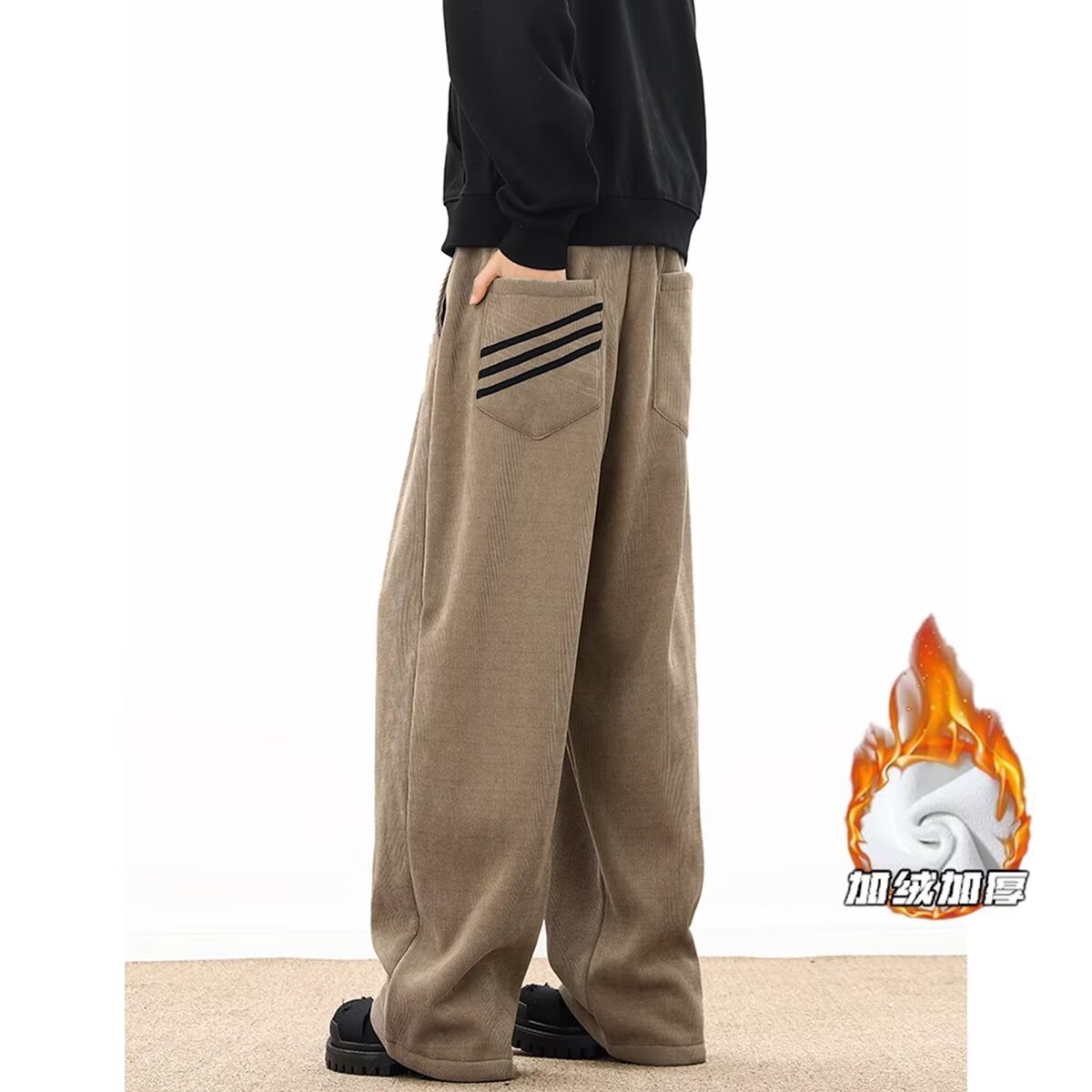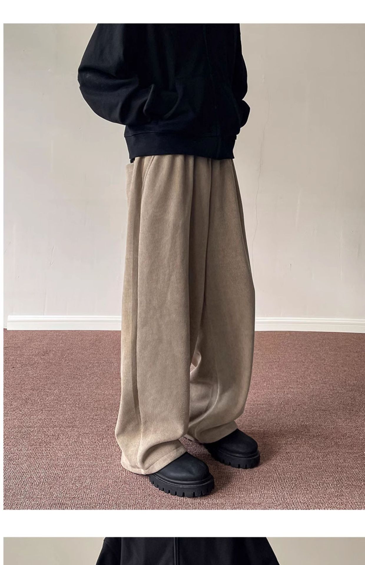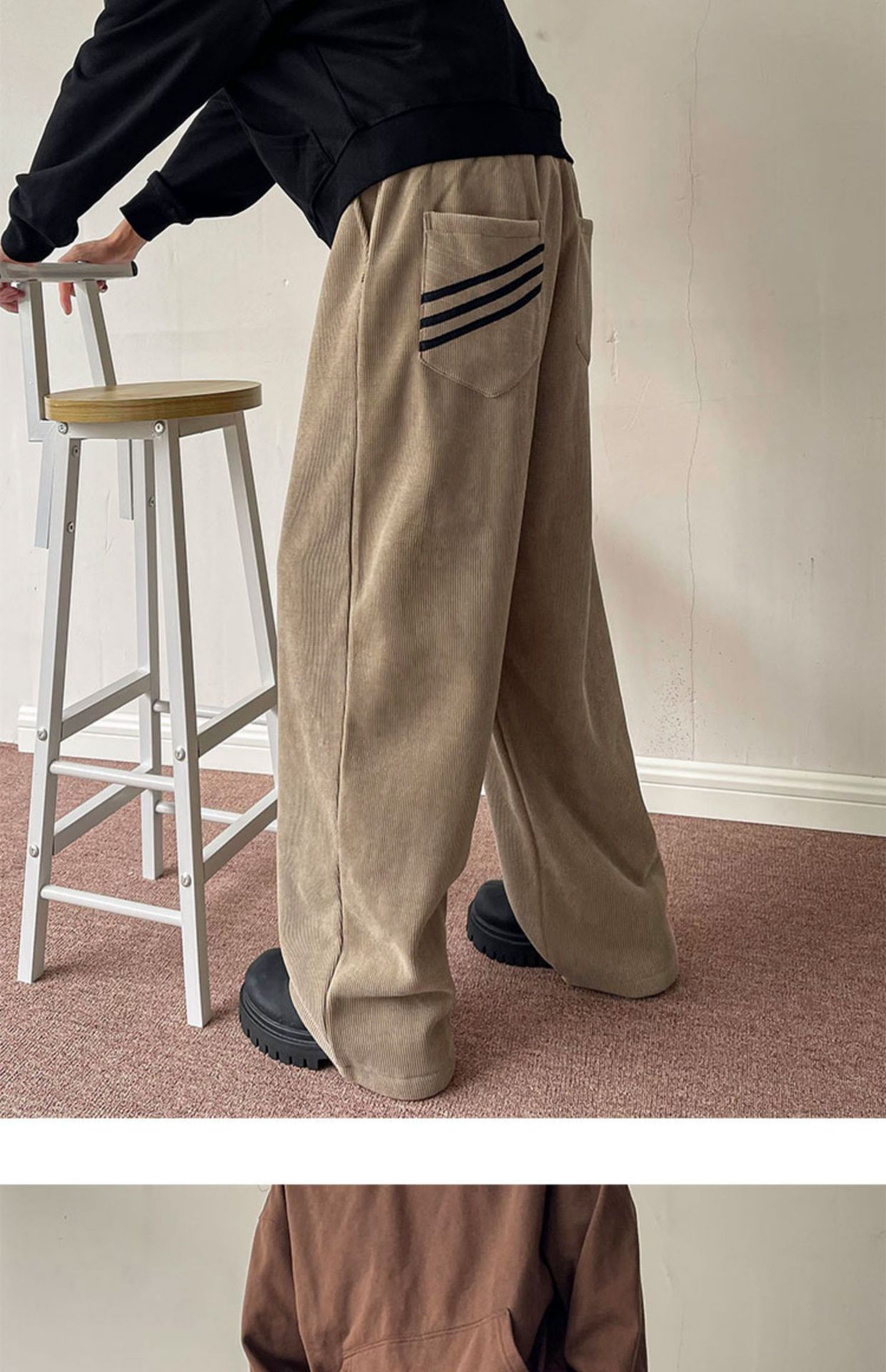 게으른 스타일 와이드 레그 바지 3 바 가드 바지 남자 코듀로이 캐주얼 바지 미국 스타일 드래핑 스트레이트 바지 트렌디스토어 가기