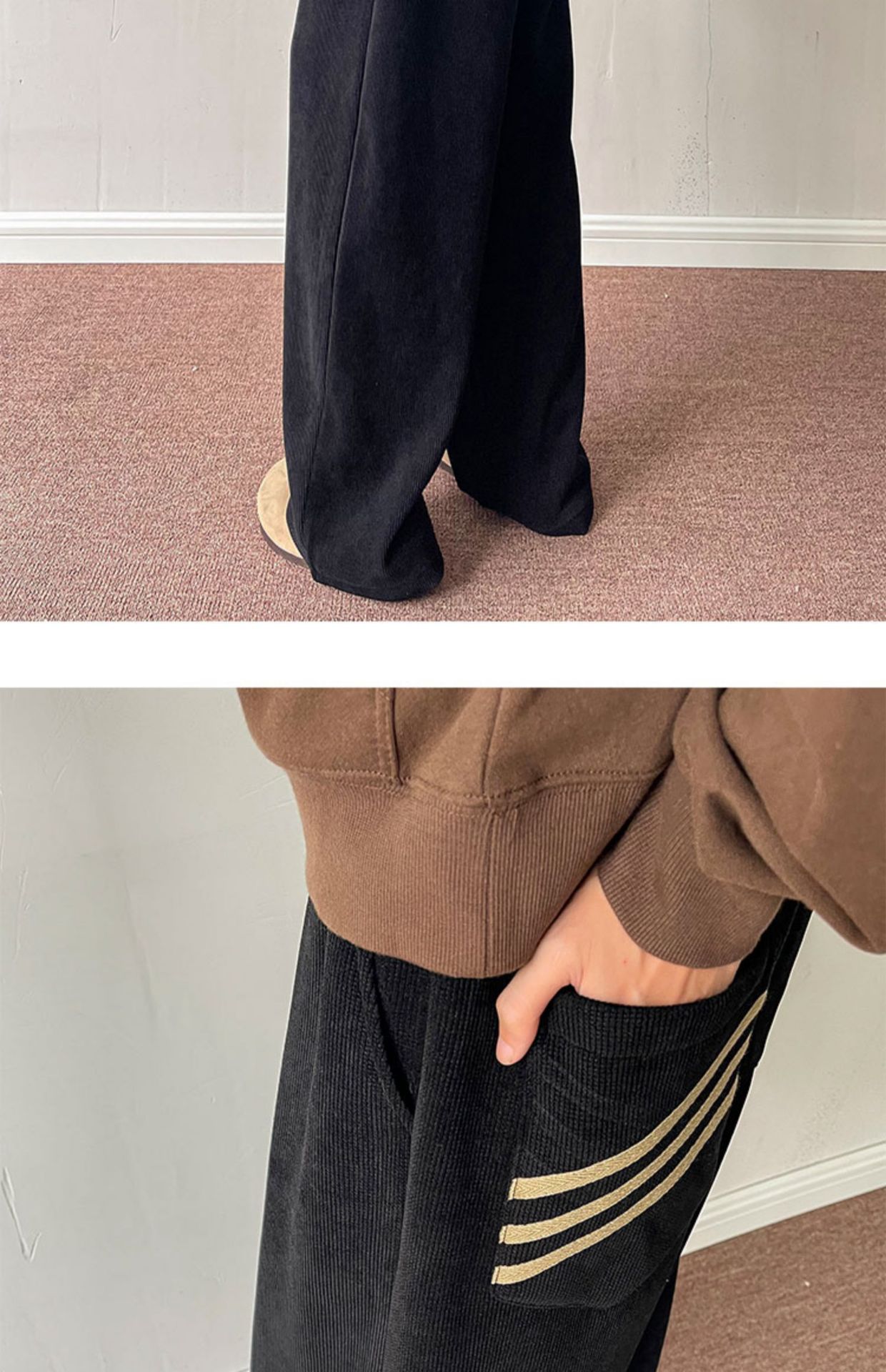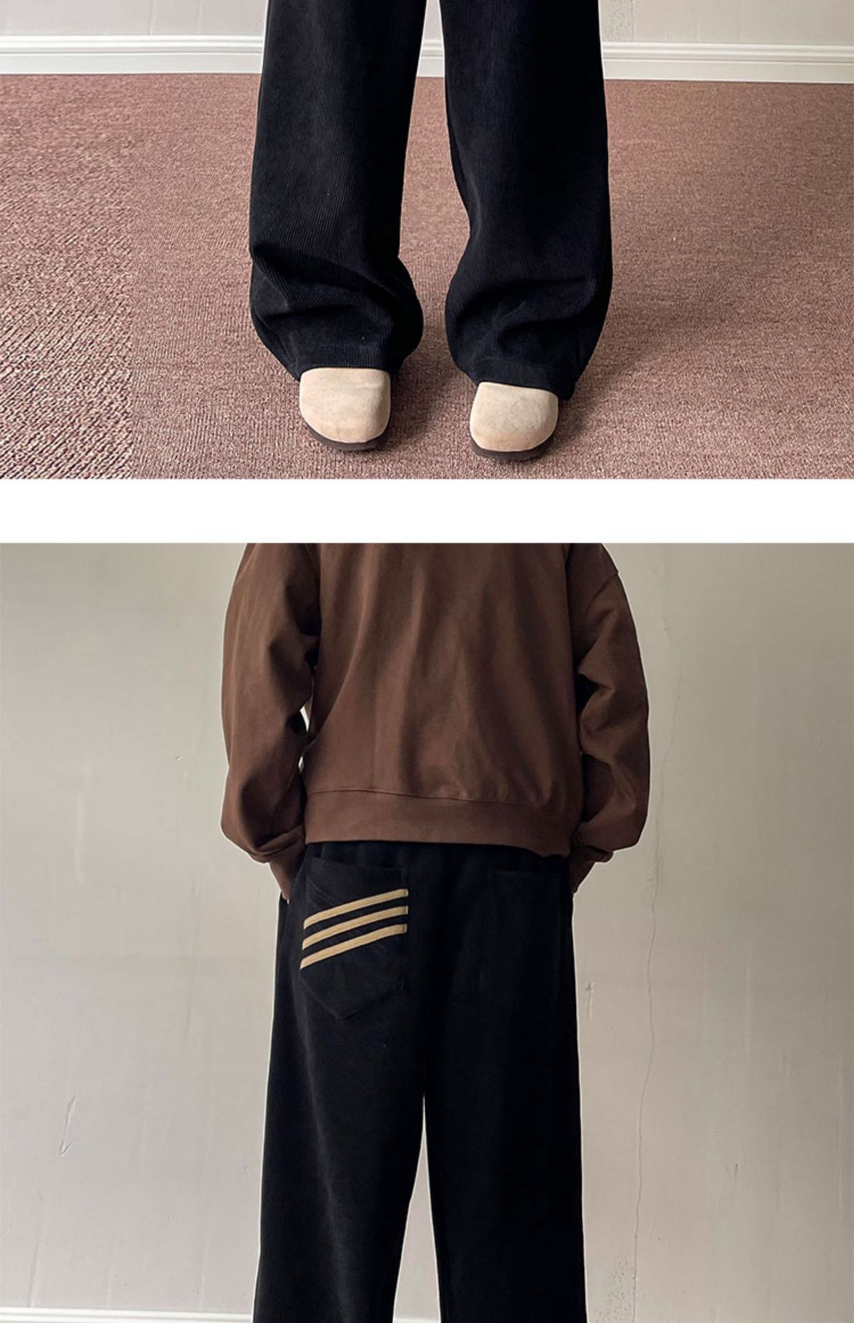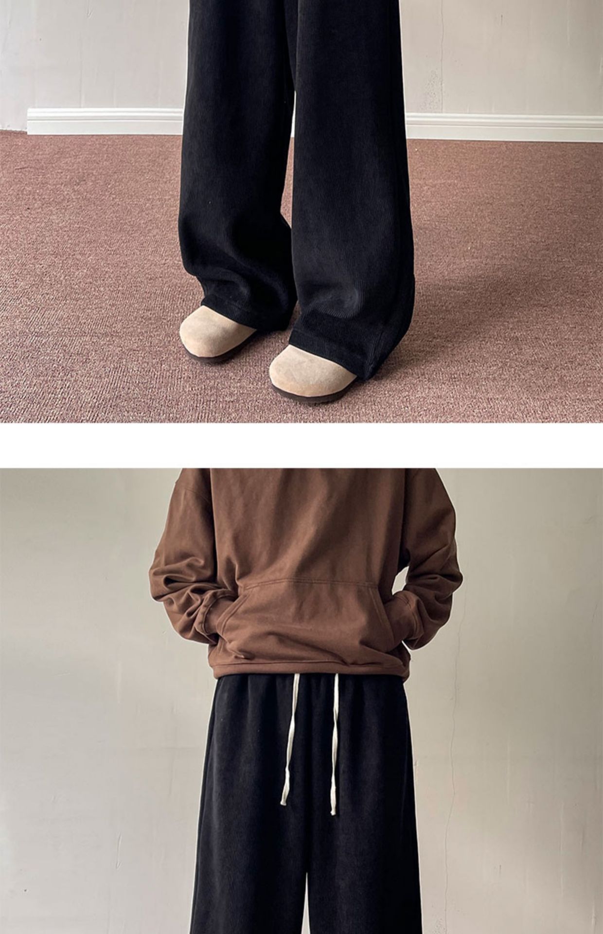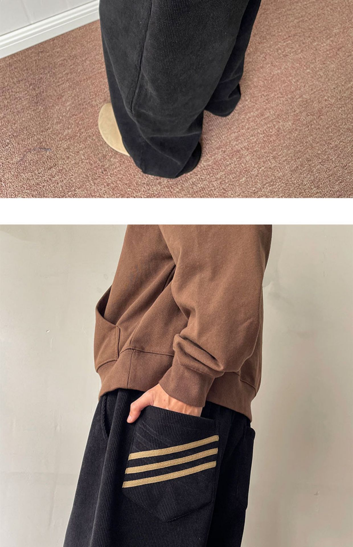 게으른 스타일 와이드 레그 바지 3 바 가드 바지 남자 코듀로이 캐주얼 바지 미국 스타일 드래핑 스트레이트 바지 트렌디스토어 가기
