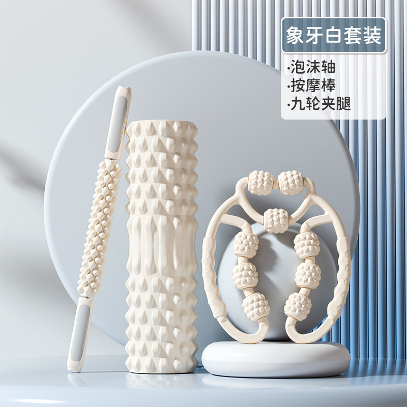 • 아이보리화이트 45cm [3종세트] 폼롤러 + 마사지스틱 + 다리마사지기