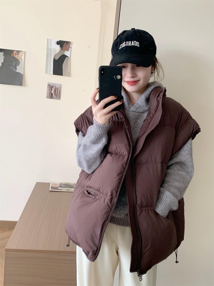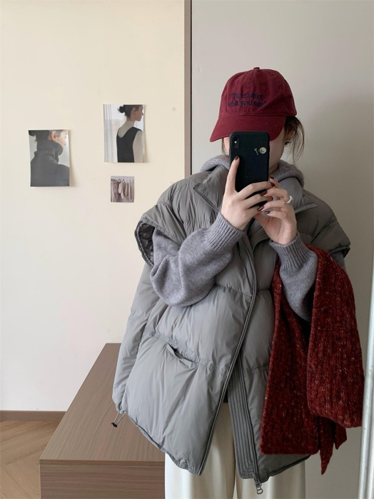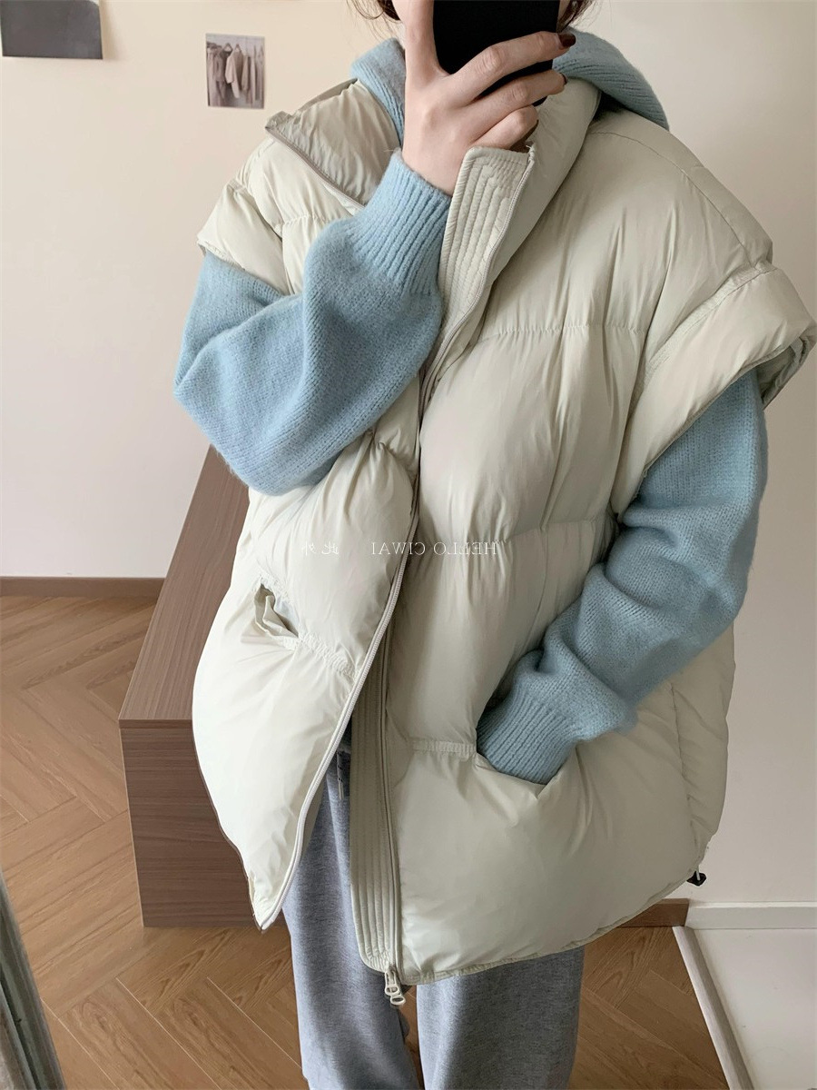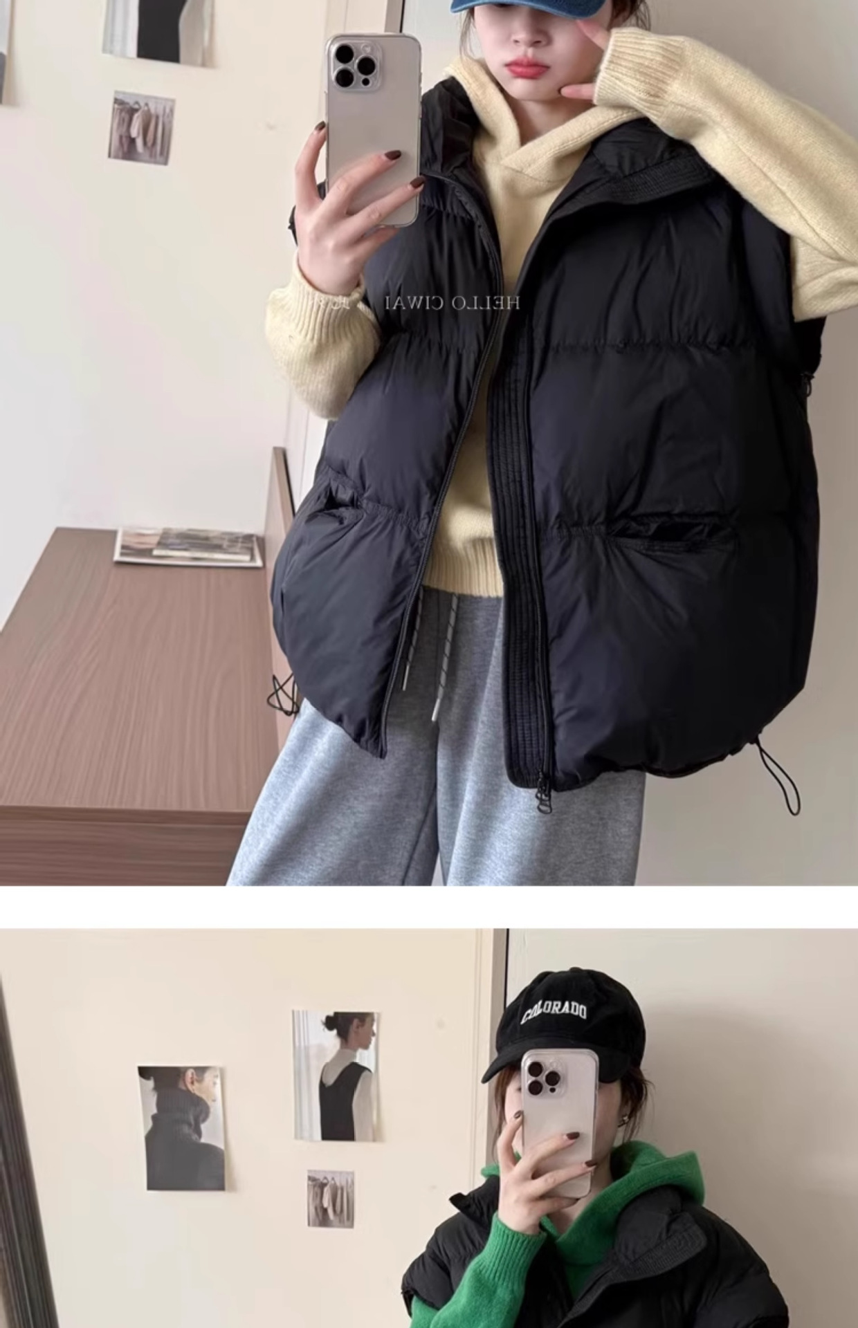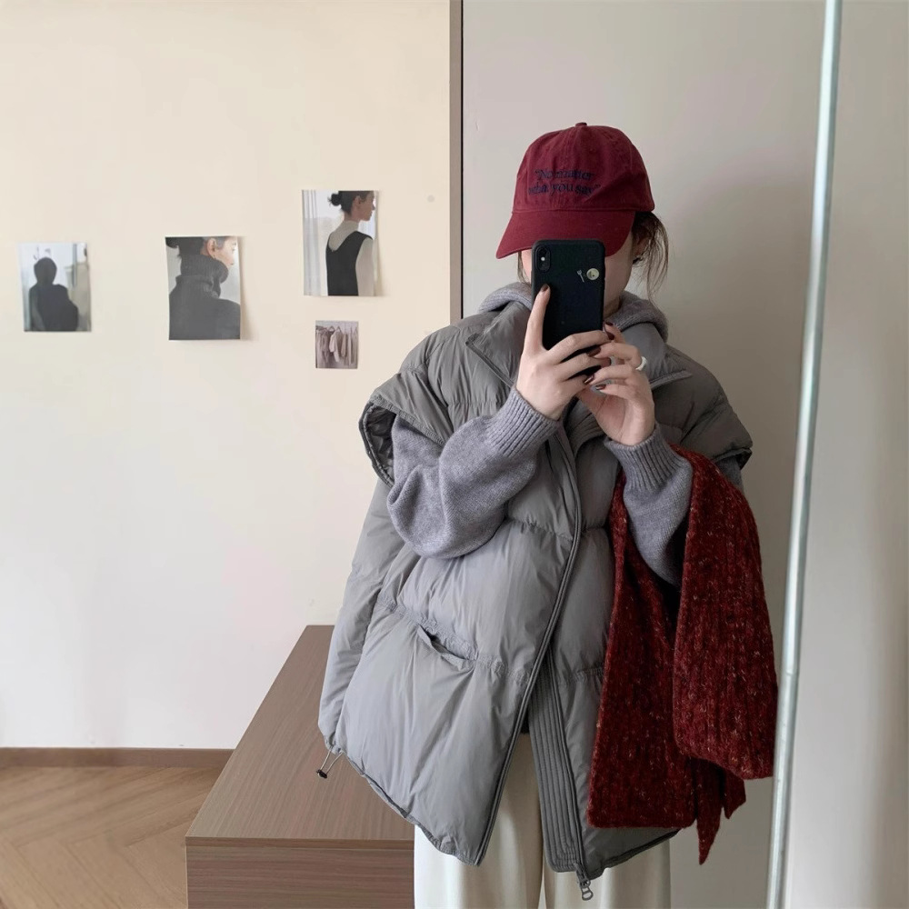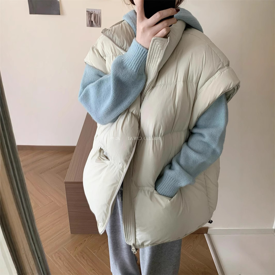 2025 가을, 겨울 새로운 핫 스타일 화이트 오리 여성 한국 캐주얼 다운 조끼 느슨한 따뜻한 양복 조끼 조끼 재킷스토어 가기