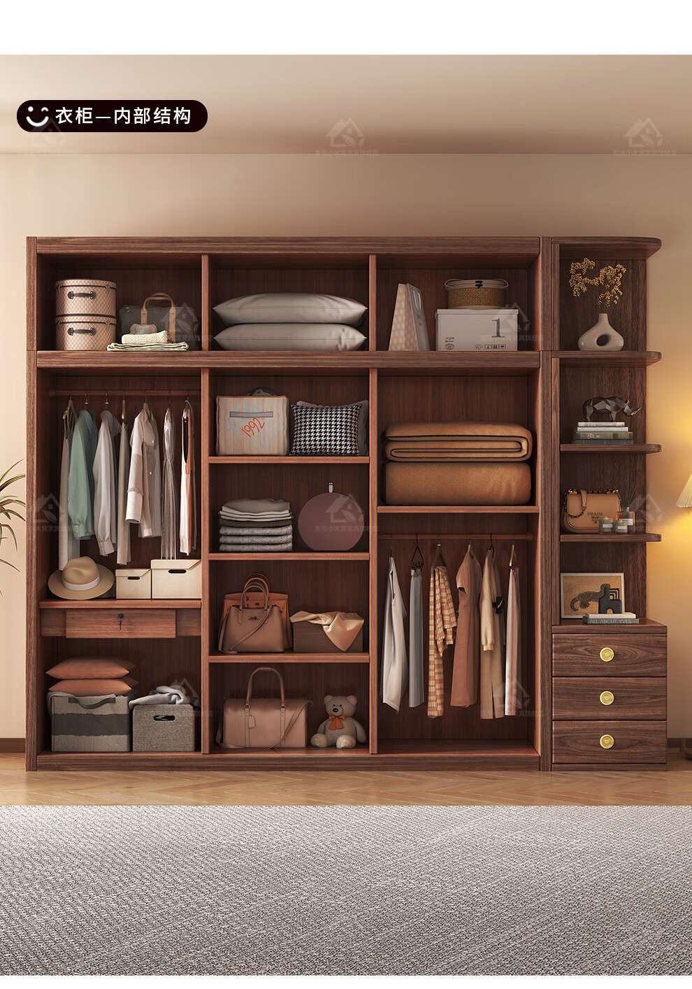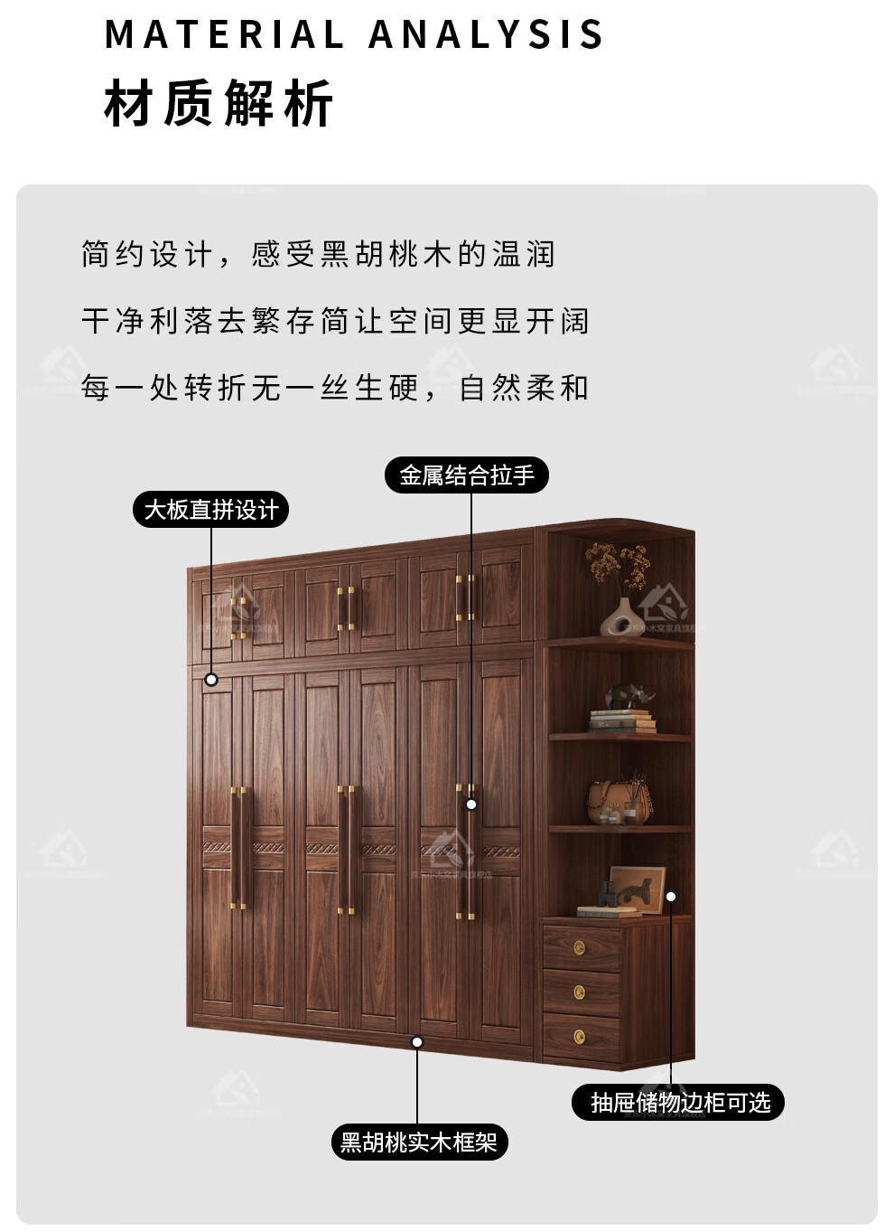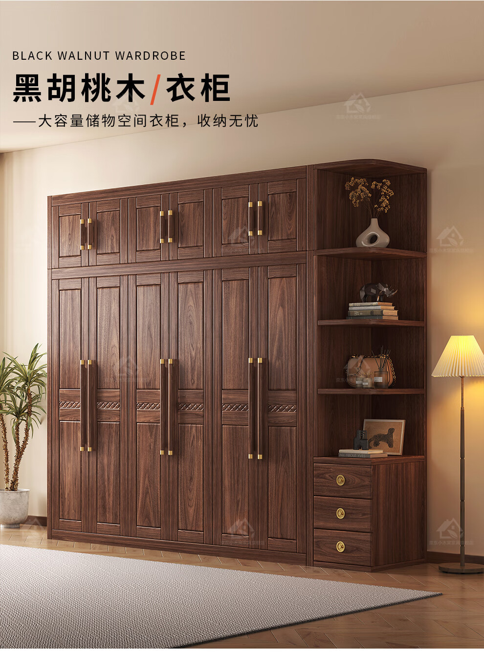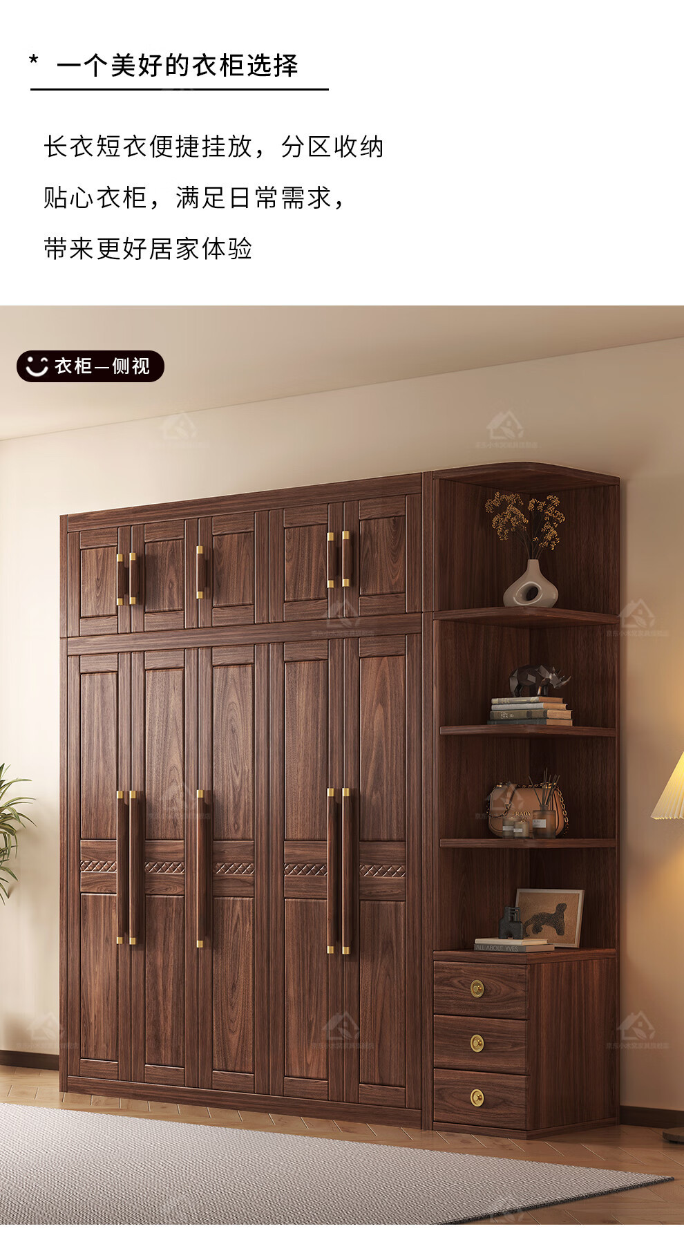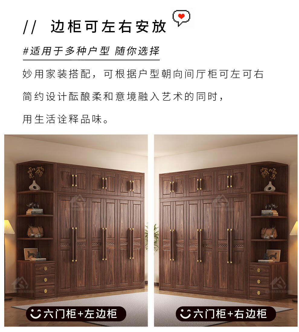 블랙 호두 우드 솔리드 우드 옷장 홈 침실 오픈 도어 스토리지 캐비닛 작은 아파트 새로운 중국 스타일 옷장