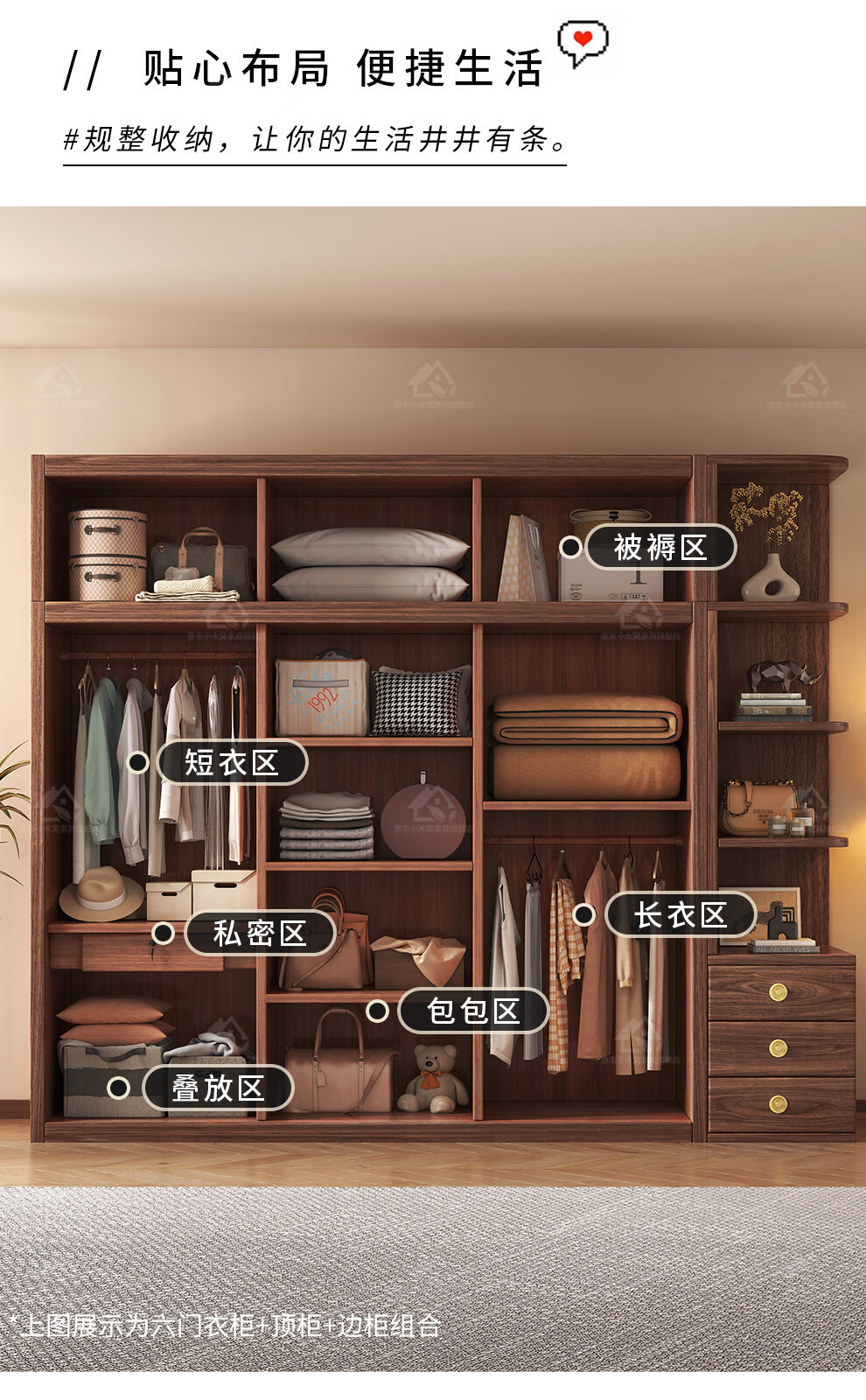 • [블랙월넛] 6도어 옷장 + 상단수납장 + 코너수납장