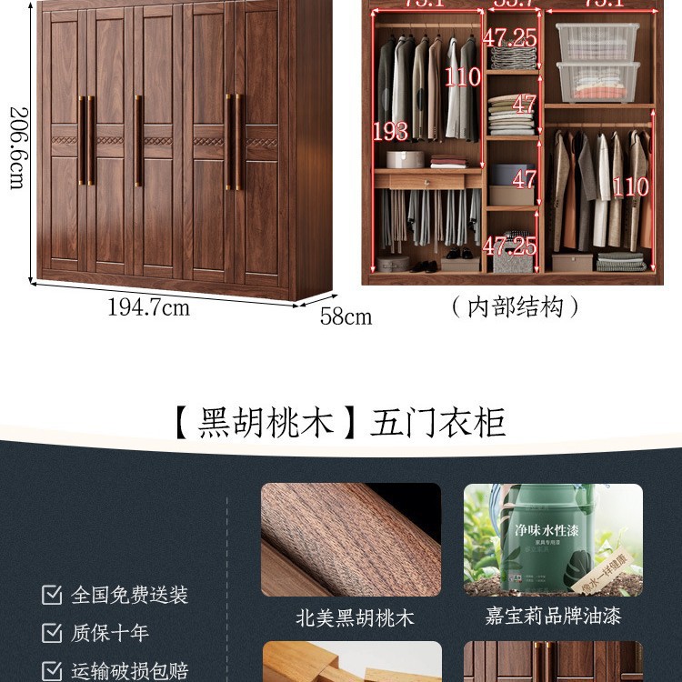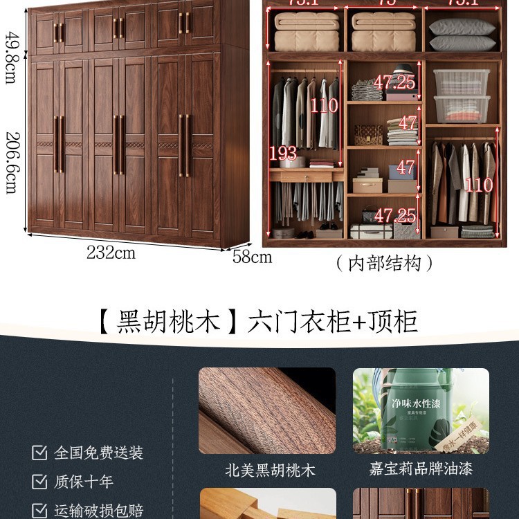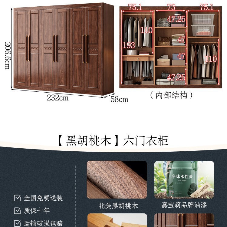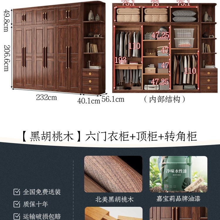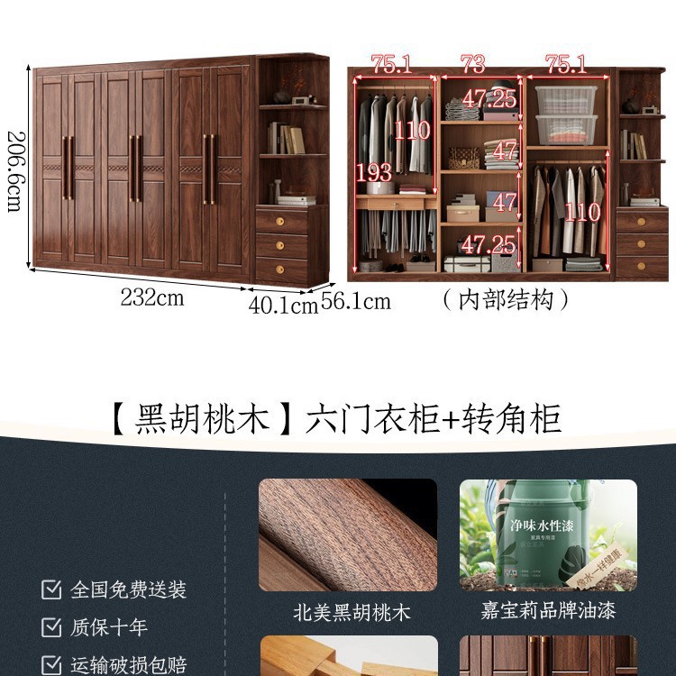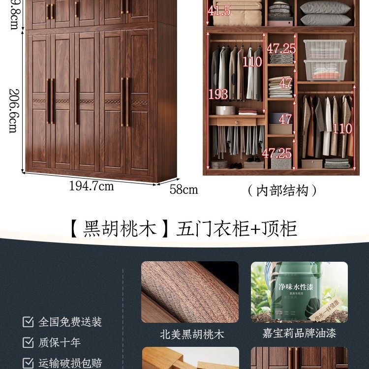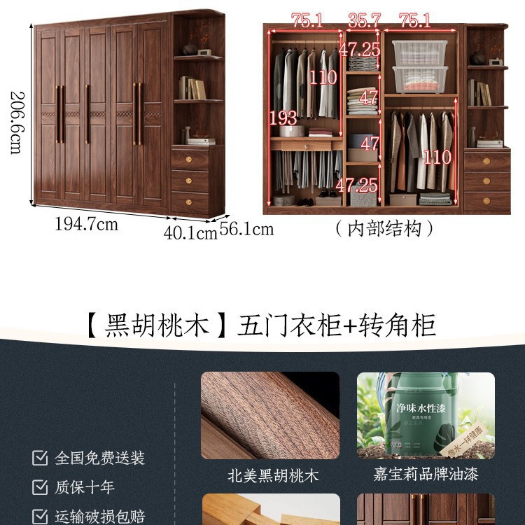 블랙 호두 우드 솔리드 우드 옷장 홈 침실 오픈 도어 스토리지 캐비닛 작은 아파트 새로운 중국 스타일 옷장스토어 가기