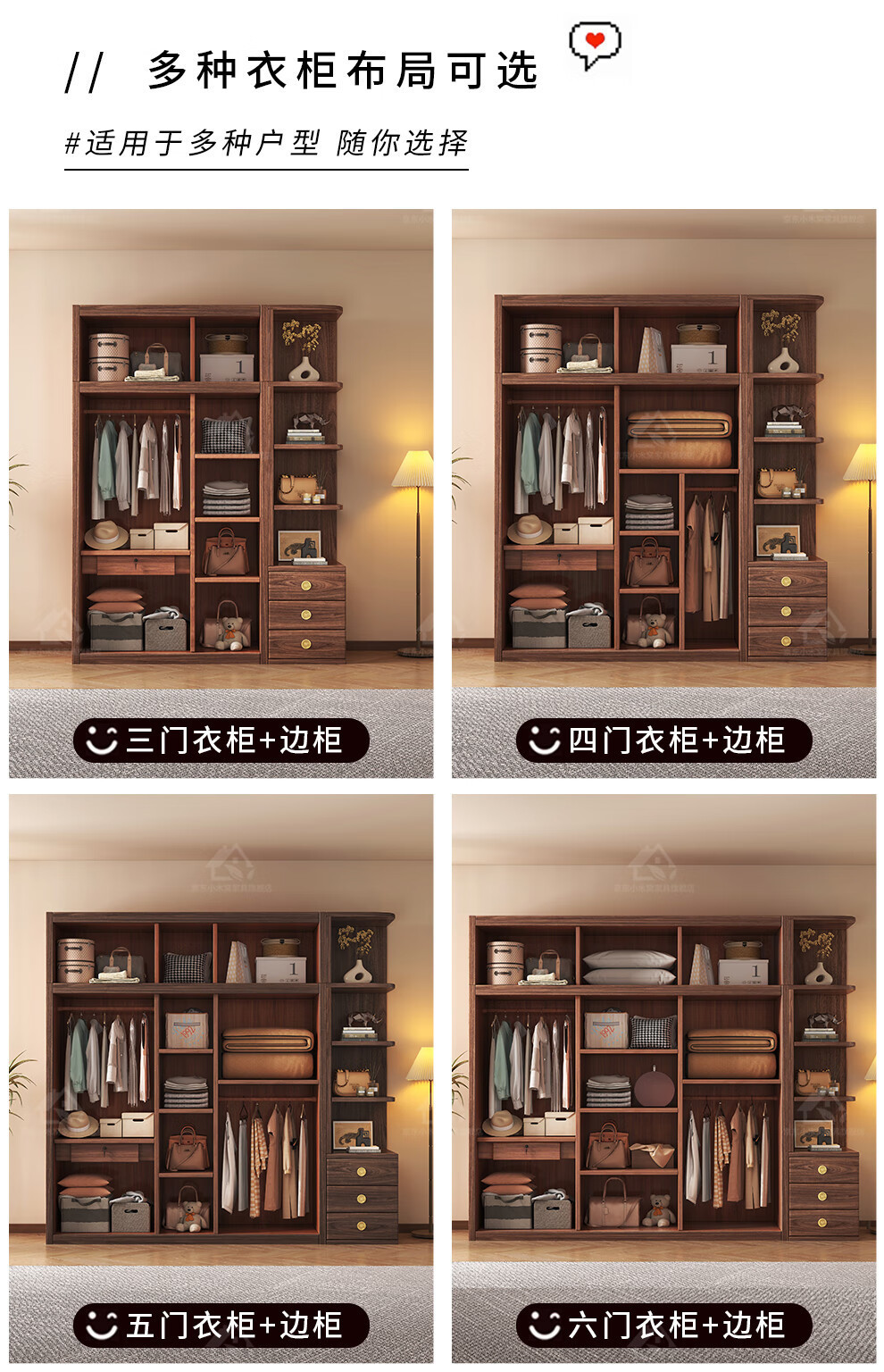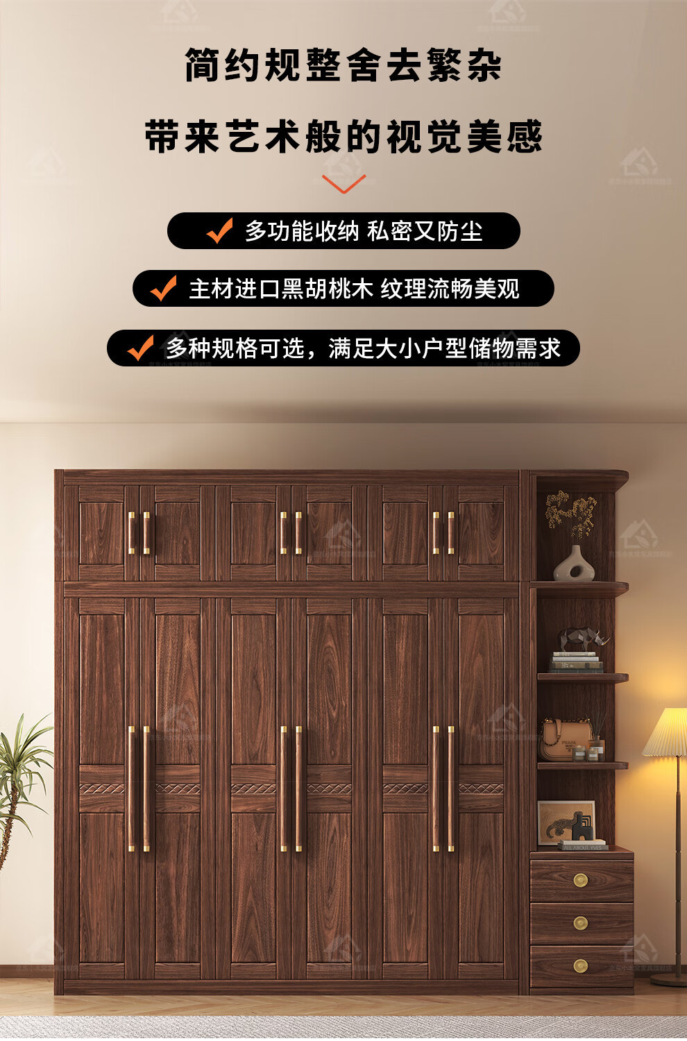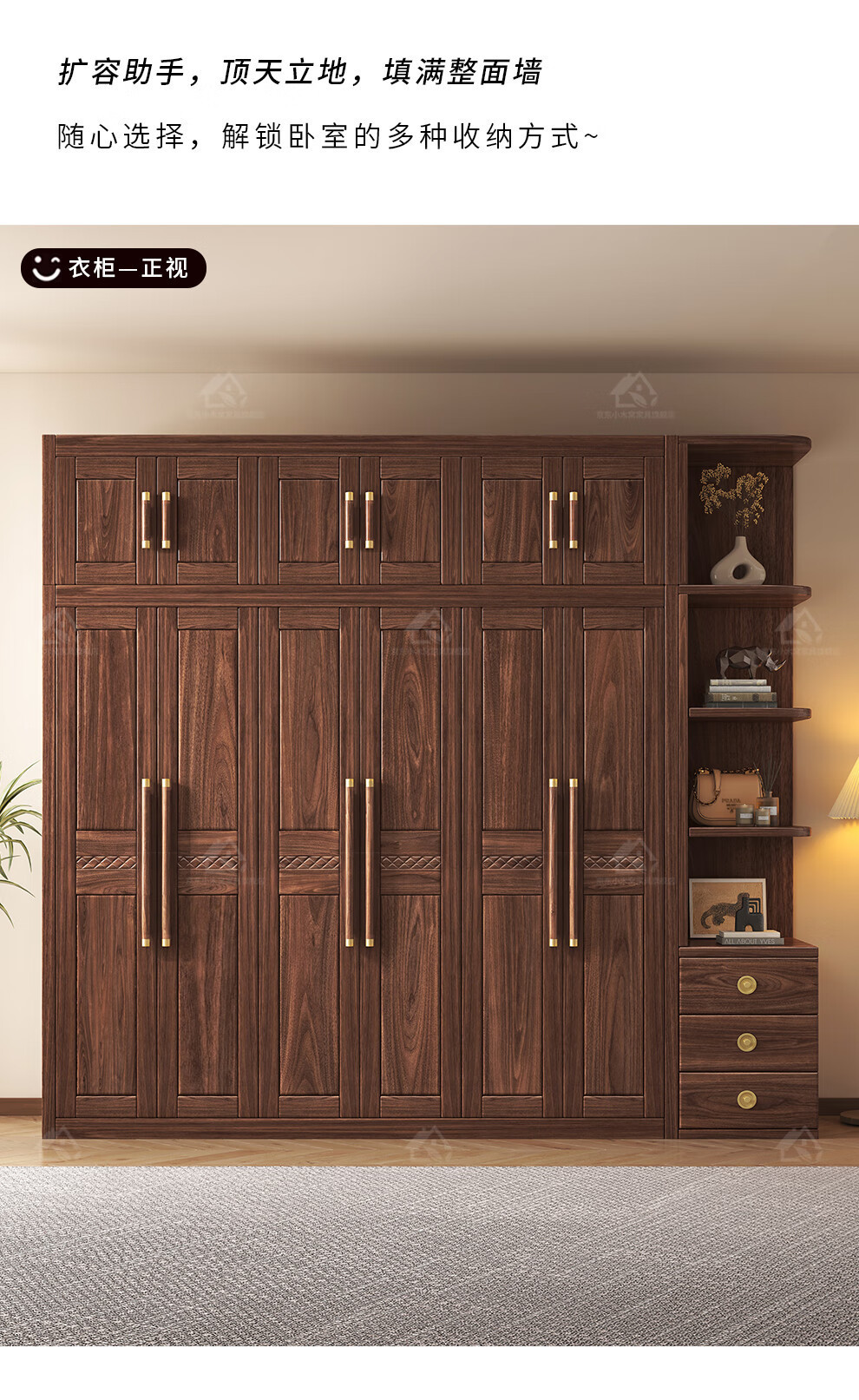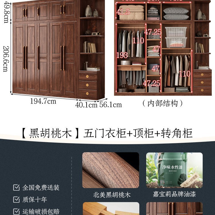 블랙 호두 우드 솔리드 우드 옷장 홈 침실 오픈 도어 스토리지 캐비닛 작은 아파트 새로운 중국 스타일 옷장스토어 가기
