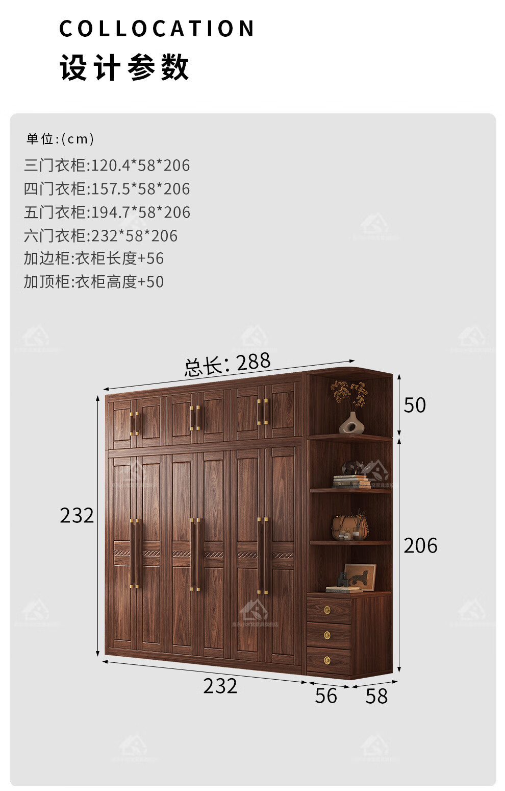 • [블랙월넛] 6도어 옷장 + 탑캐비닛