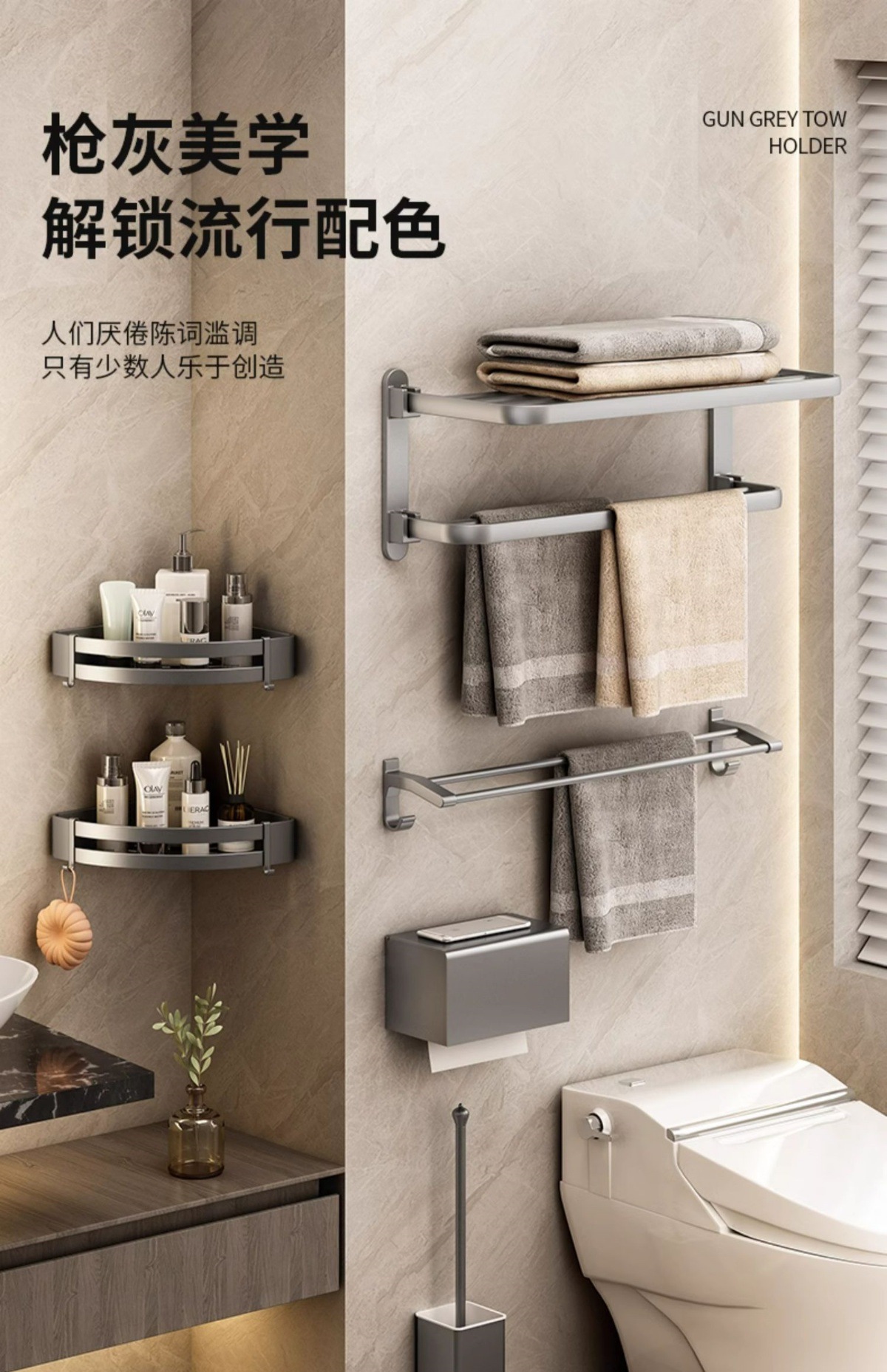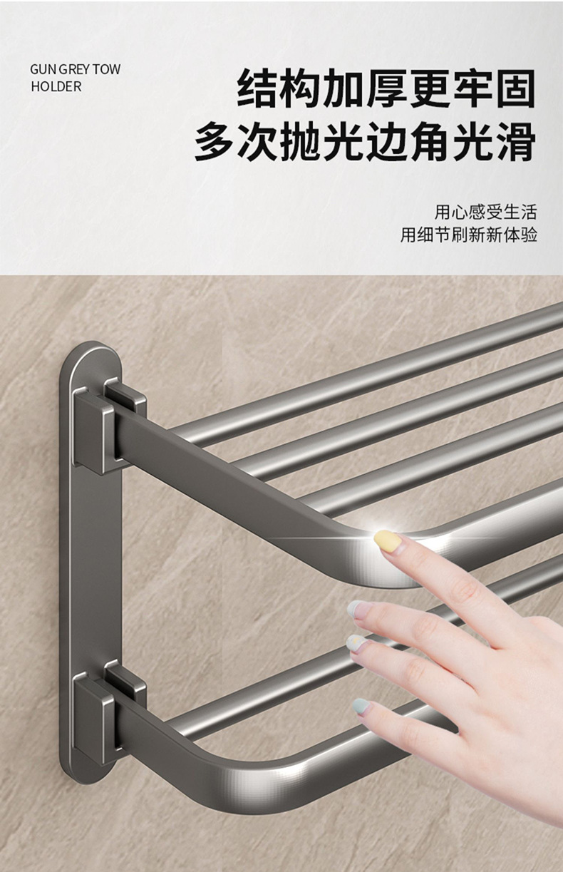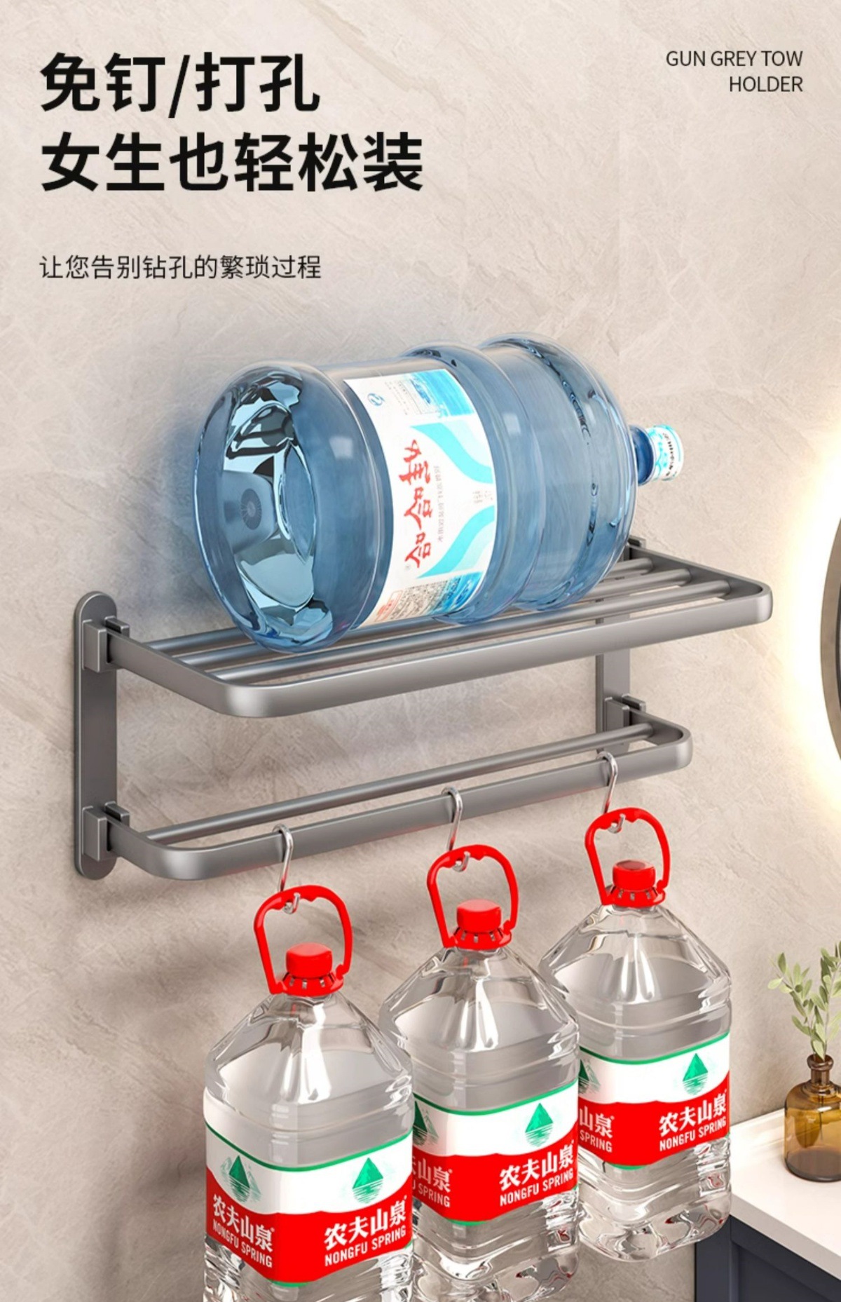 총 회색 공간 알루미늄 수건 랙 펀치 프리 화장실 욕실 랙 벽 장착 화장실 수건 랙