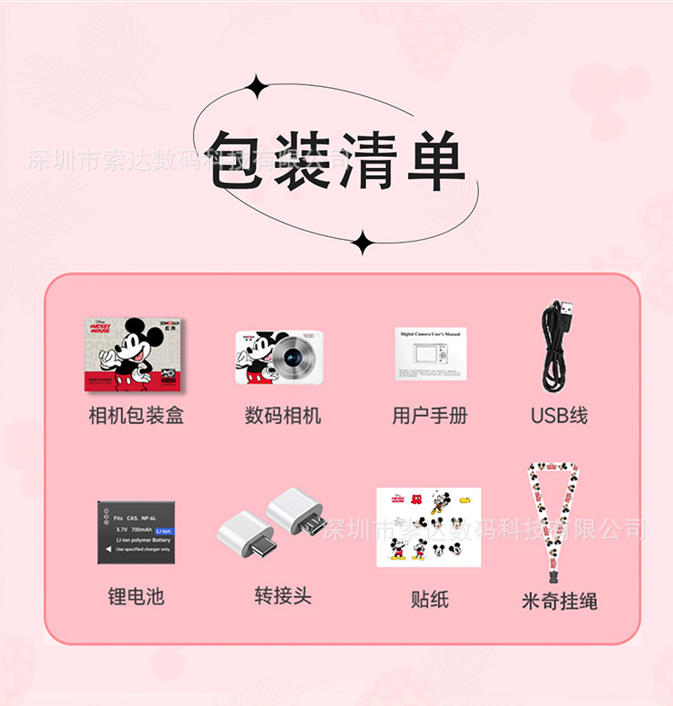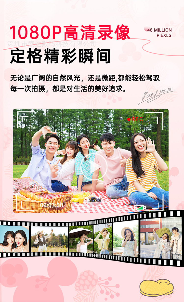 【송디안-미키 콜라보레이션】디지털 카메라 어린이 학생 파티 셀카 카메라 선물 DSLR 신제품