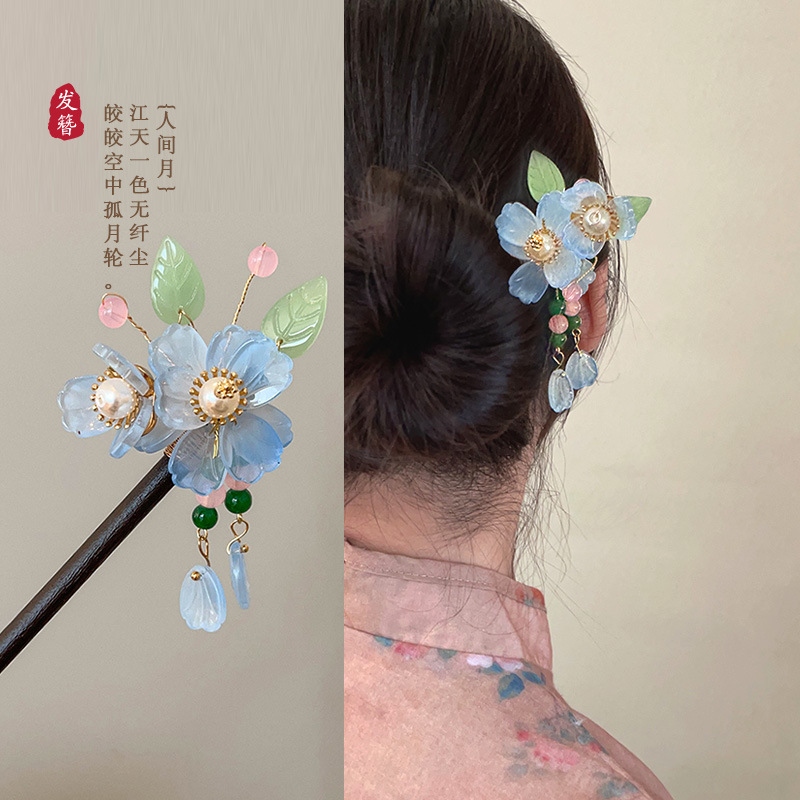 중추절 헤어 핀 여성 골동품 한후 헤어 액세서리 새로운 중국 스타일 나무 머리핀 고급 술 스텝 업 헤어핀 헤드웨어스토어 가기