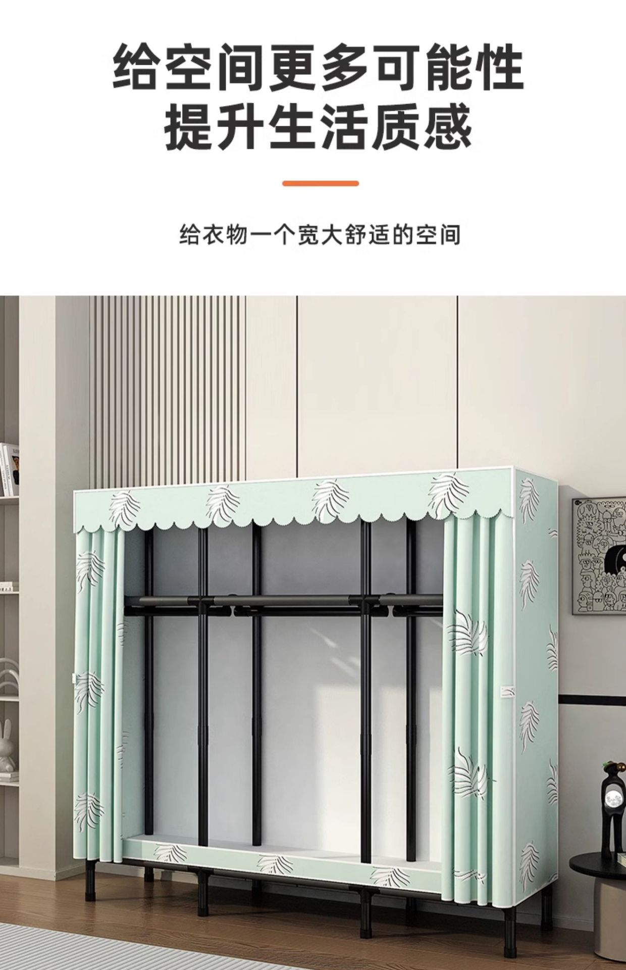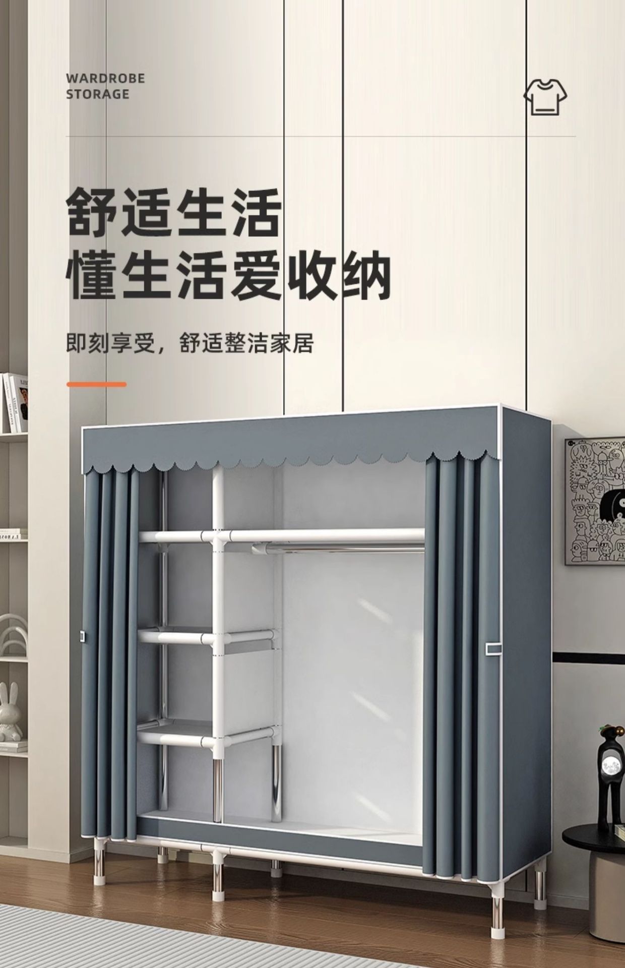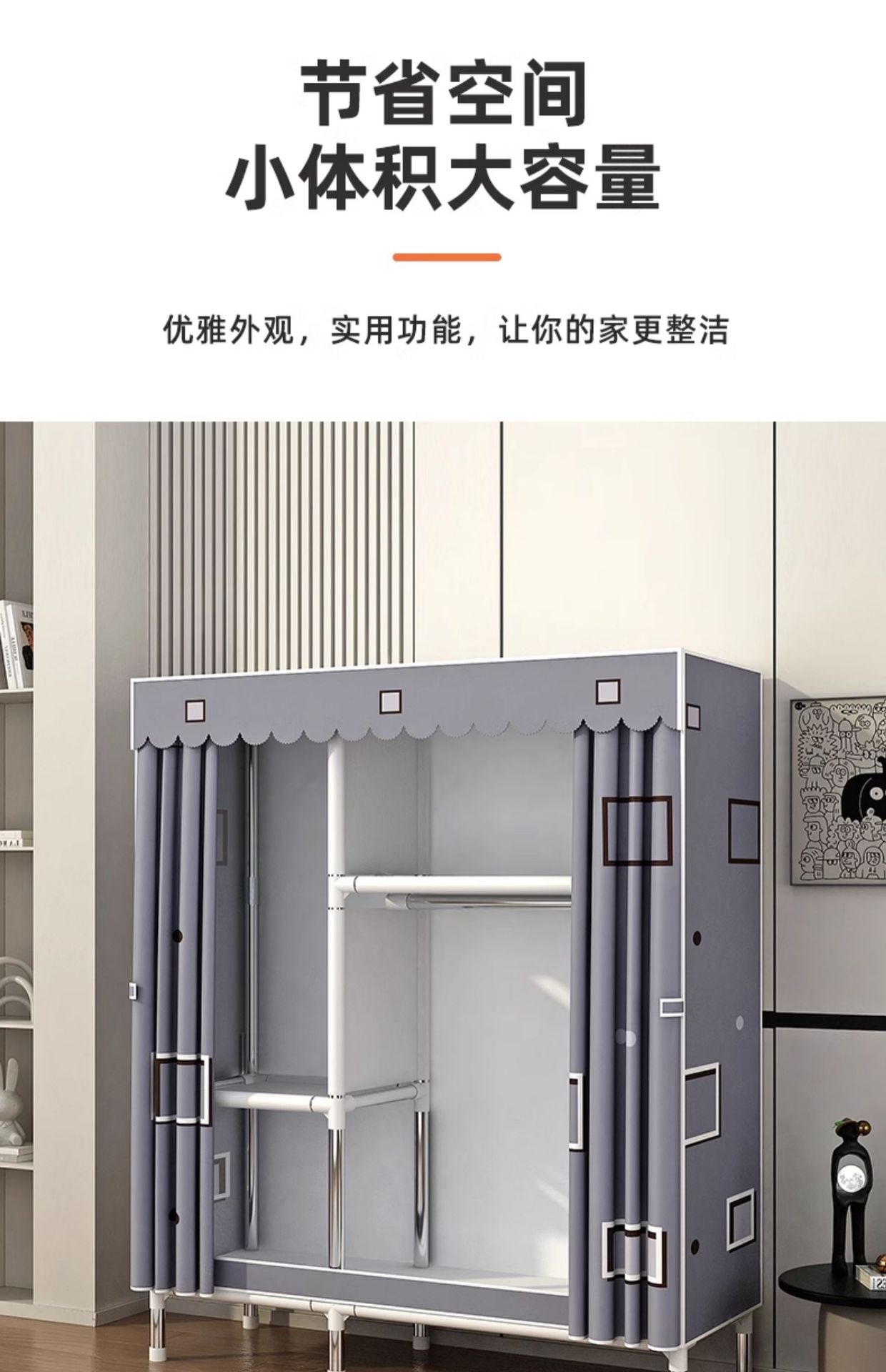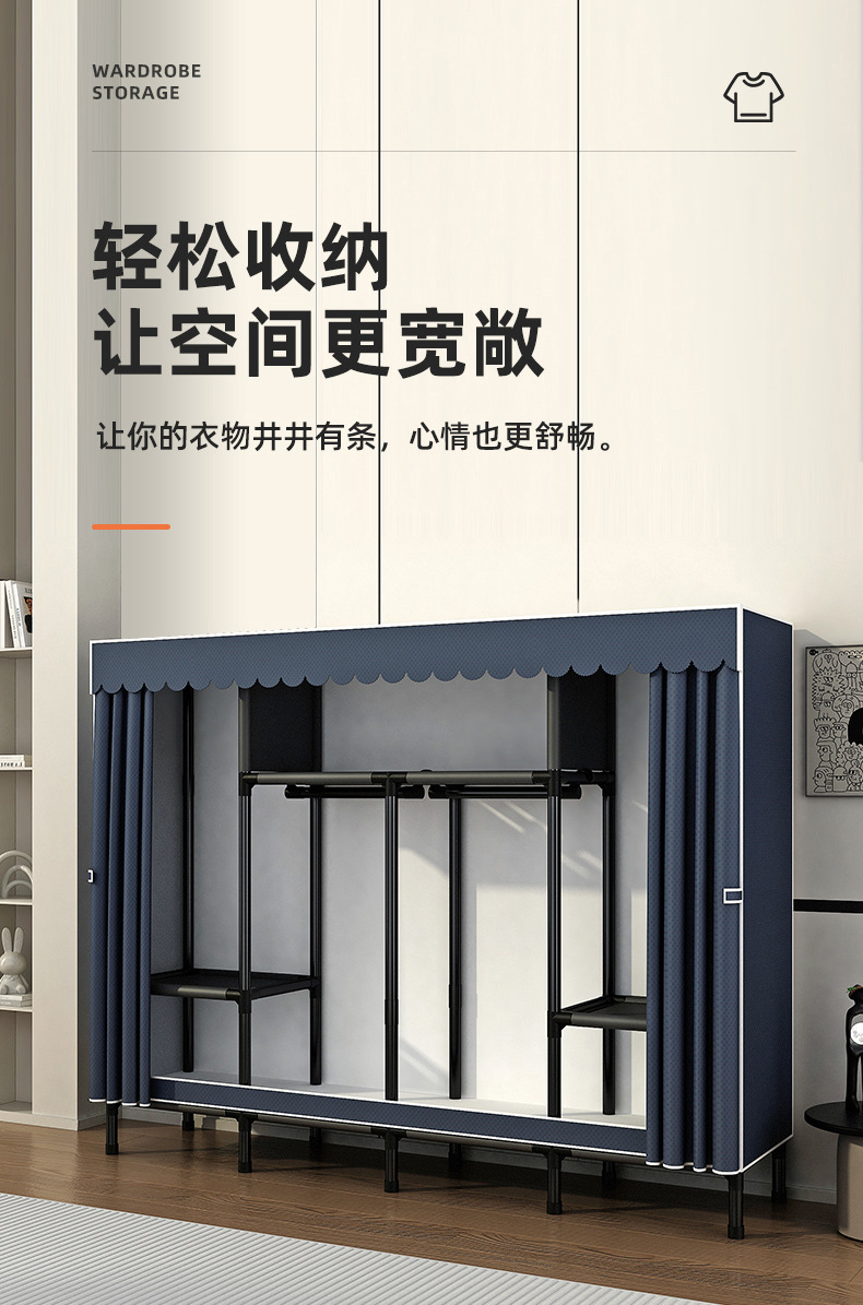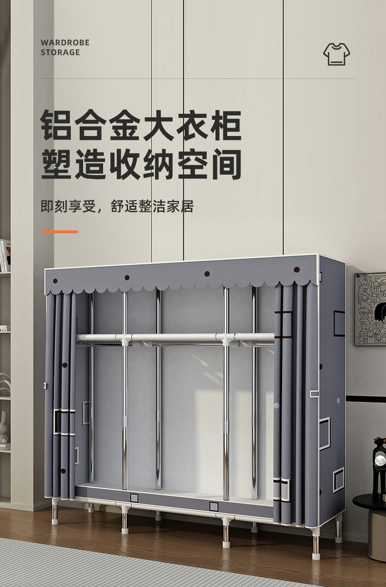 옷장 가정용 침실 조립 천 옷장 풀 스틸 프레임 두꺼운 간단한 천 옷장 걸이 옷장 임대 방스토어 가기