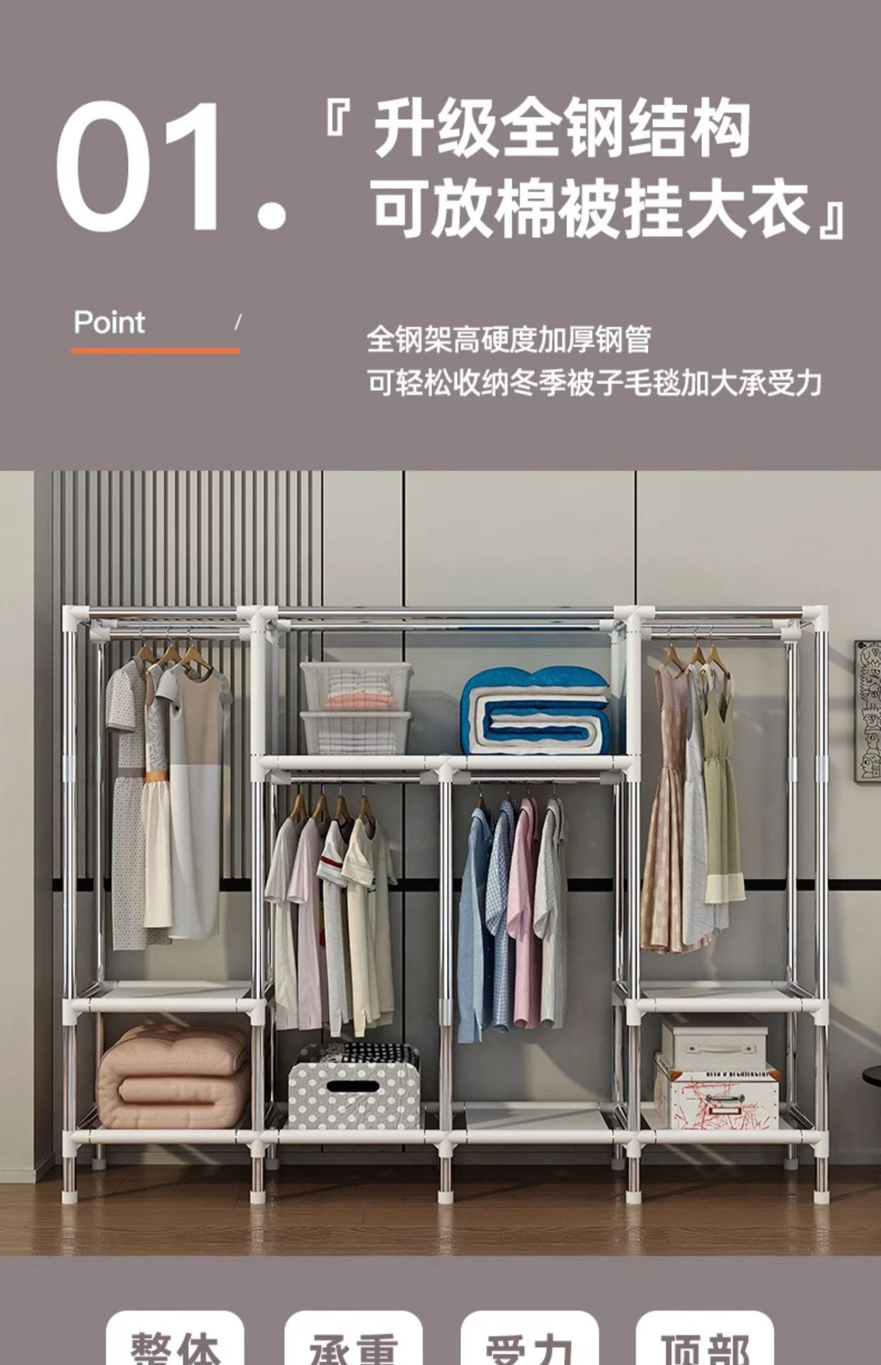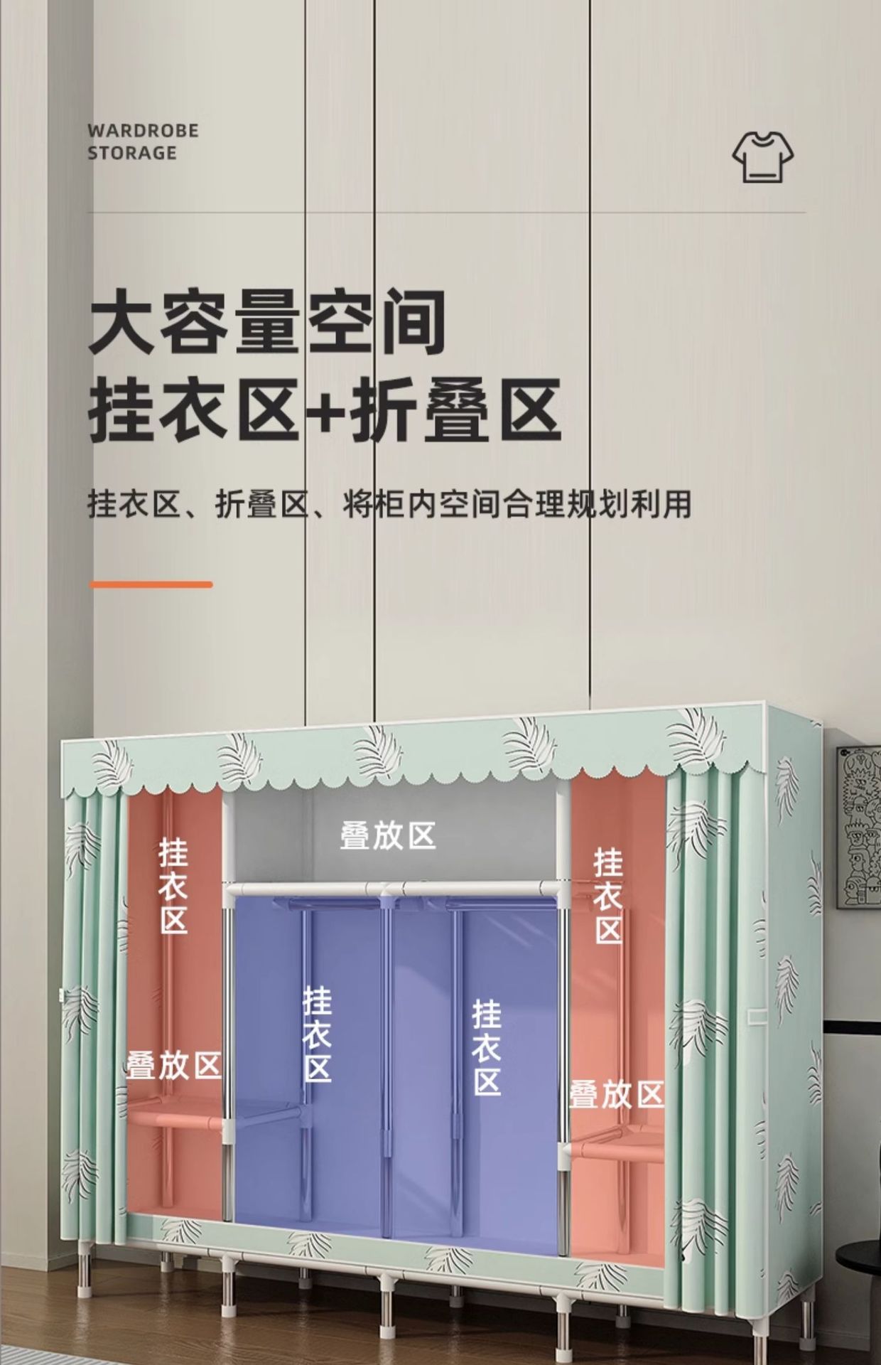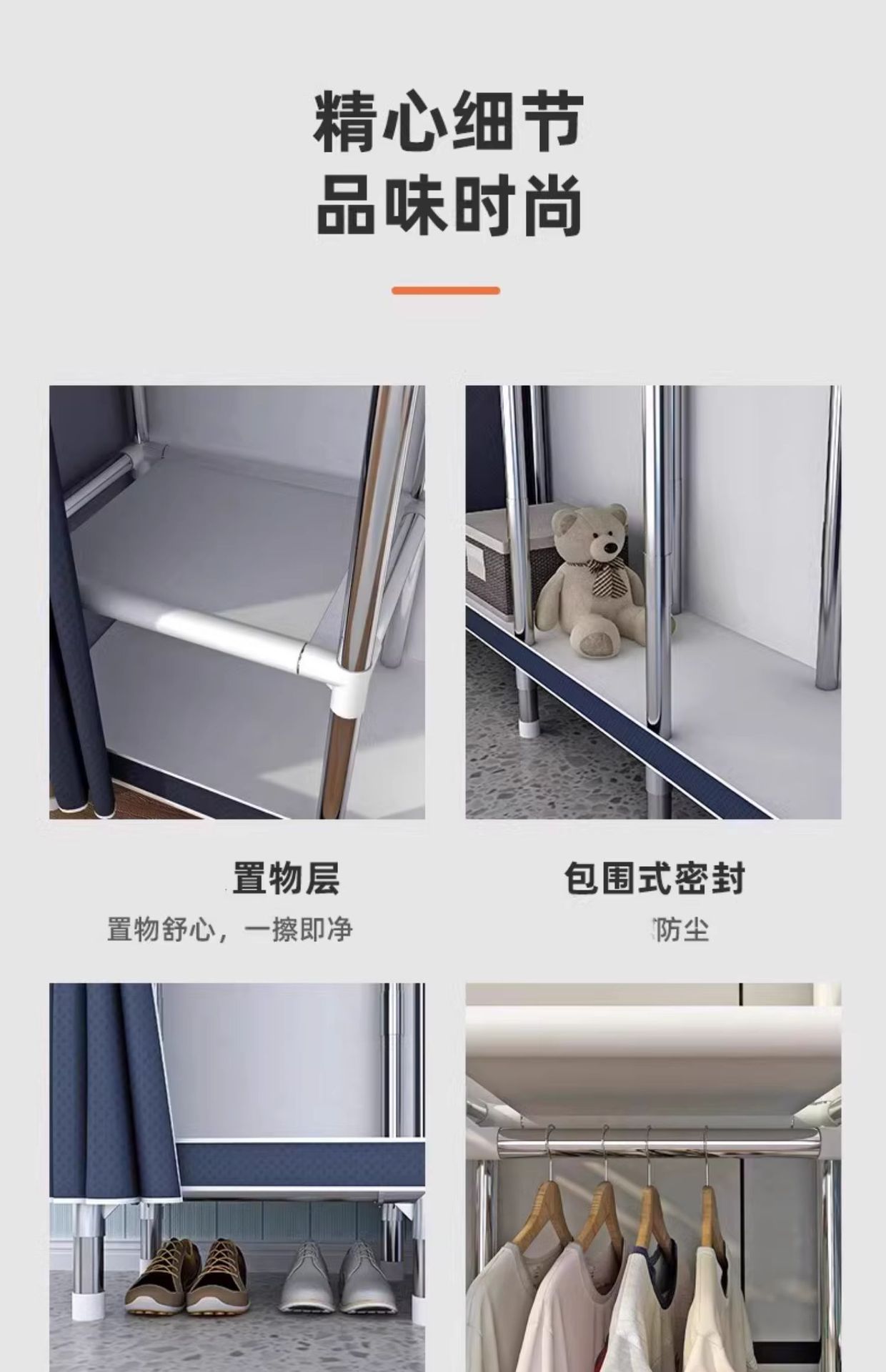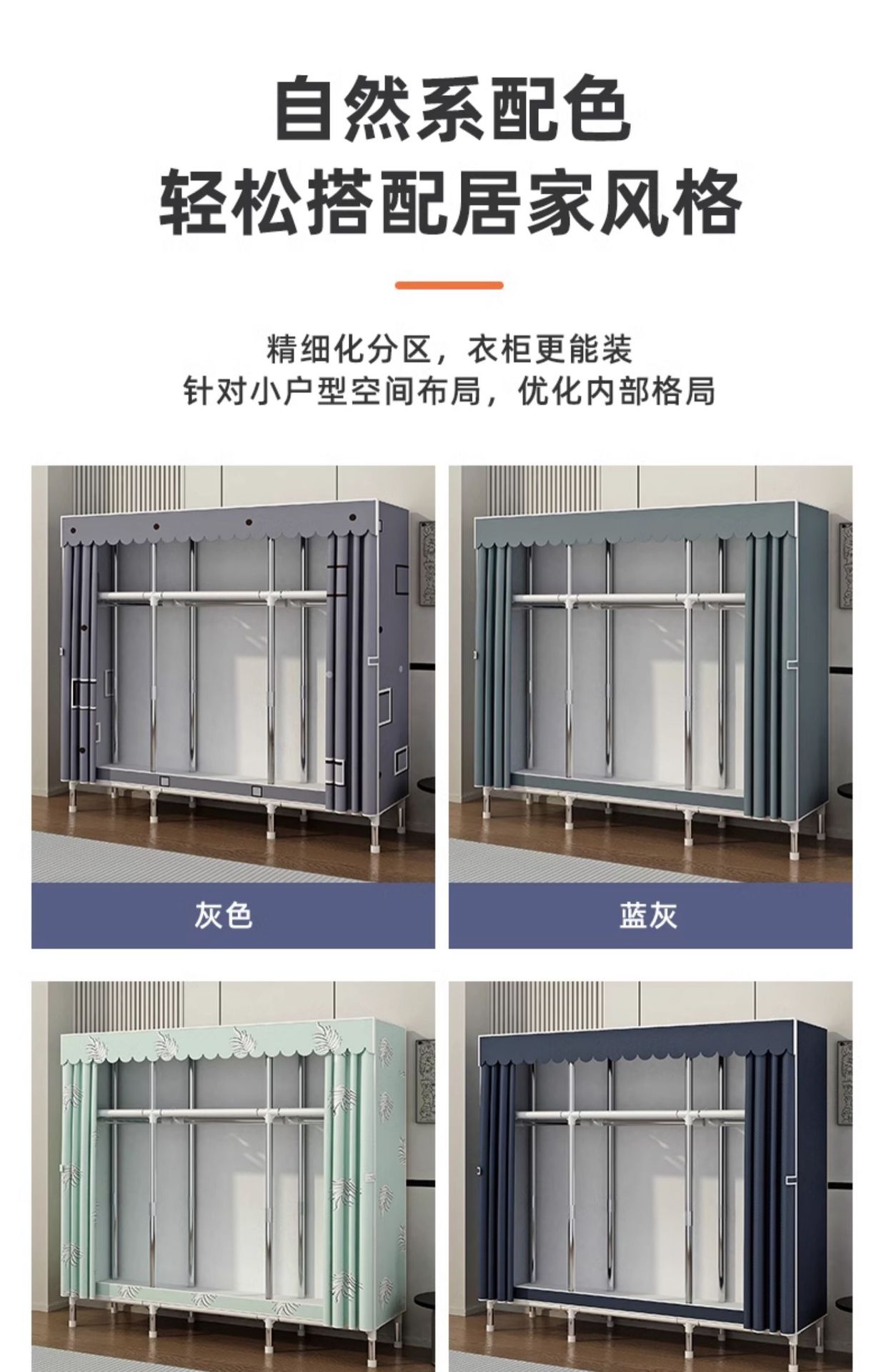 옷장 가정용 침실 조립 천 옷장 풀 스틸 프레임 두꺼운 간단한 천 옷장 걸이 옷장 임대 방스토어 가기