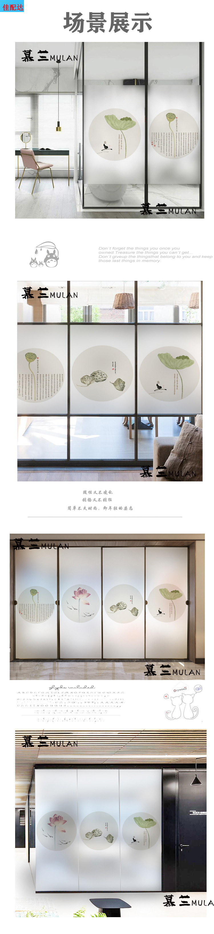 중국 로터스 욕실 창 국가 스타일 서리 스티커 로터스 정전기 유리 도어 욕실 유리 스티커 사운드스토어 가기