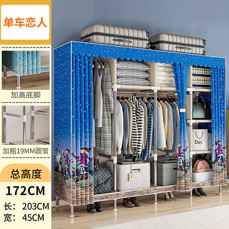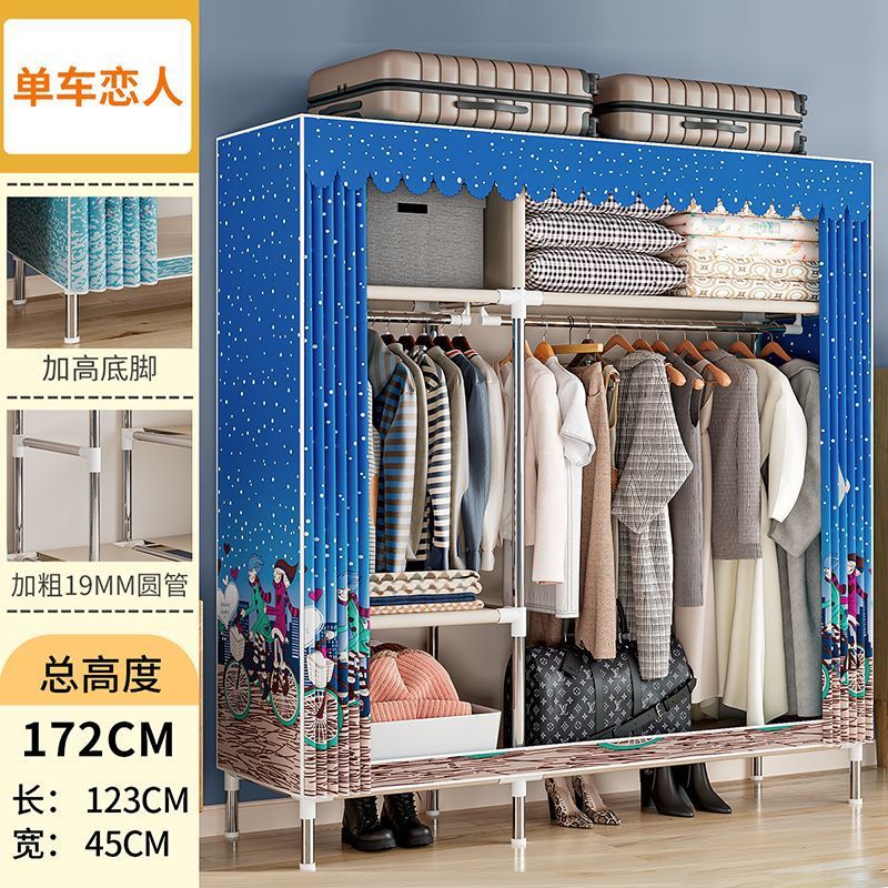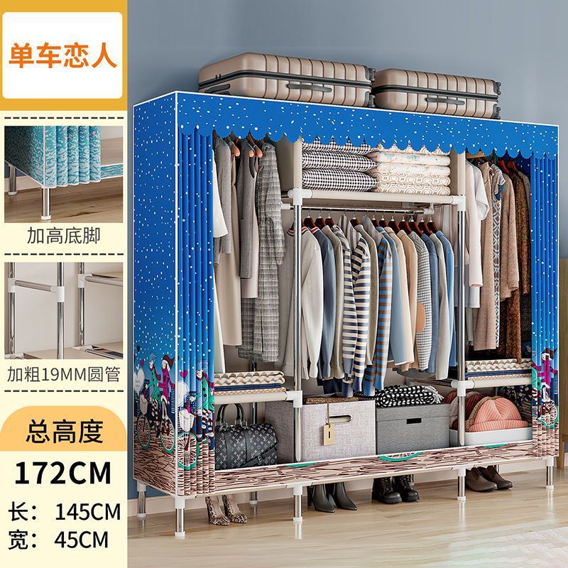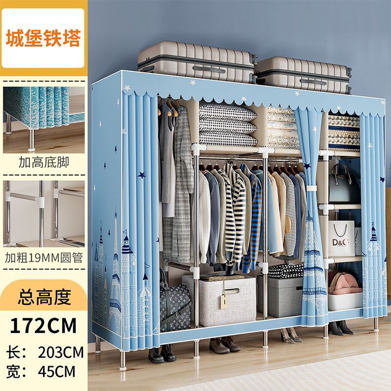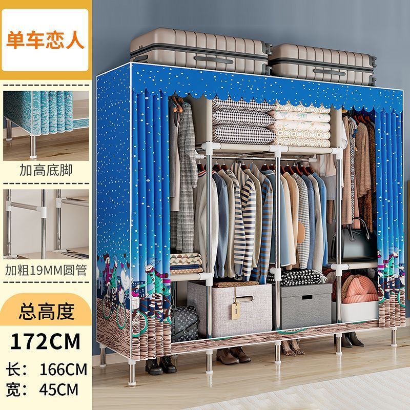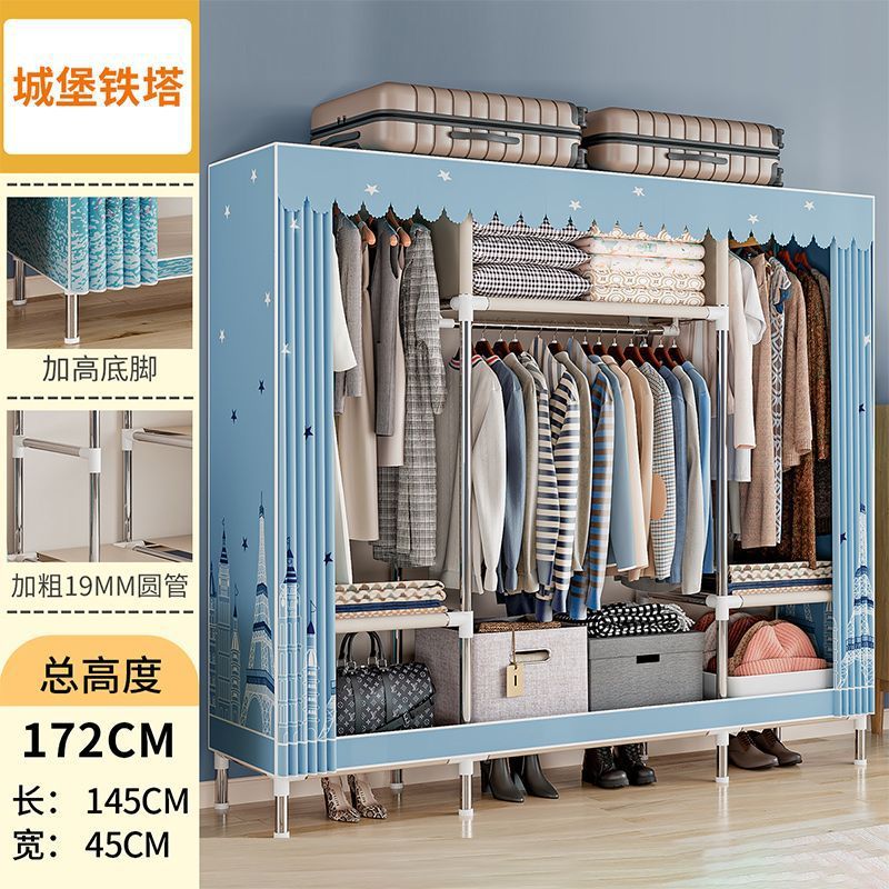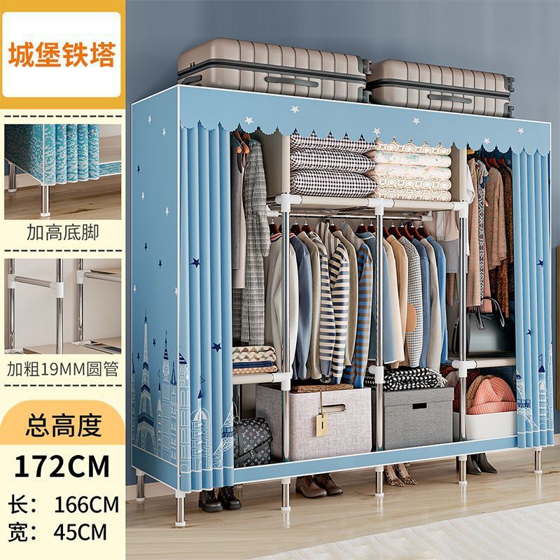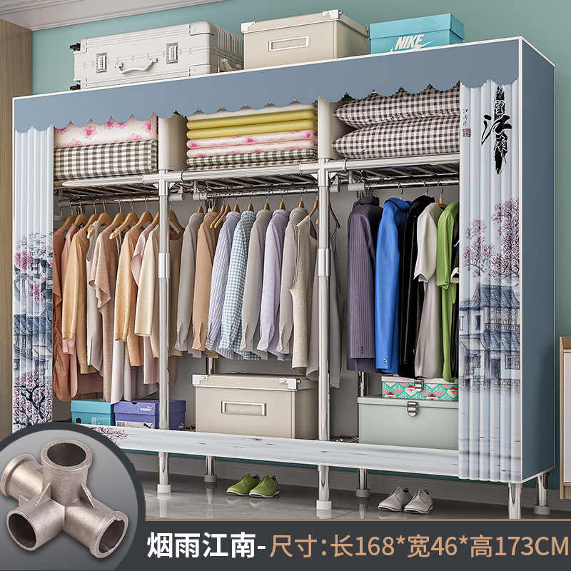 간단한 옷장 경제적 천 옷장 강철 파이프 굵게 보강 보관 캐비닛 임대 방 홈 침실 옷장 강력한스토어 가기