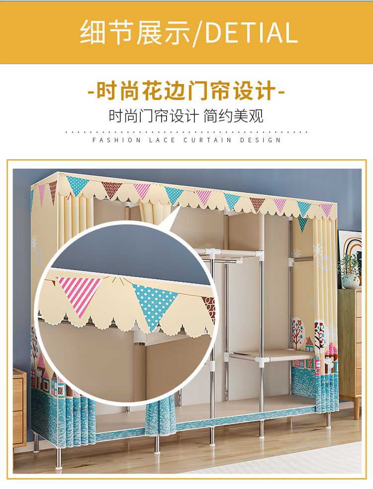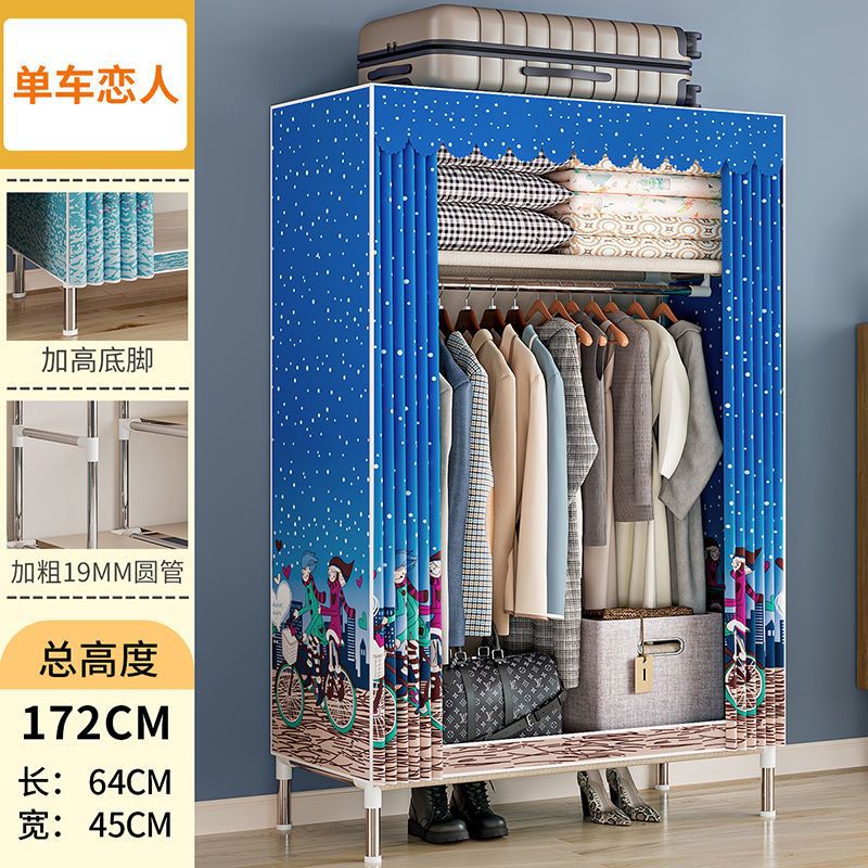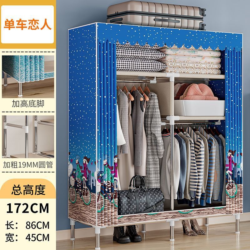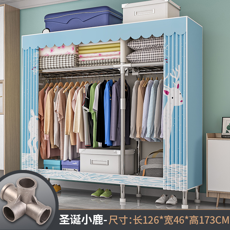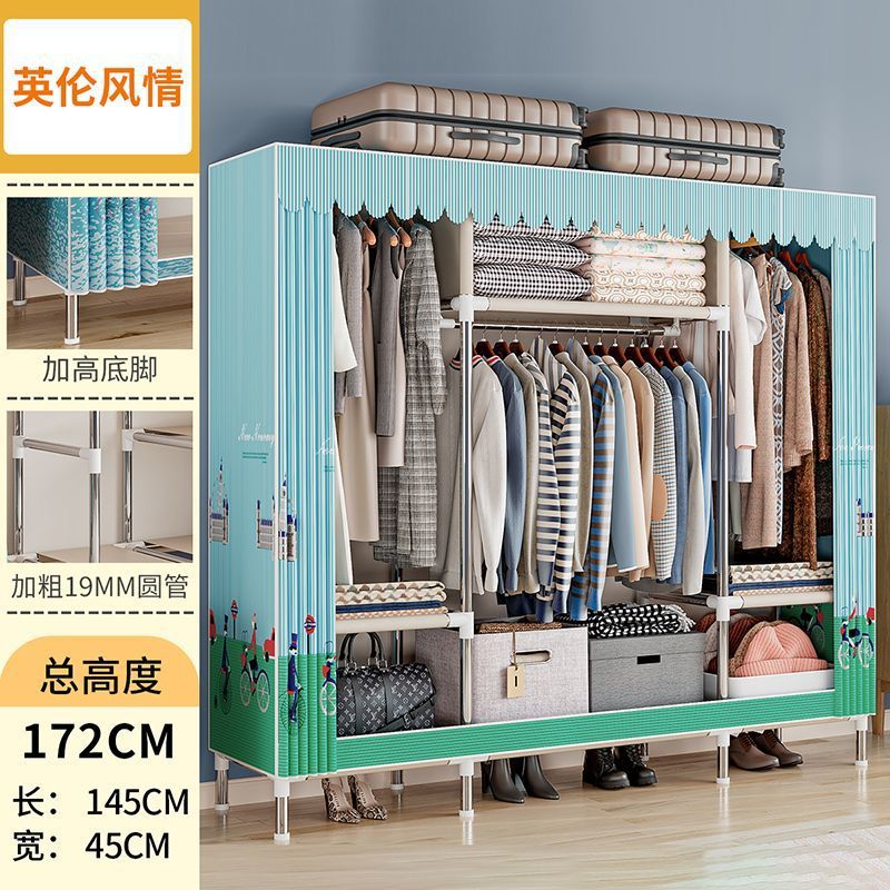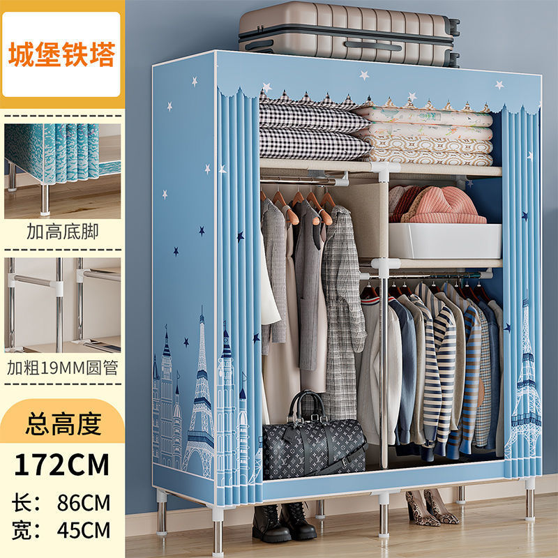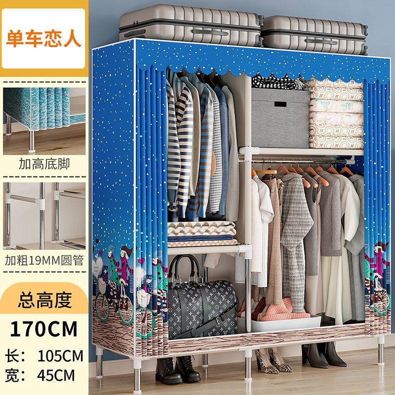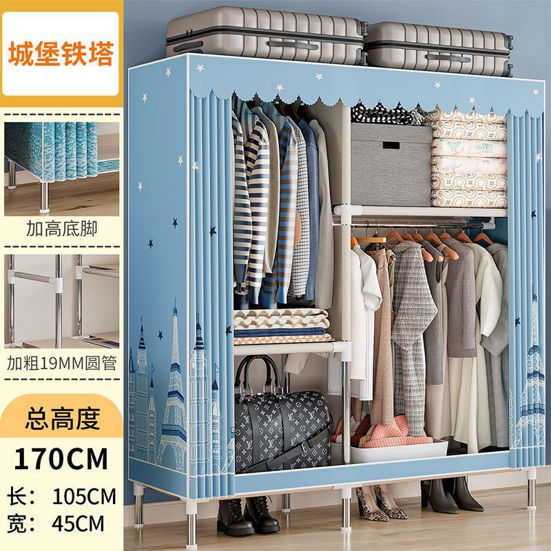 간단한 옷장 경제적 천 옷장 강철 파이프 굵게 보강 보관 캐비닛 임대 방 홈 침실 옷장 강력한스토어 가기