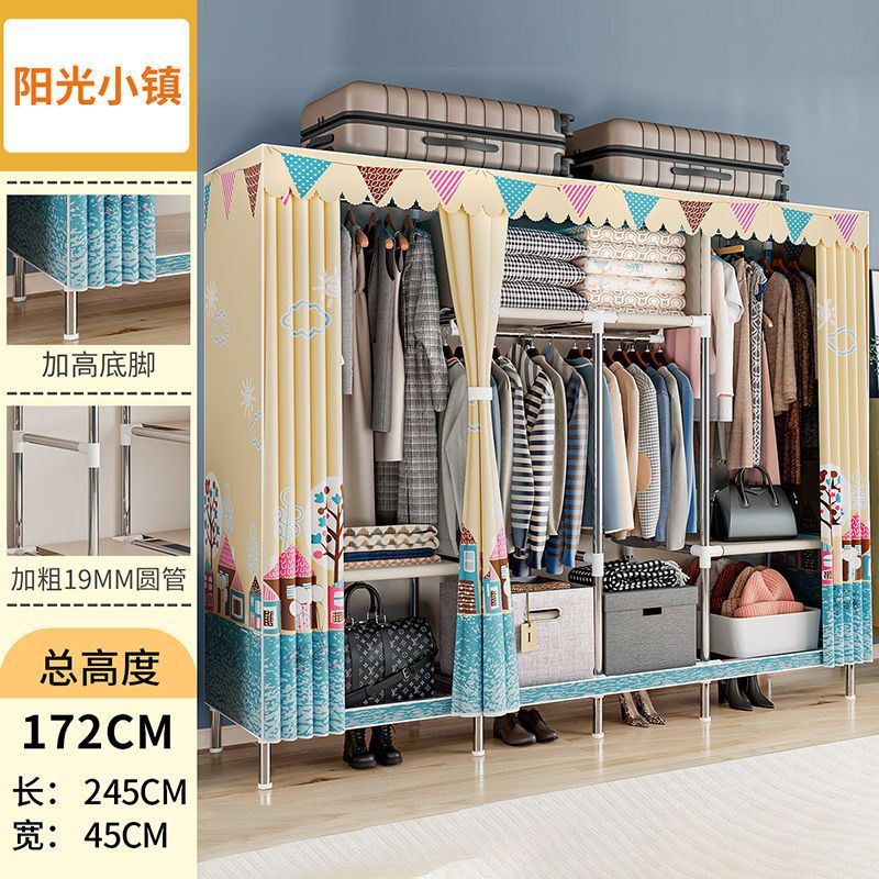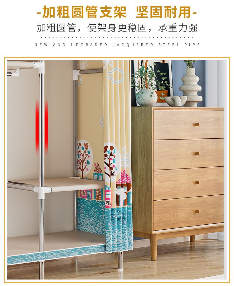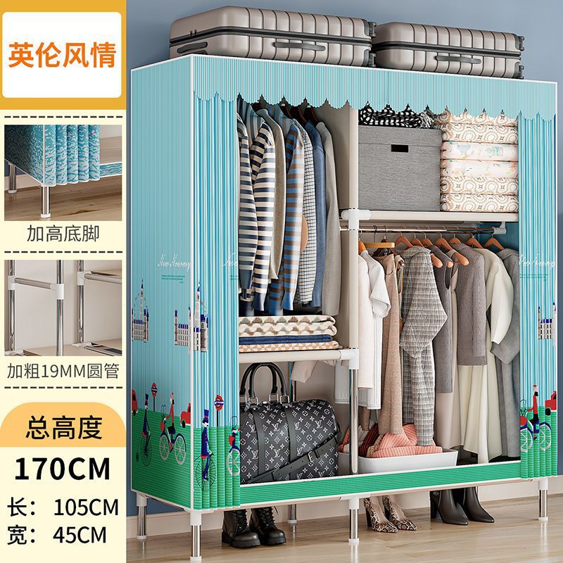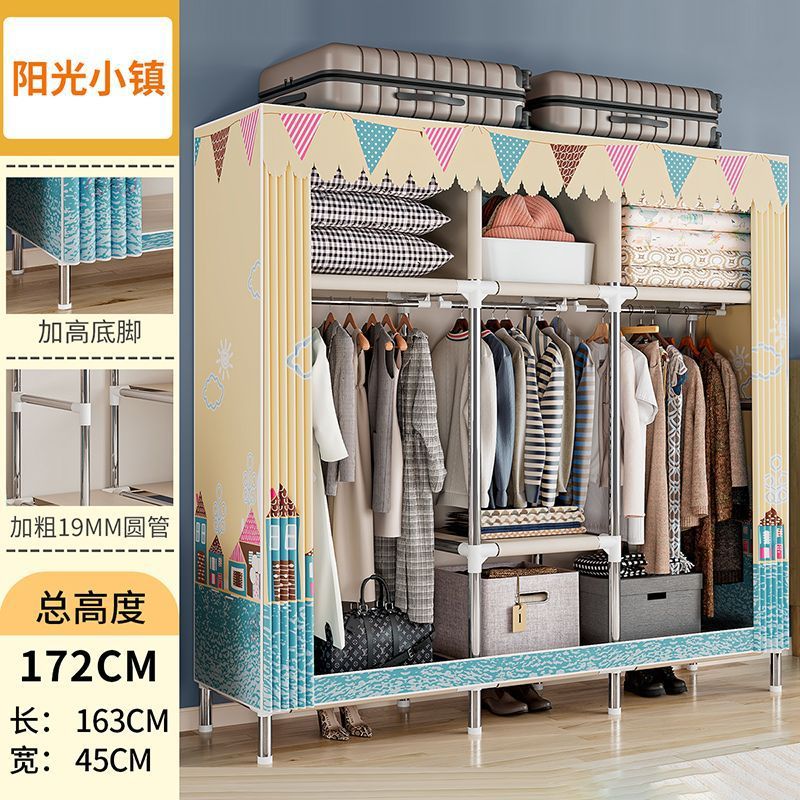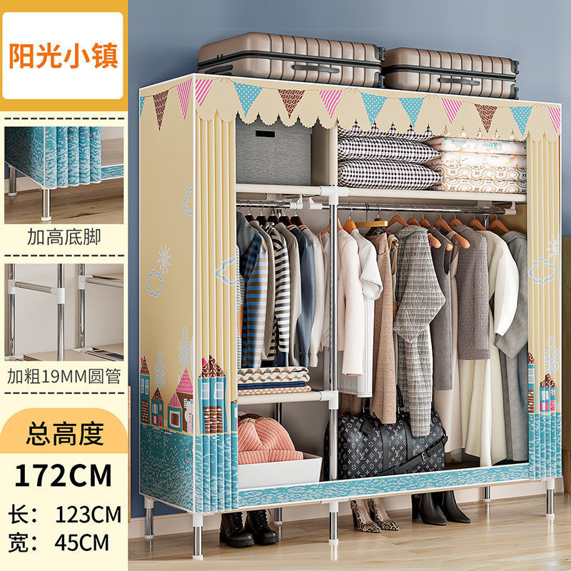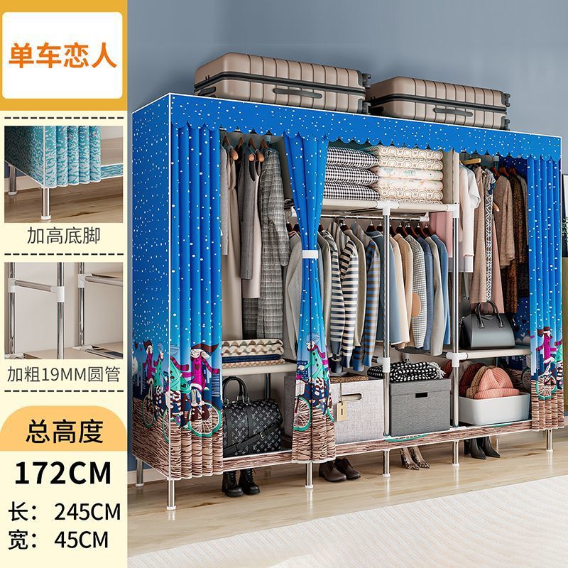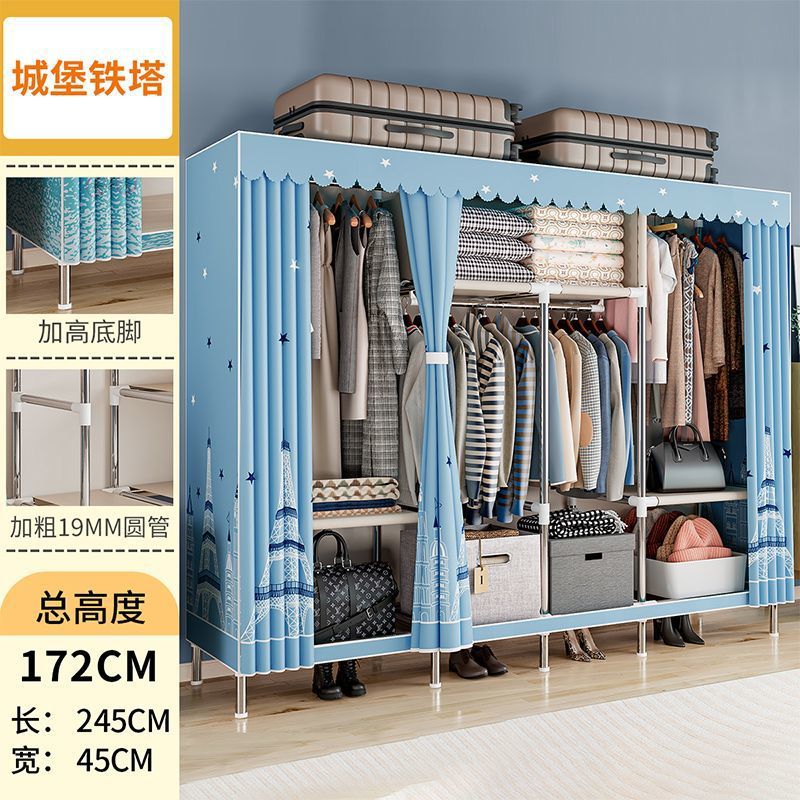 간단한 옷장 경제적 천 옷장 강철 파이프 굵게 보강 보관 캐비닛 임대 방 홈 침실 옷장 강력한스토어 가기