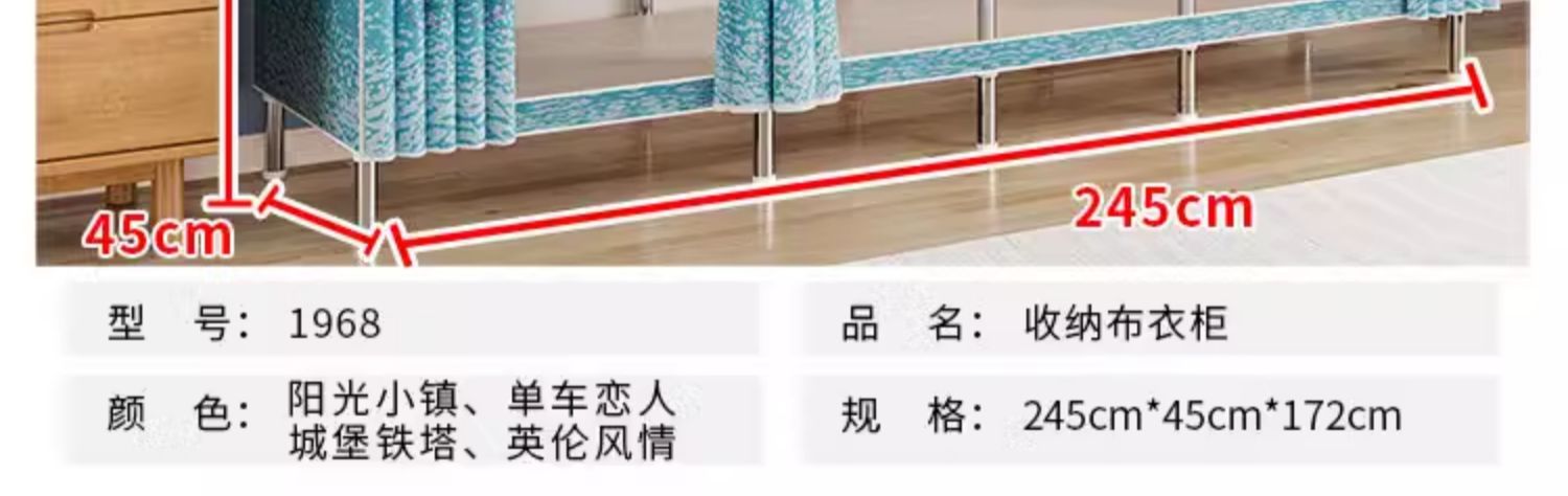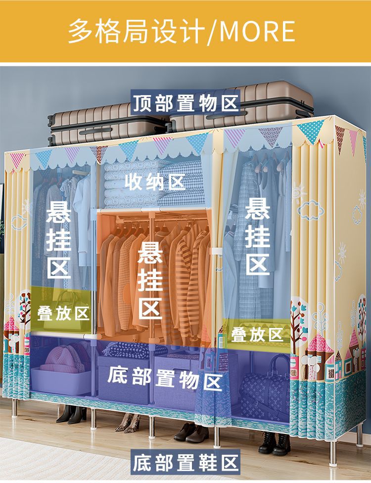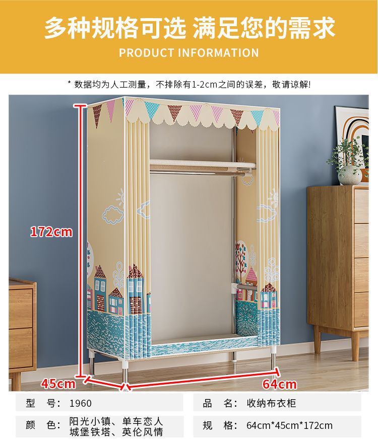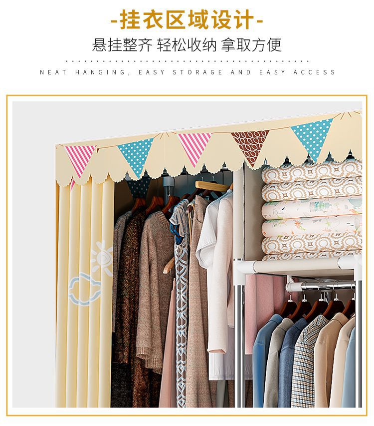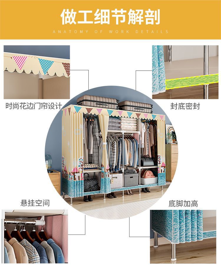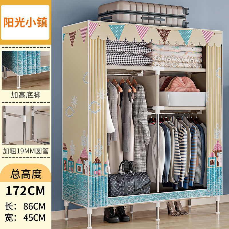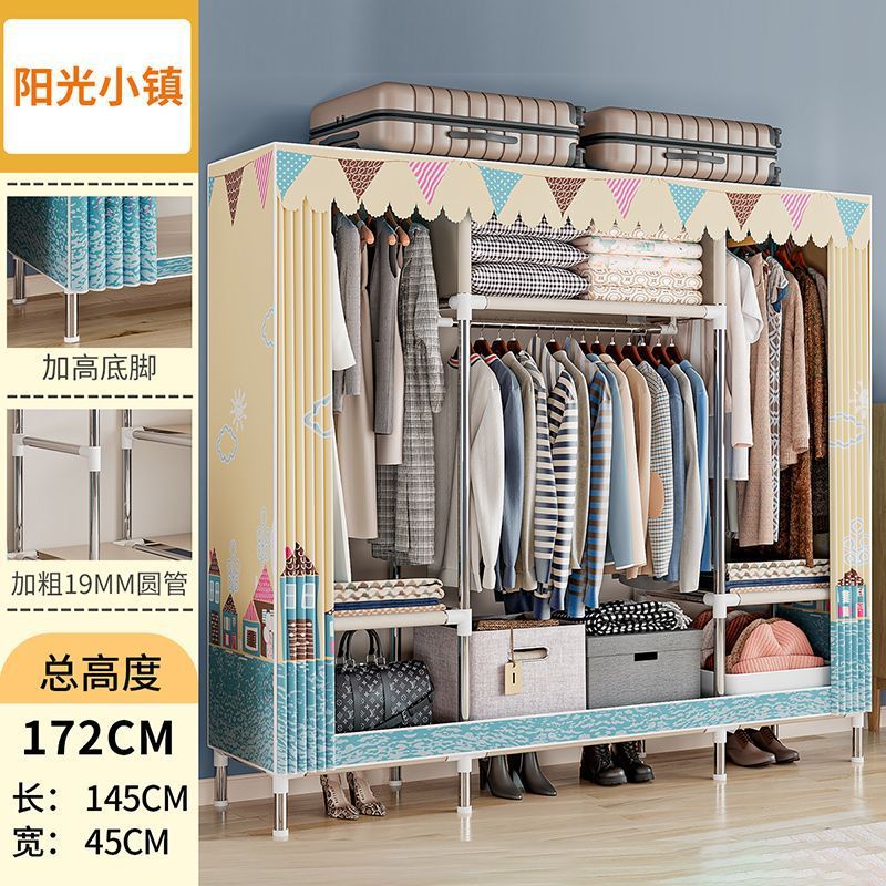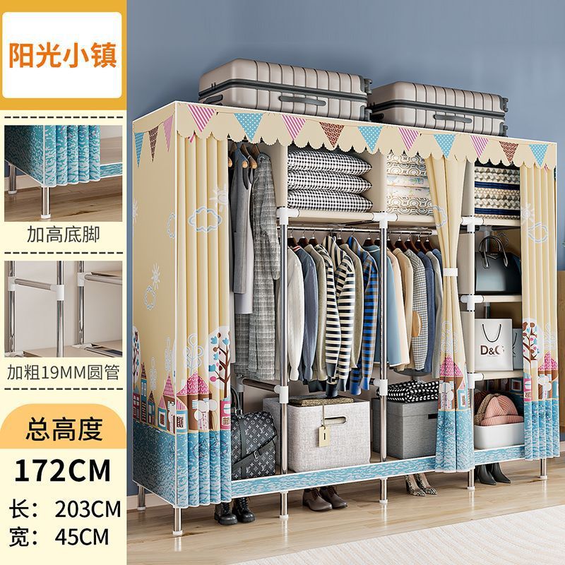 간단한 옷장 경제적 천 옷장 강철 파이프 굵게 보강 보관 캐비닛 임대 방 홈 침실 옷장 강력한스토어 가기