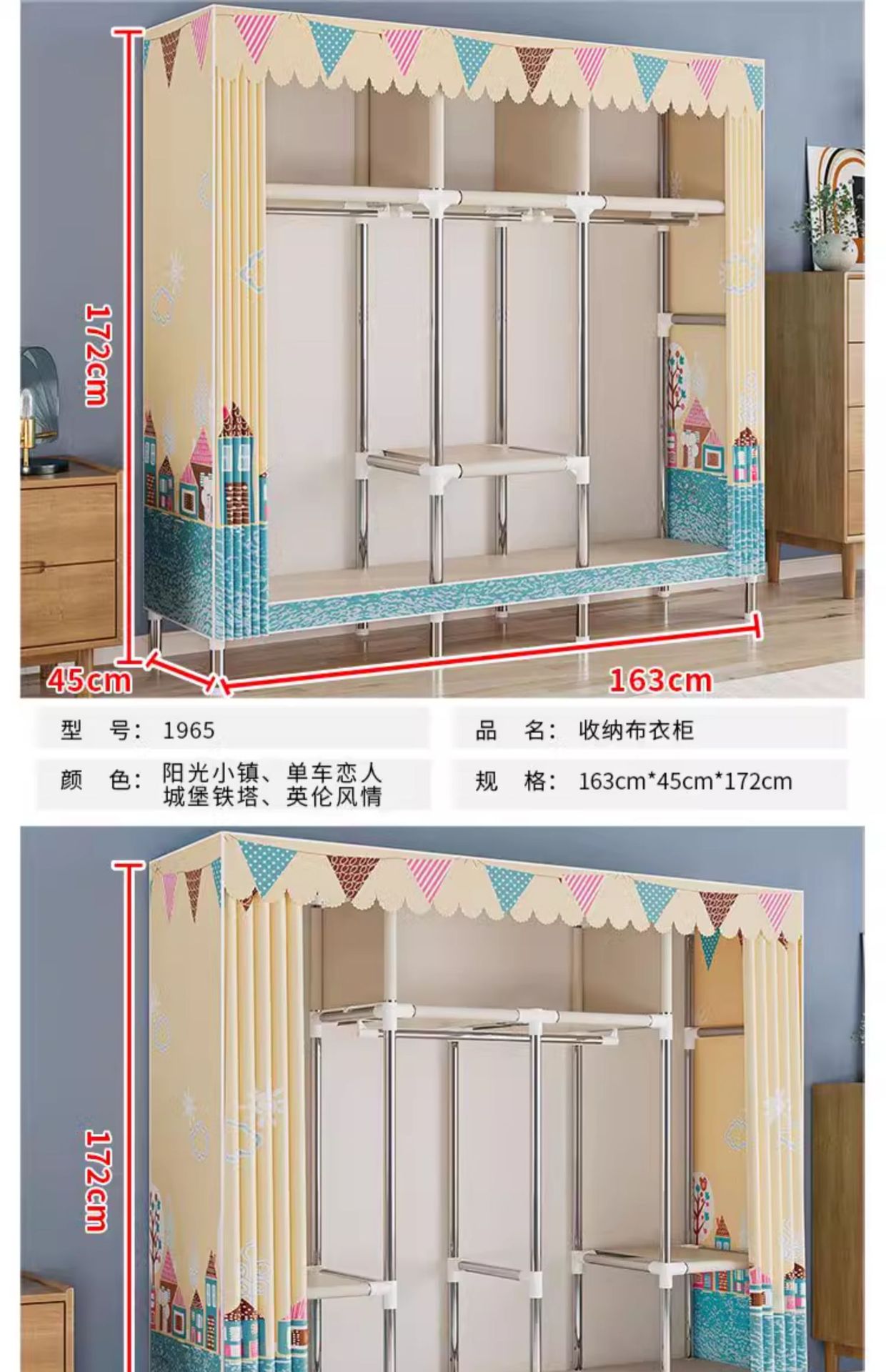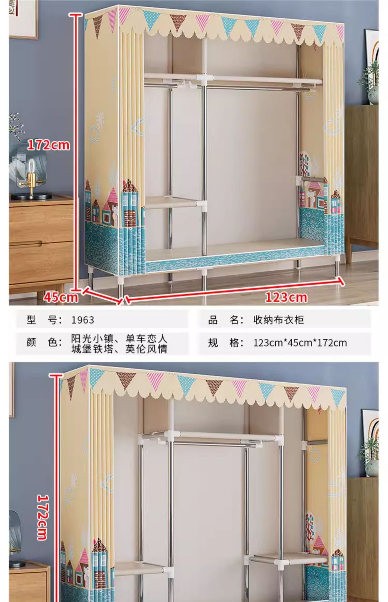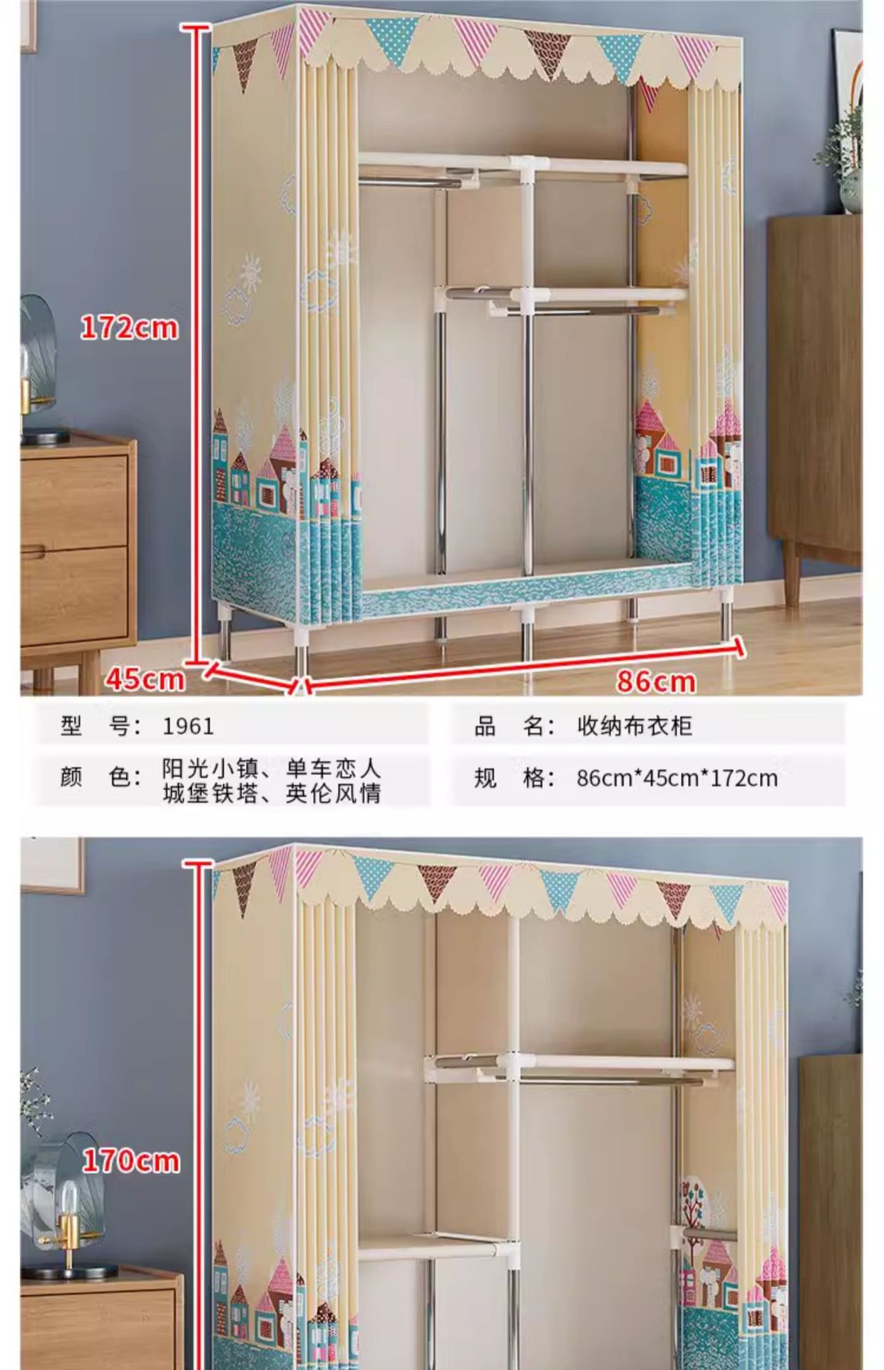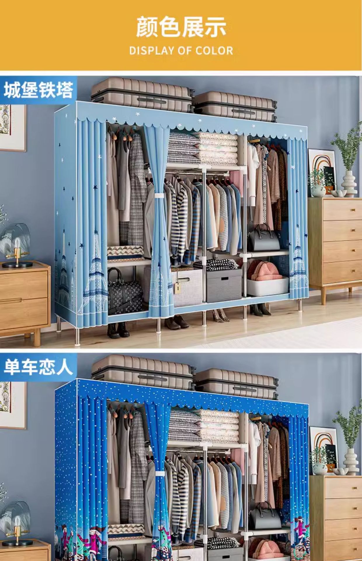 간단한 옷장 경제적 천 옷장 강철 파이프 굵게 보강 보관 캐비닛 임대 방 홈 침실 옷장 강력한스토어 가기