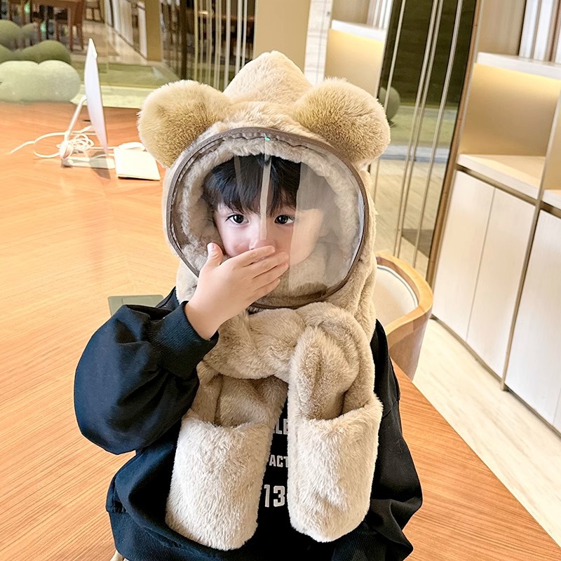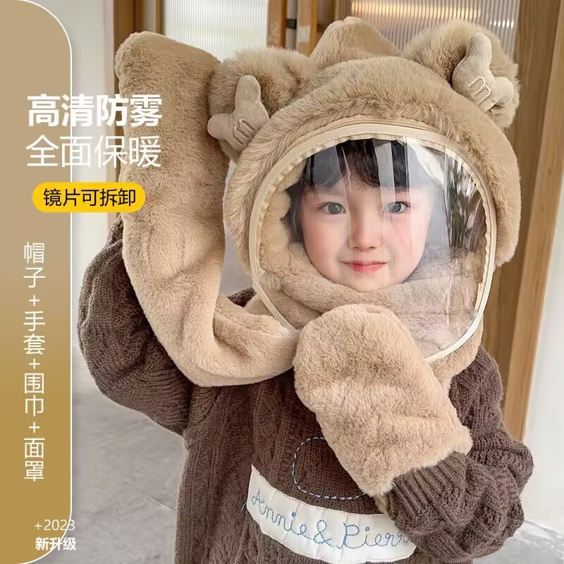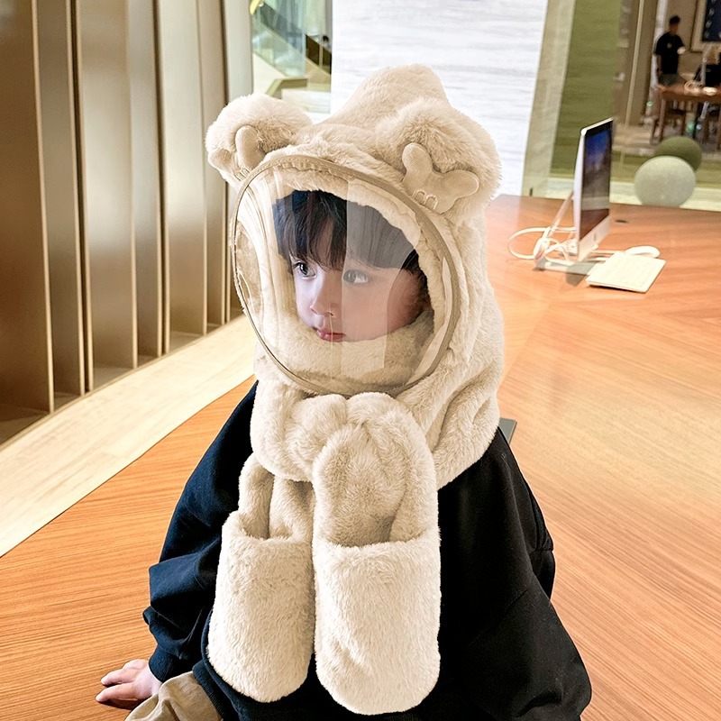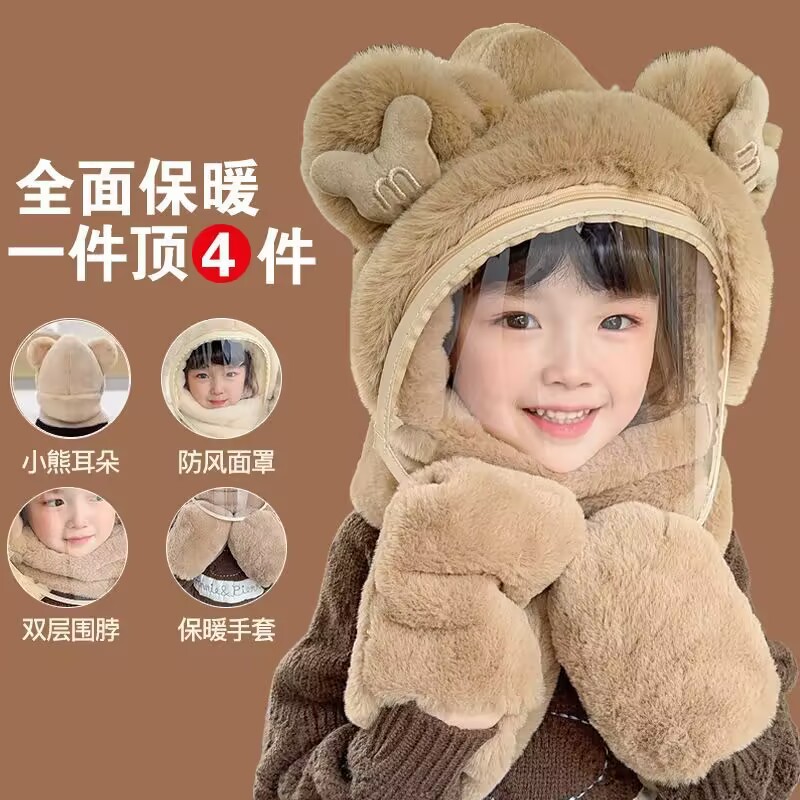 아기 모자 어린이 스카프 장갑 올인원 모자 방풍 겨울 승마 따뜻한 울 모자 소년 소녀 보호 마스크