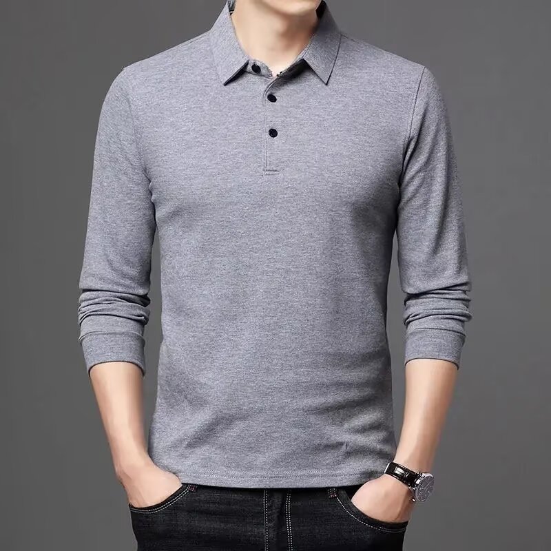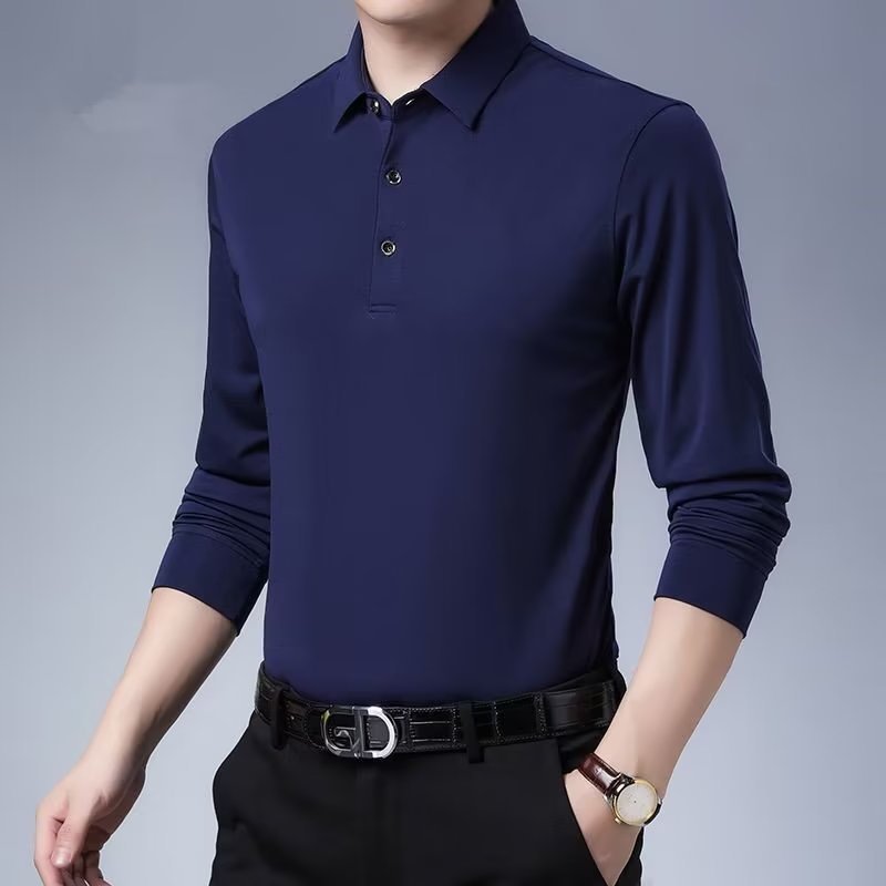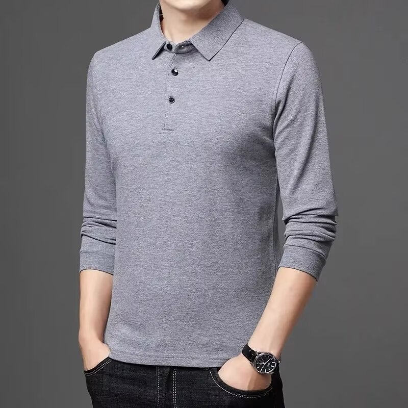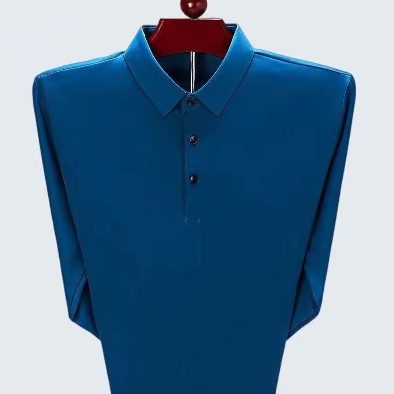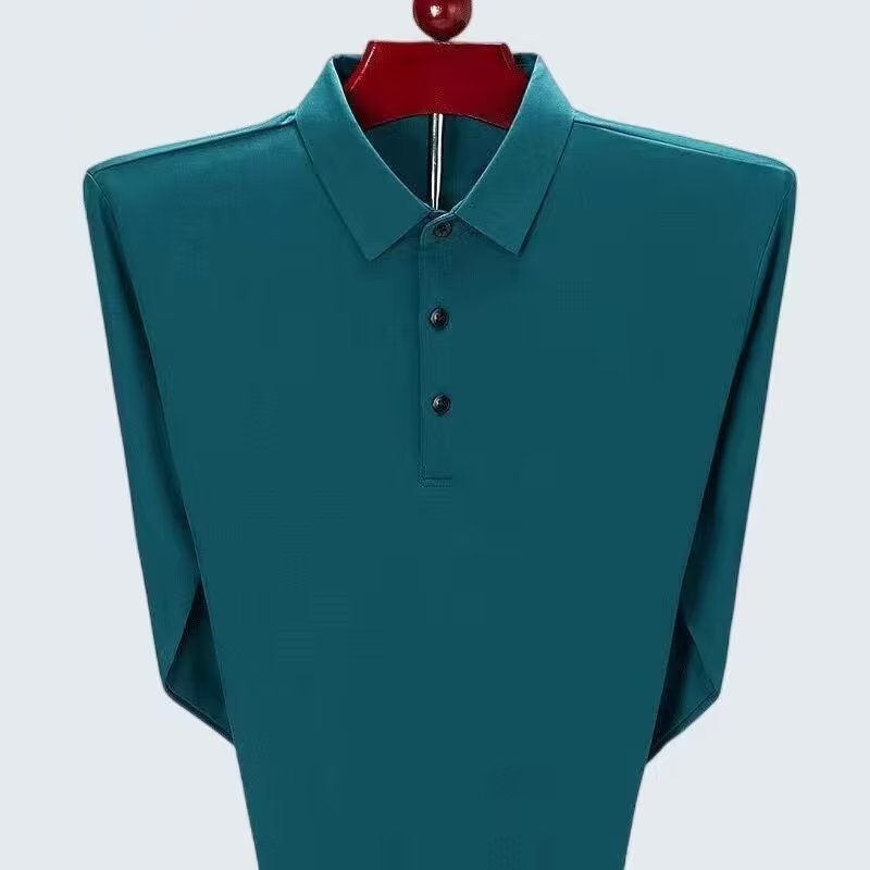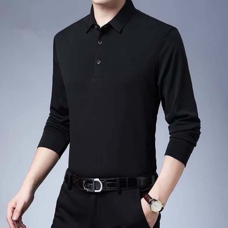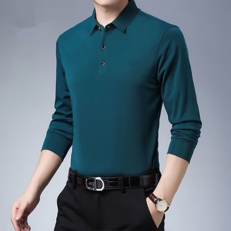 단색 긴 POLO 셔츠 봄과 가을 옷깃 남성 작업 비즈니스 캐주얼 녹색 중년 재고 빈 버전의 재킷 도매스토어 가기