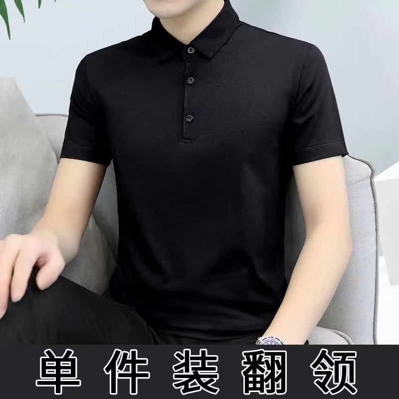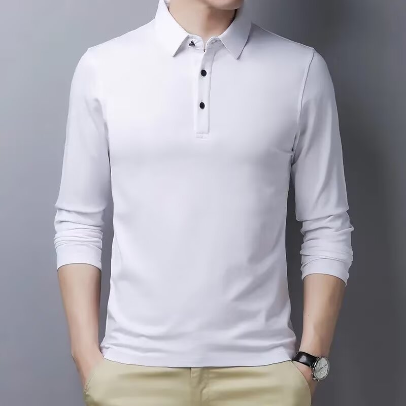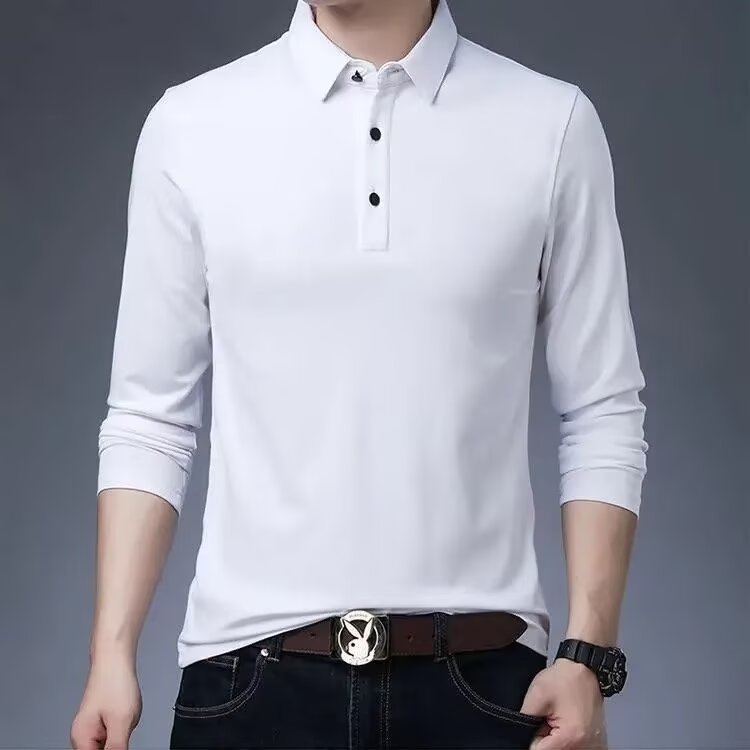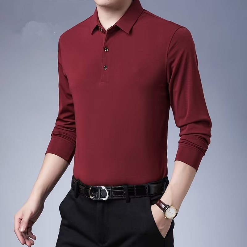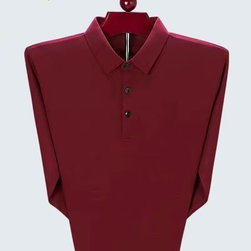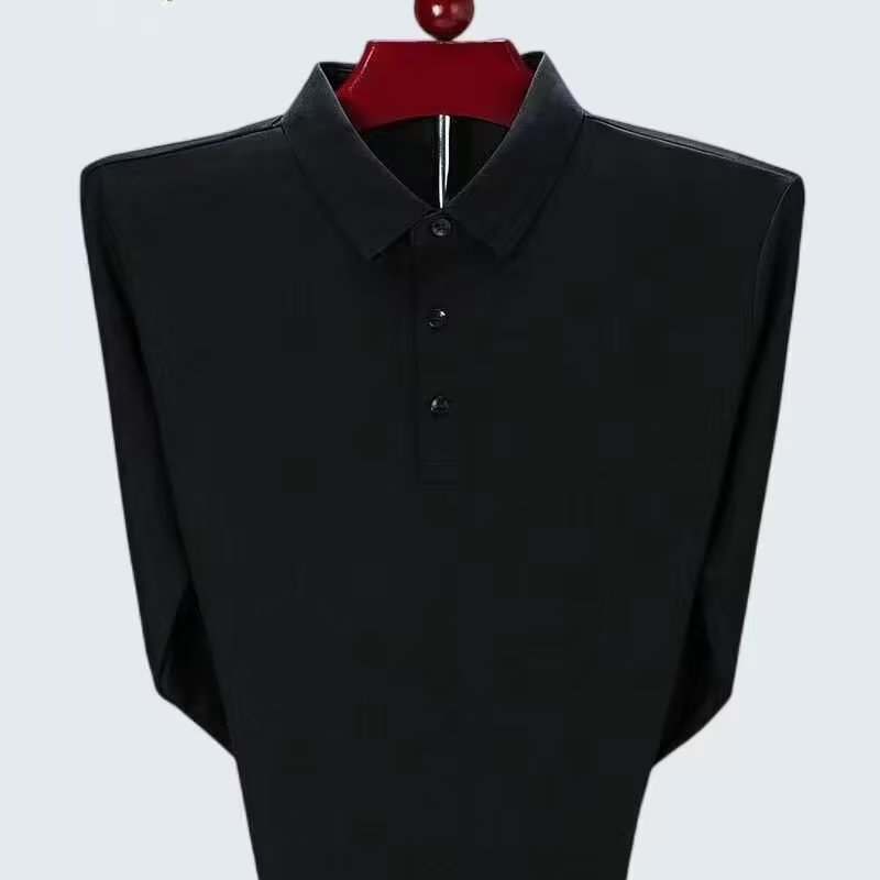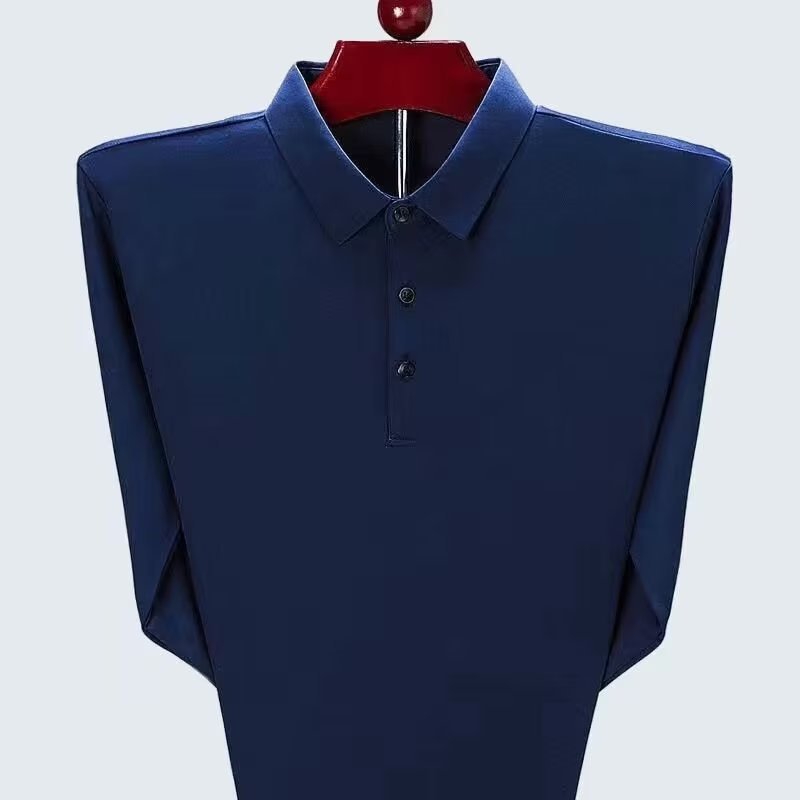 단색 긴 POLO 셔츠 봄과 가을 옷깃 남성 작업 비즈니스 캐주얼 녹색 중년 재고 빈 버전의 재킷 도매스토어 가기