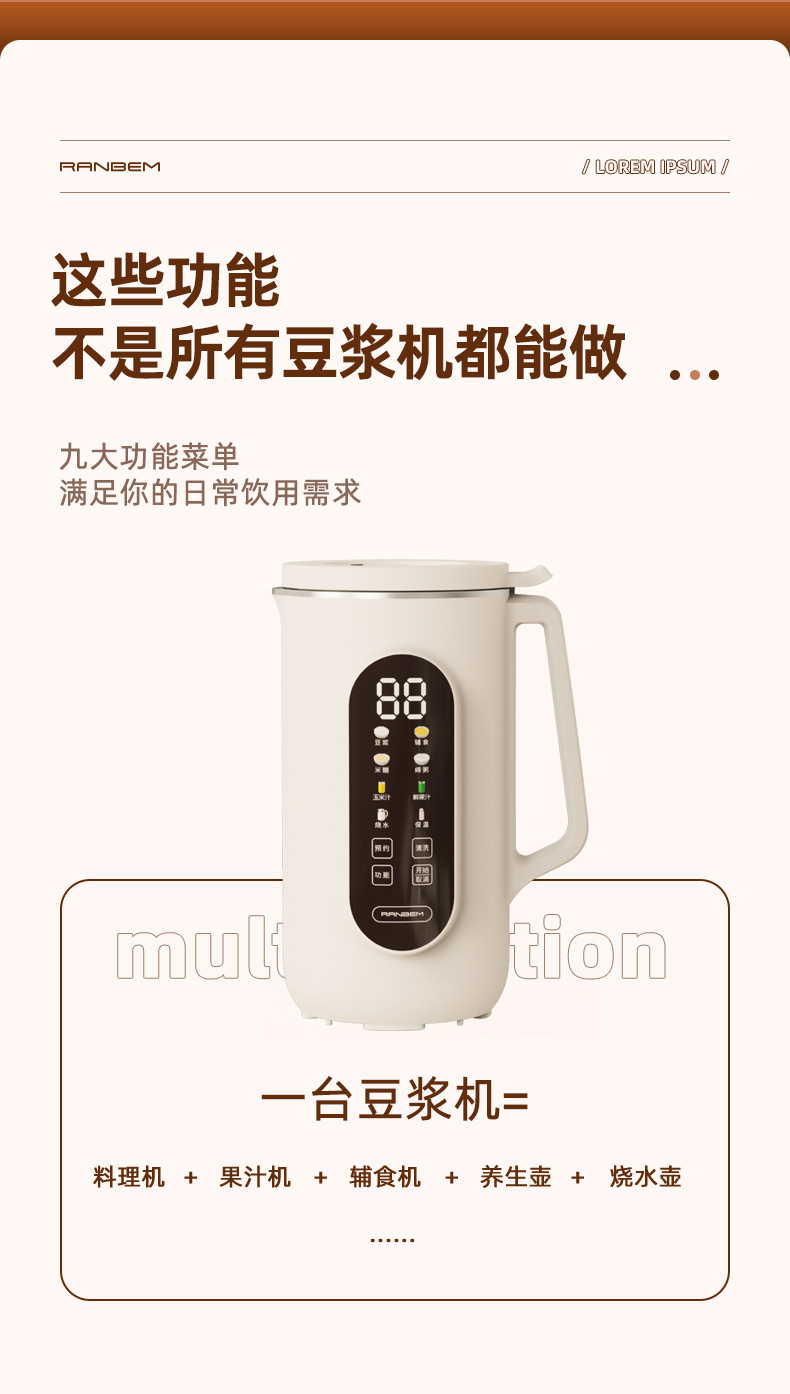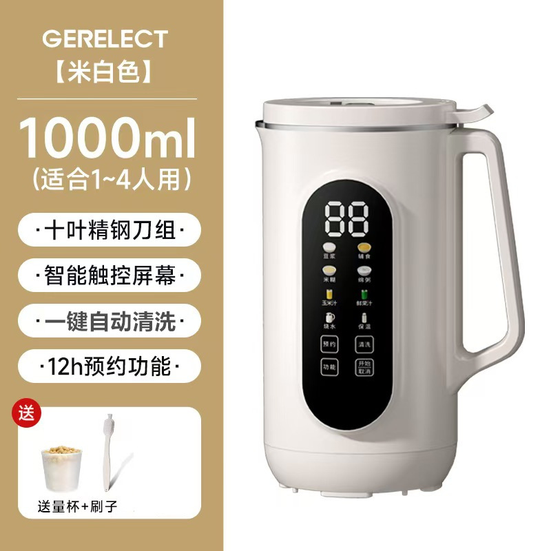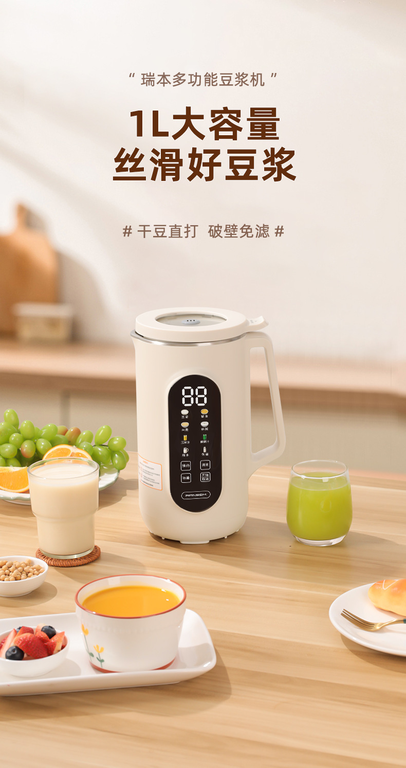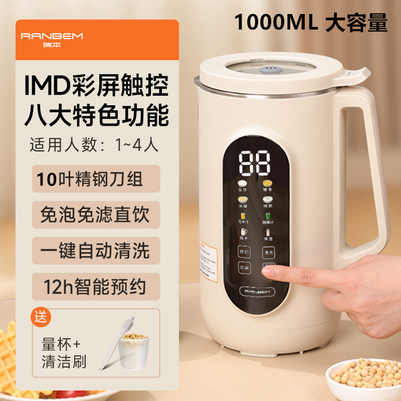 독일 RANBEM 두유 기계 가정용 1L 대용량 필터 프리 주스 기계 완전 자동 식품 보충제 파괴 기계