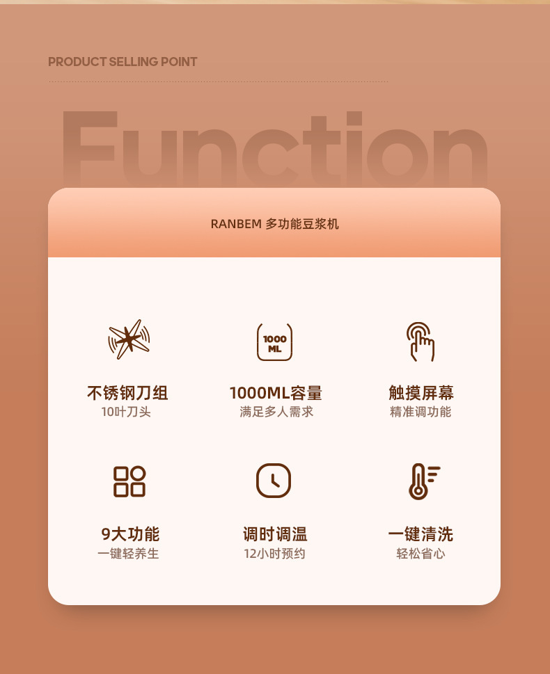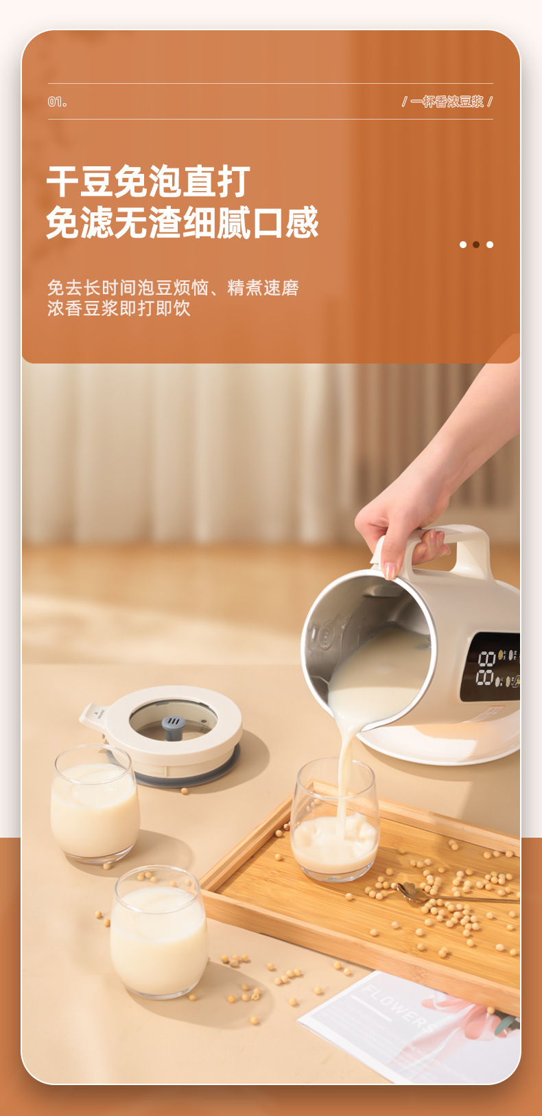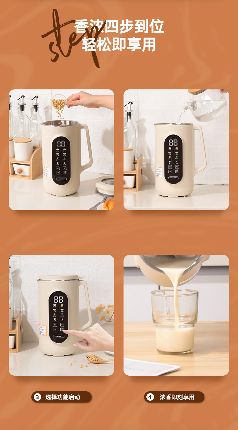 독일 RANBEM 두유 기계 가정용 1L 대용량 필터 프리 주스 기계 완전 자동 식품 보충제 파괴 기계