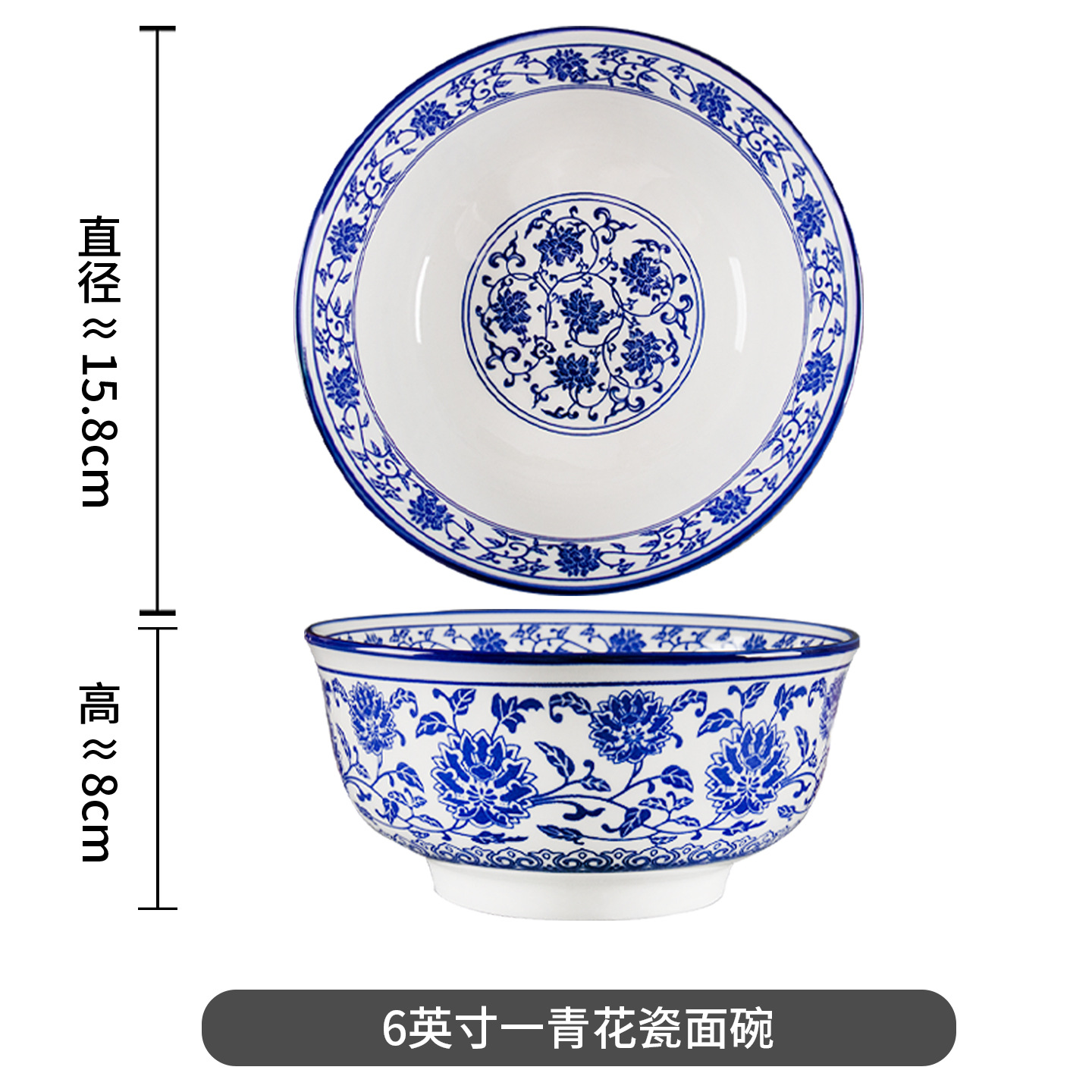 파란색과 흰색 도자기 7 인치 큰 그릇 수프 그릇 국수 그릇 기름 국수 그릇 쇠고기 그릇 조림 국수 그릇 가정용 세라믹 도매