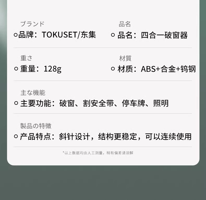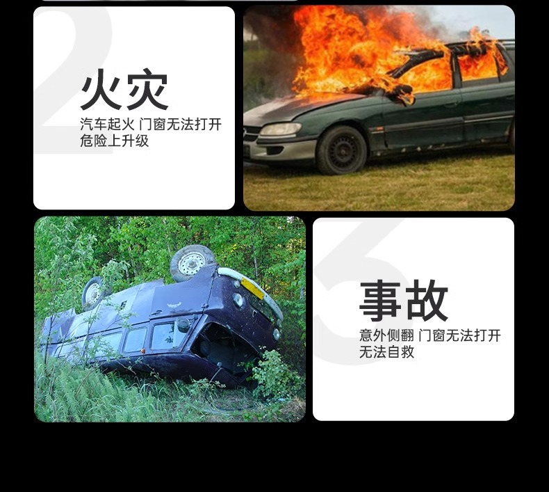 • 다목적: 1초만에 쉽게 창문 깨기 + 안전벨트 절단기 + 정지 신호 + 손전등/폭발