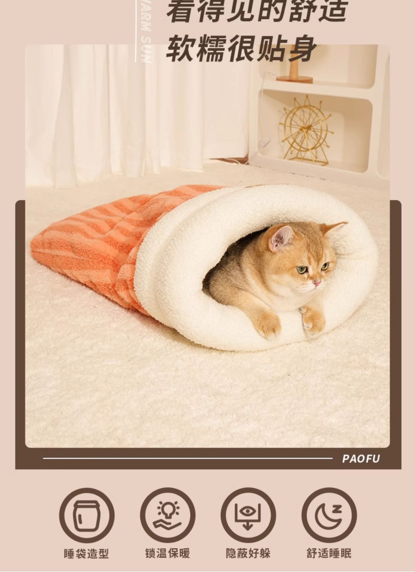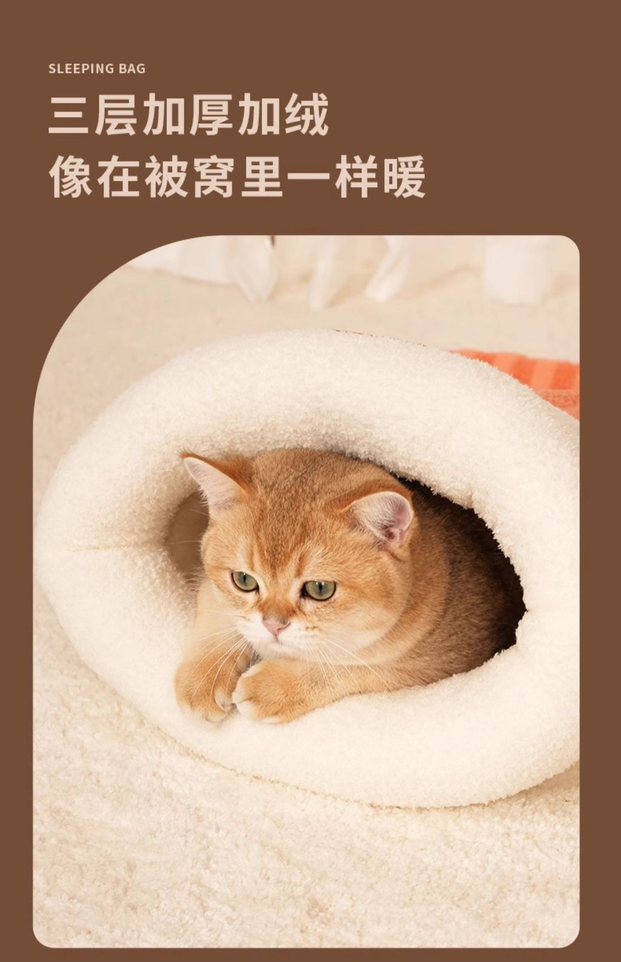고양이 둥지 겨울 따뜻한 고양이 잠자는 가방 겨울 드릴 구멍 반 닫힌 침대 사계절 유니버설 고양이 잠자는 매트스토어 가기