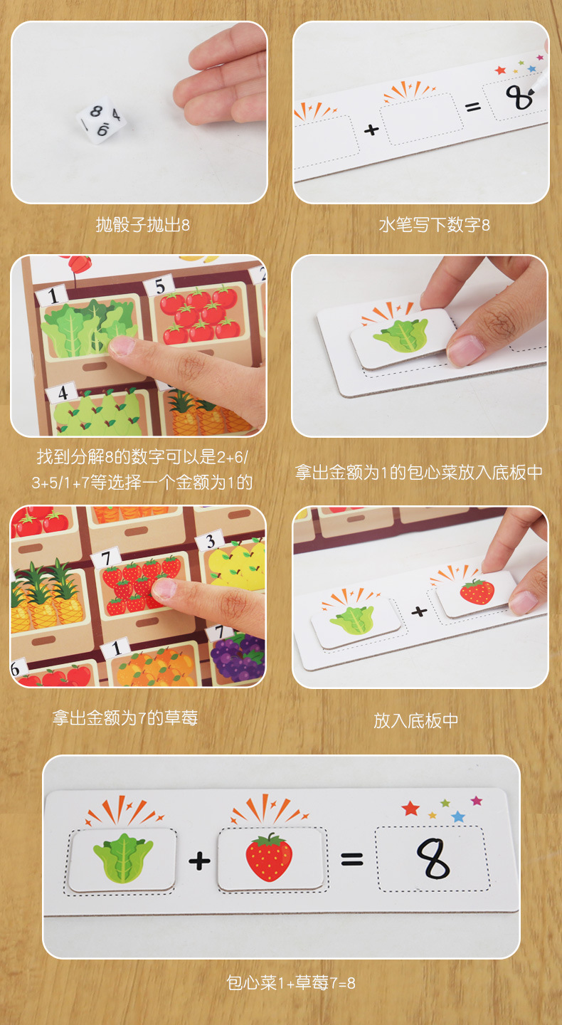 아마존 국경 간 어린이 나무 조기 교육 만화 교수형 사진 3-6 세 소년 소녀를위한 과일과 야채 교육 장난감스토어 가기