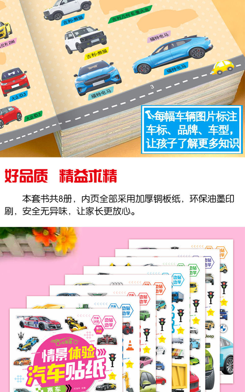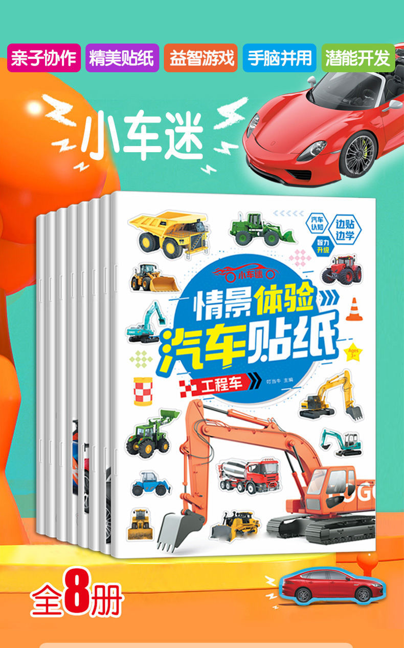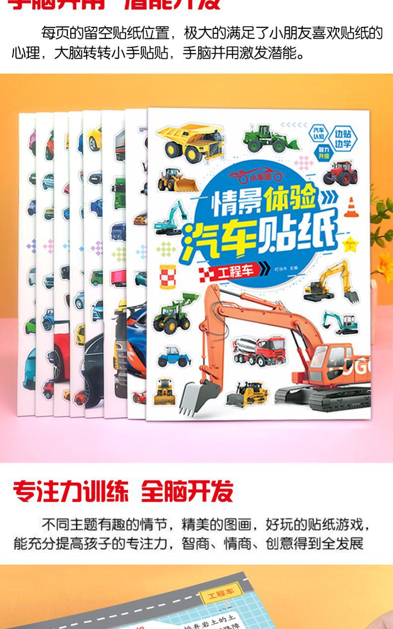 장면 경험 자동차 스티커 8 책 어린이 소년 공학 차량 장난감 생일 선물 멘토