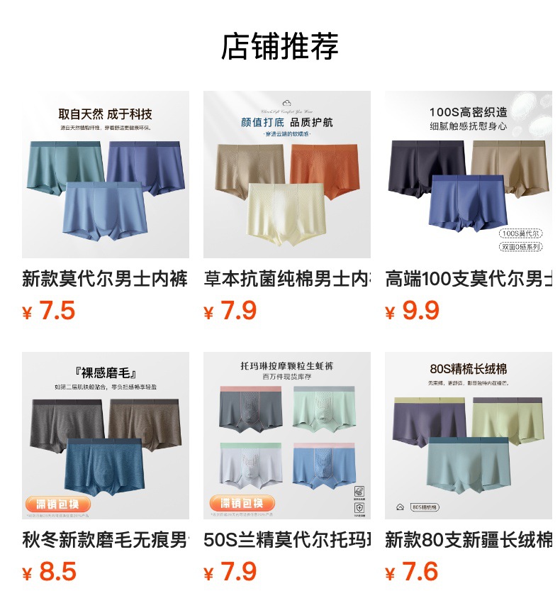 100S 모달 남성 속옷, 고급 양면 배색 사각팬티, 편안하고 통기성 좋은 7A 항균 사각팬티스토어 가기