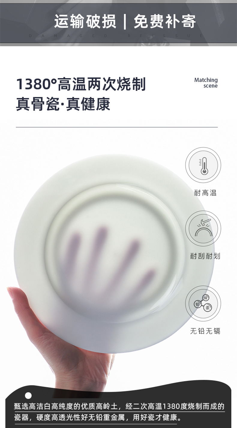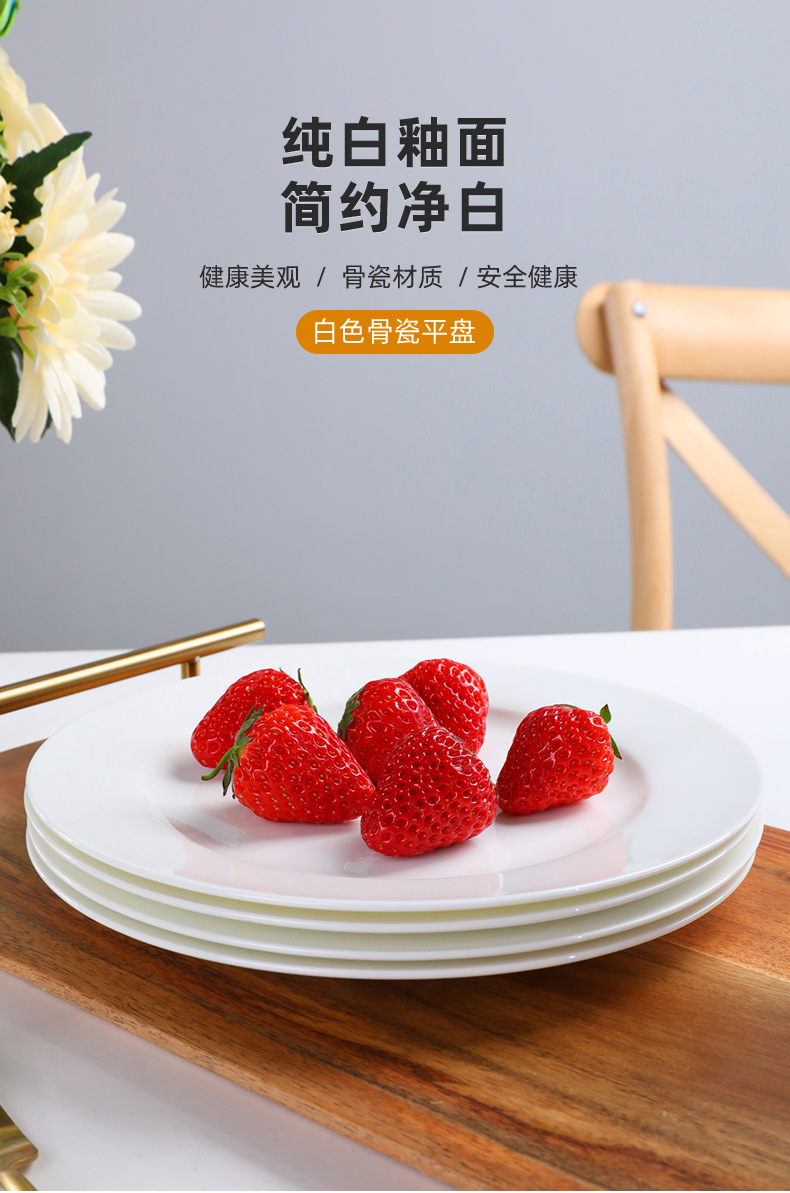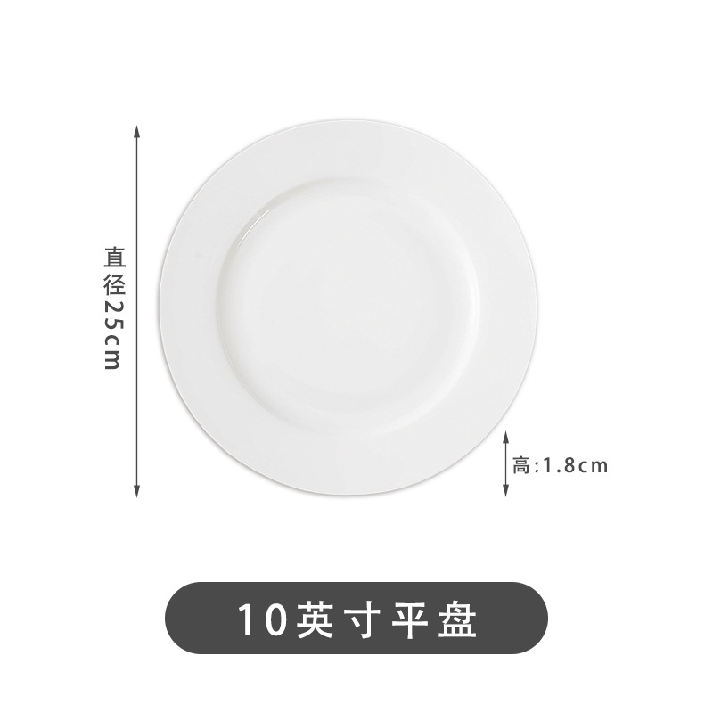 뼈 중국 야채 플레이트 순수한 흰색 라운드 창조적 인 플레이트 가정용 세라믹 대형 플랫 플레이트 세라믹 스테이크 플레이트 웨스턴 플레이트