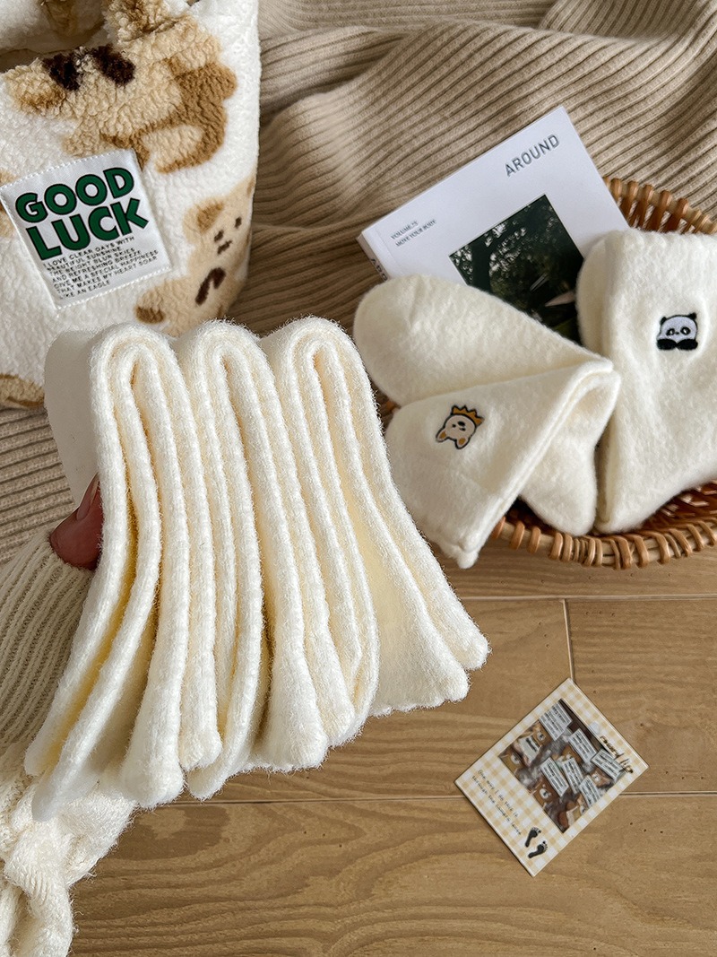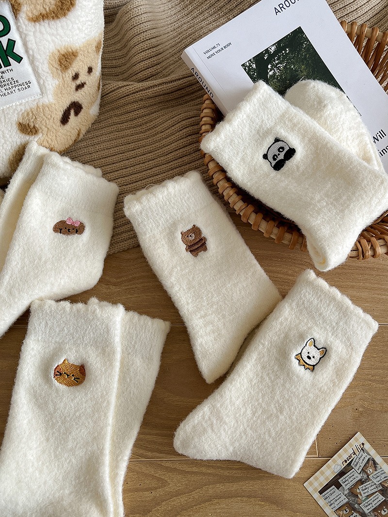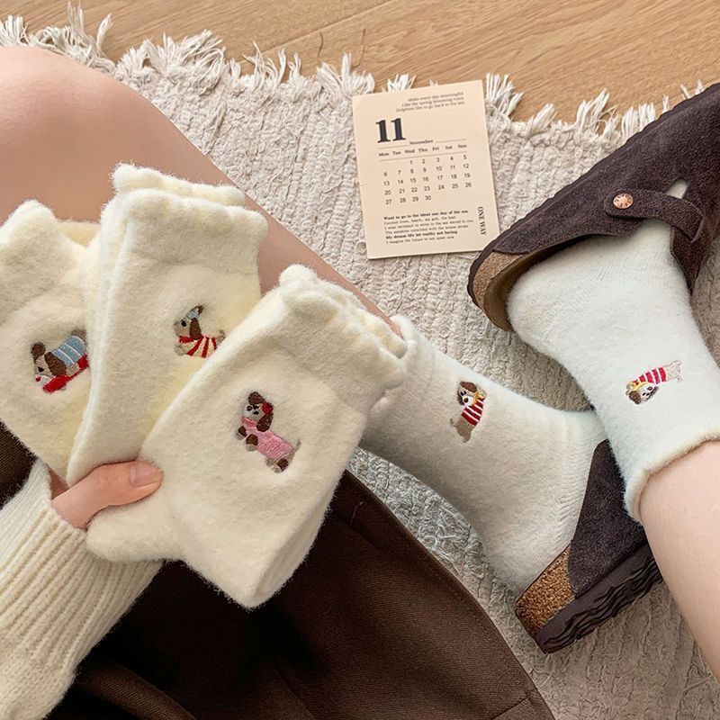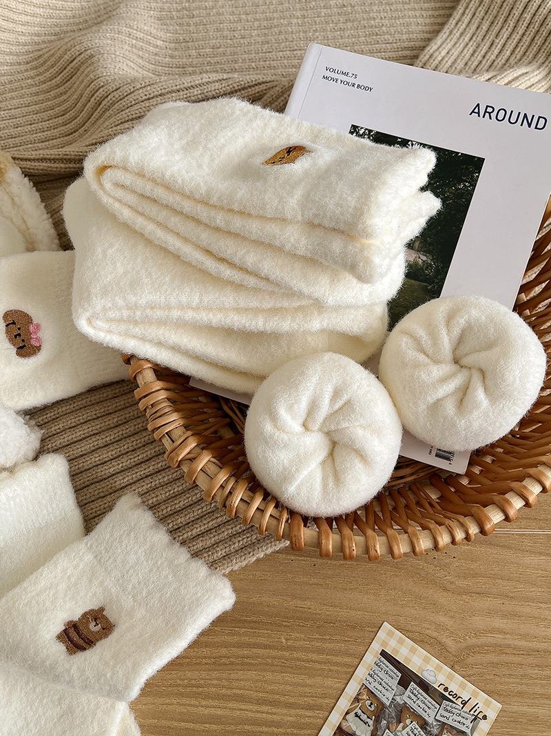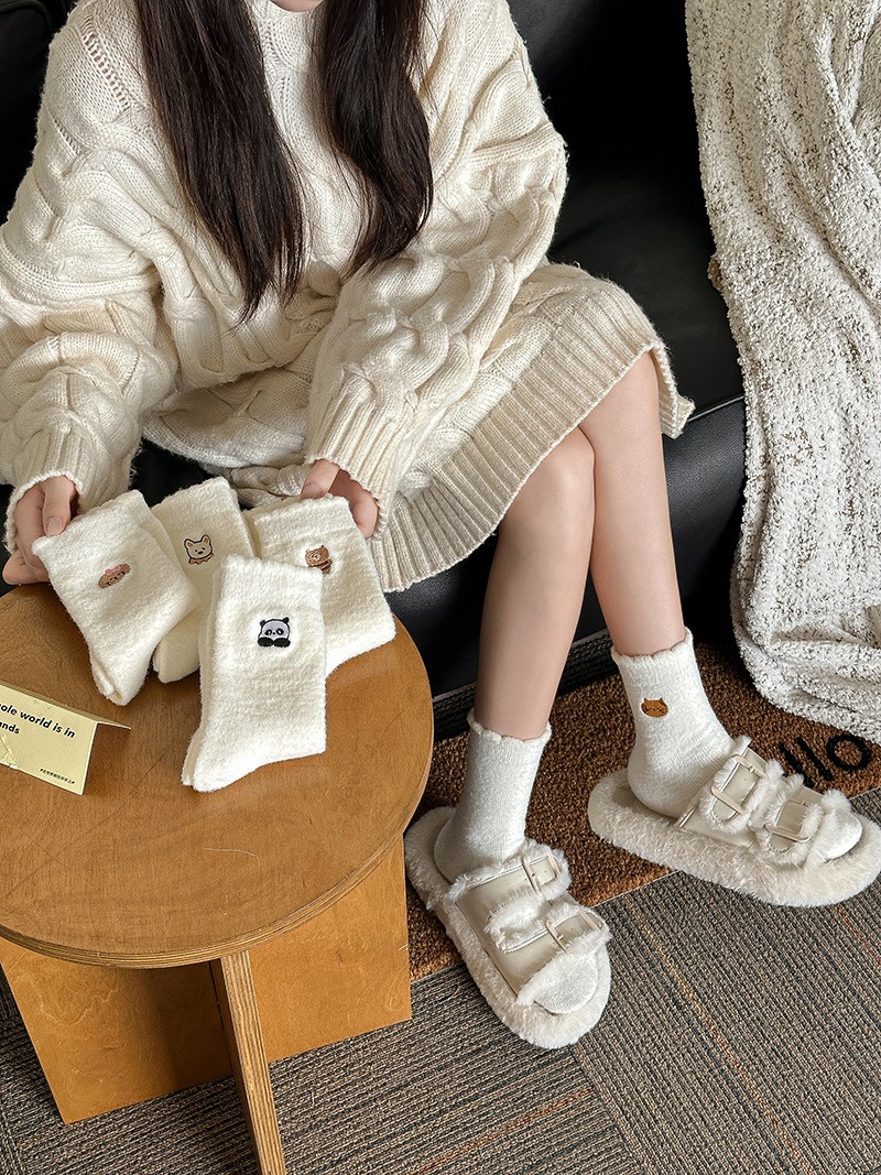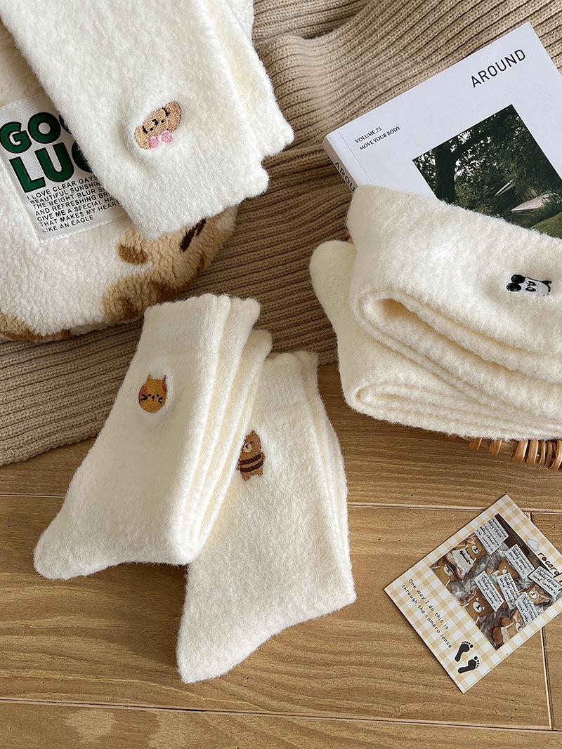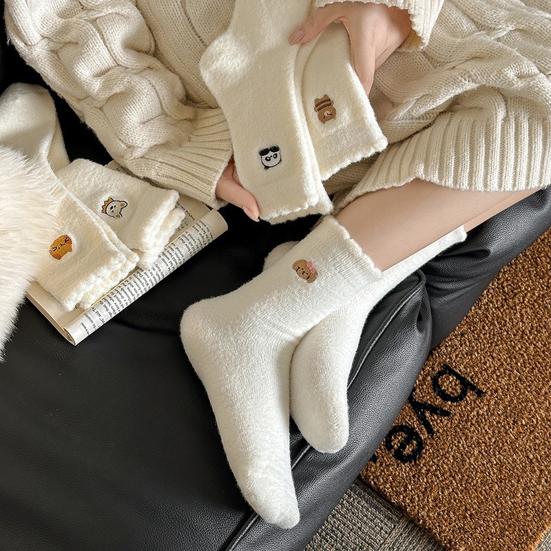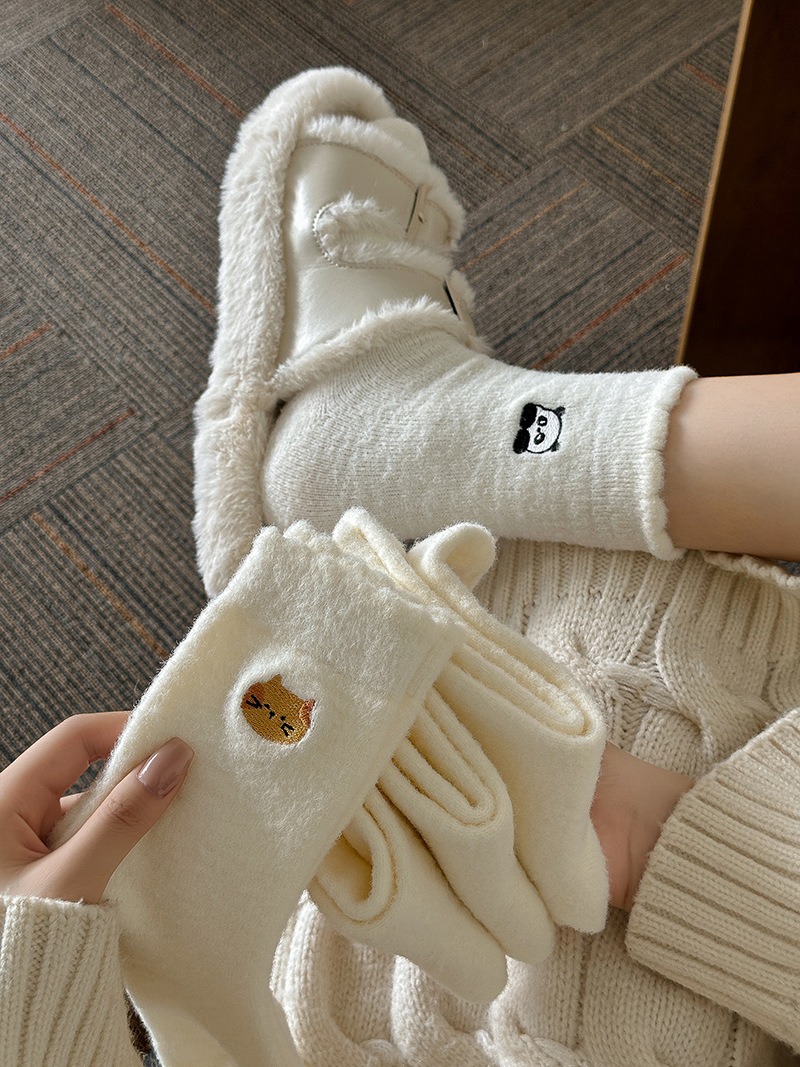 겨울 호주 벨벳 귀여운 만화 자수 레이스 양말 땀 흡수성 편안한 따뜻한 대학 스타일 수면 양말
