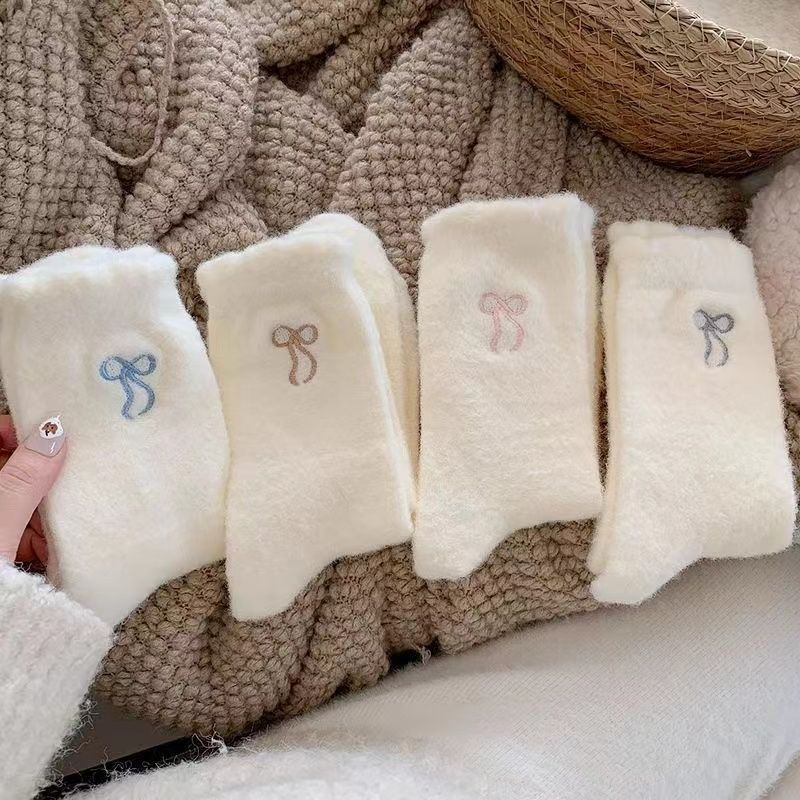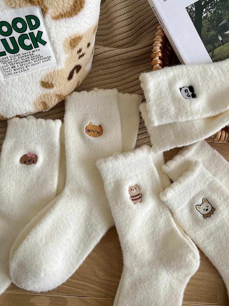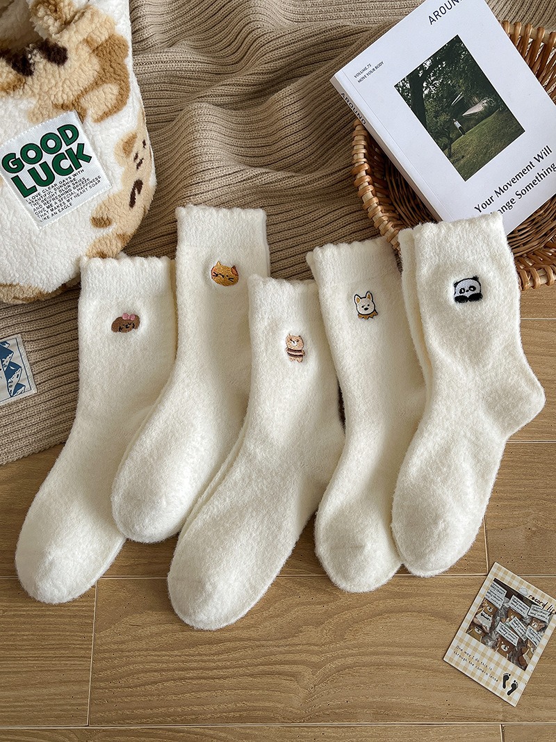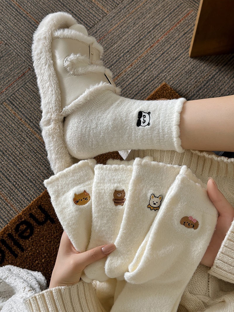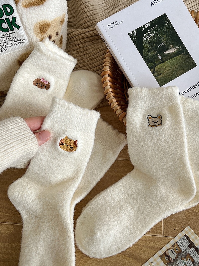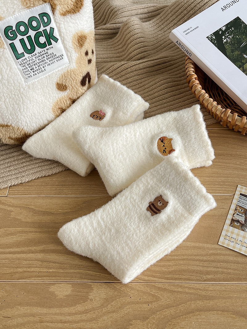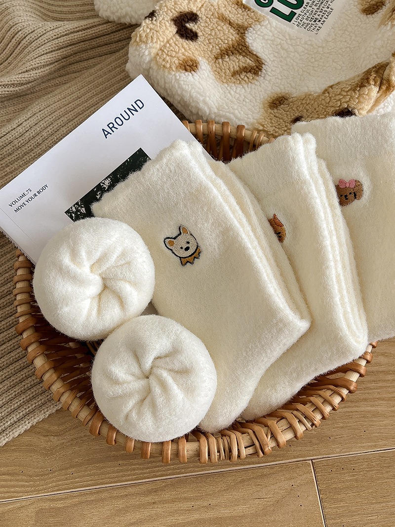 겨울 호주 벨벳 귀여운 만화 자수 레이스 양말 땀 흡수성 편안한 따뜻한 대학 스타일 수면 양말