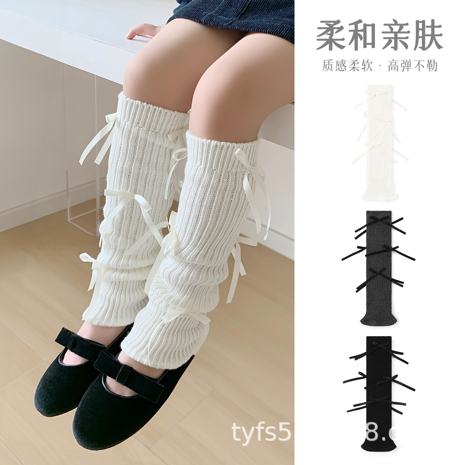 名称:针织儿童袜套秋冬女童甜美公主小腿套纯色双针保暖脚套儿童堆堆袜