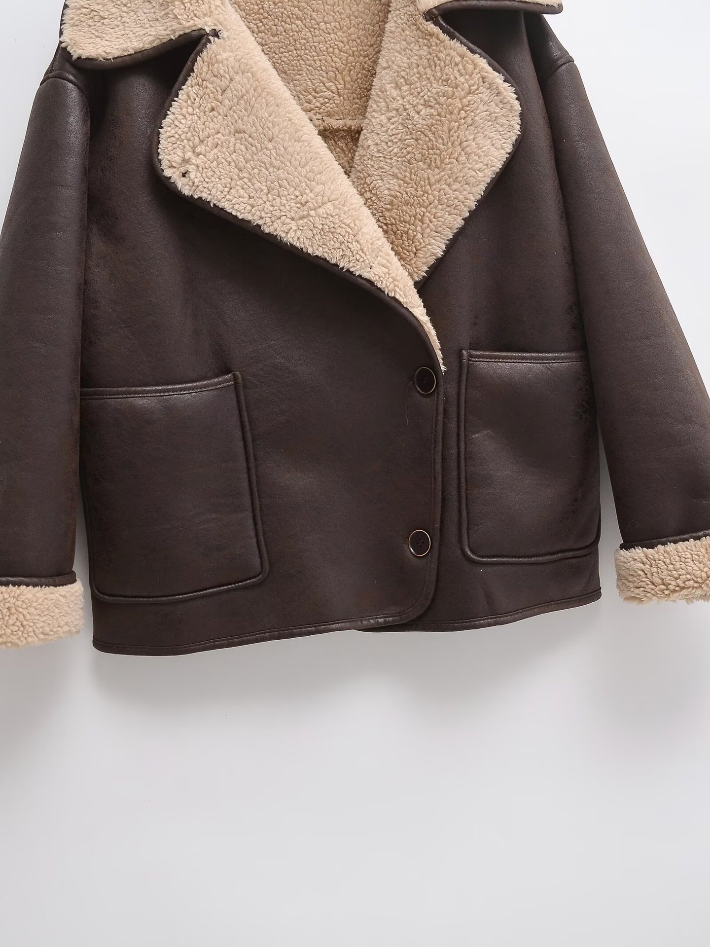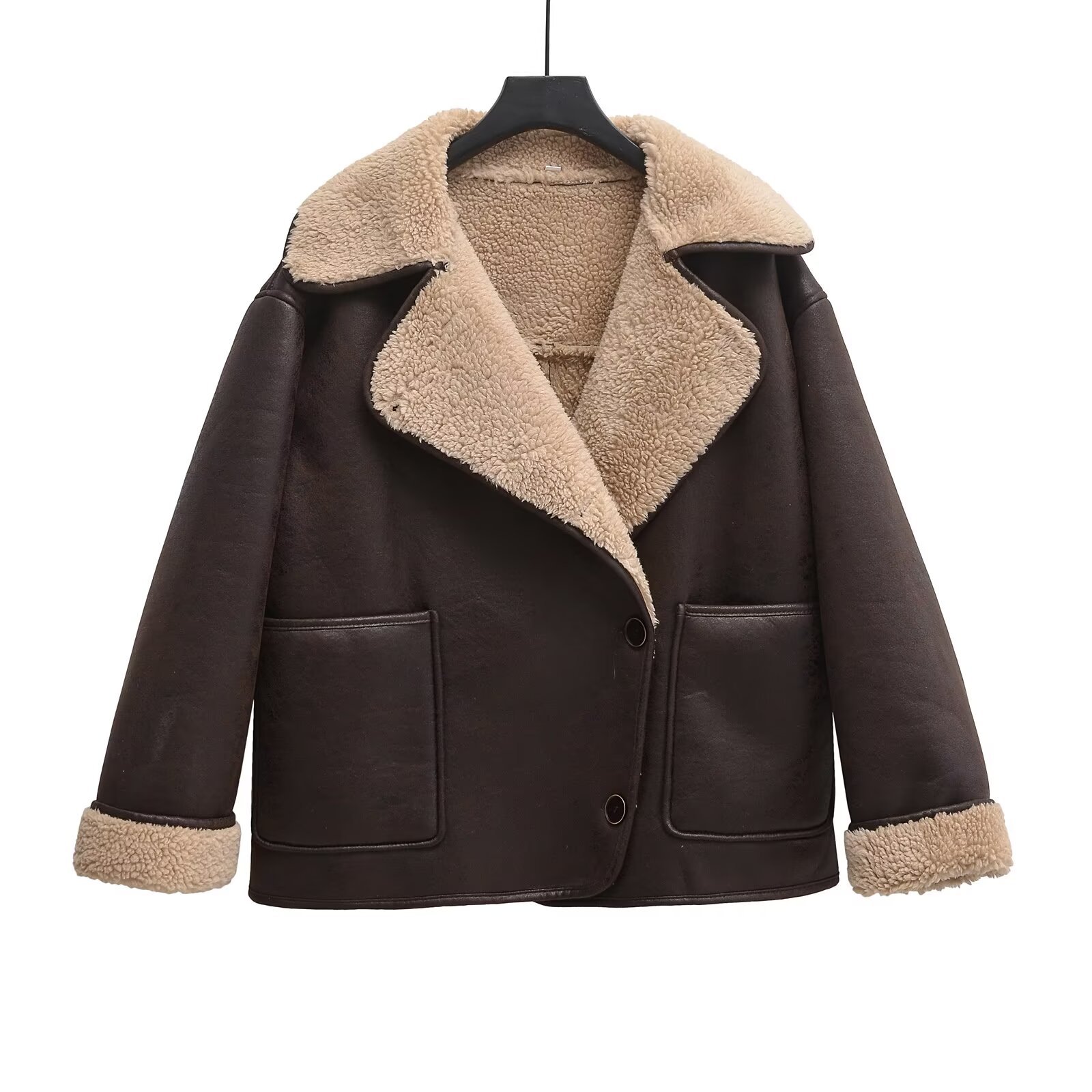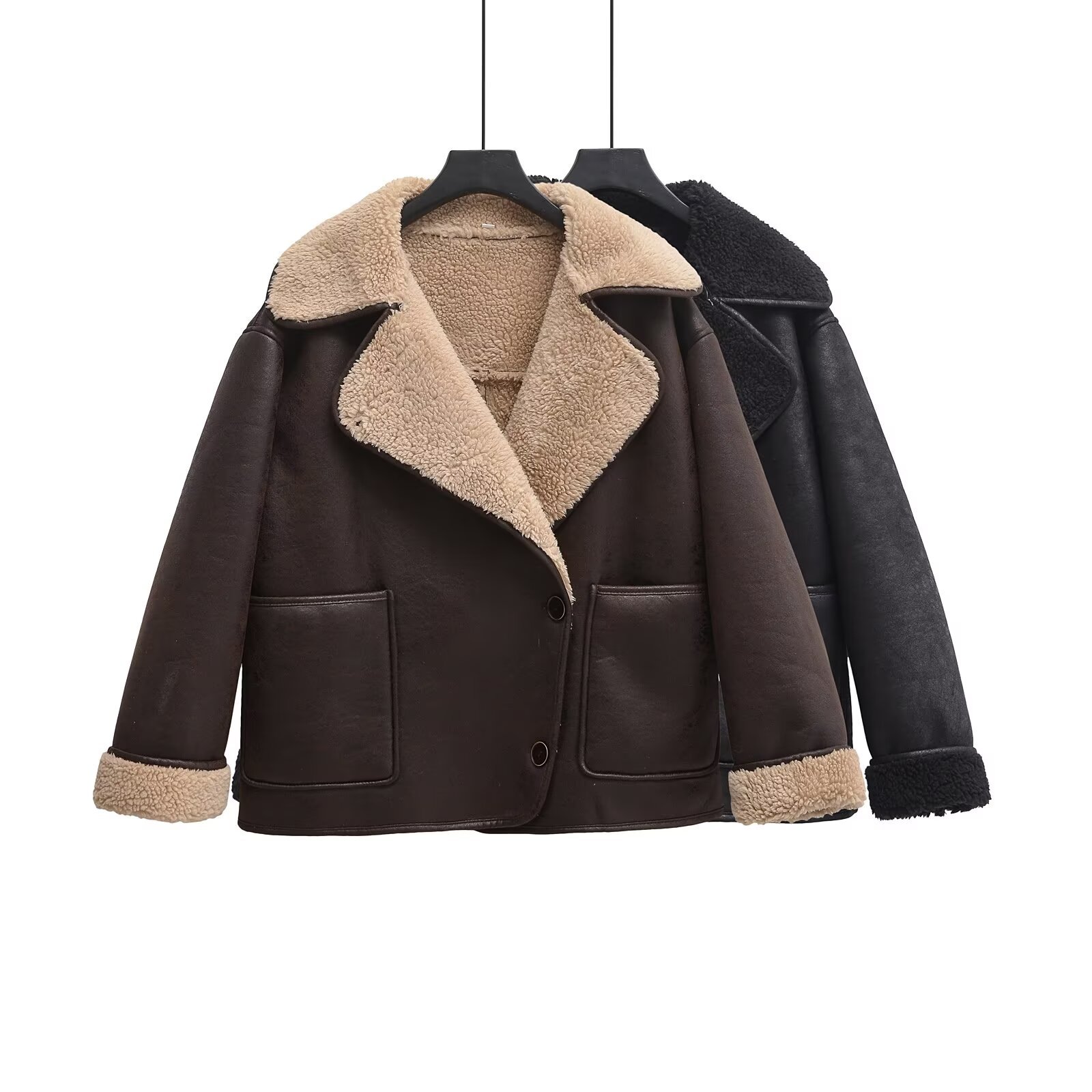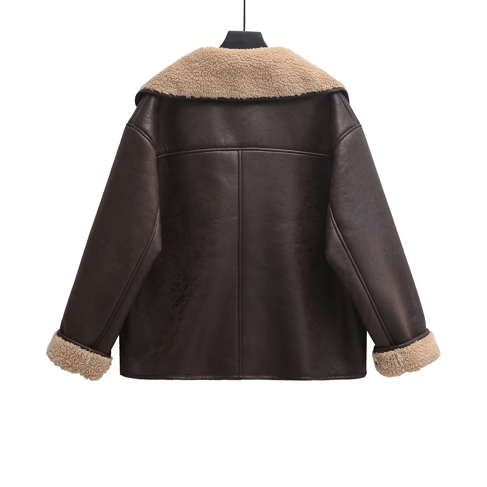 국경 간 유럽과 미국 여성의 2024 겨울 새로운 미국 복고풍 긴 소매 옷깃 모피 재킷스토어 가기