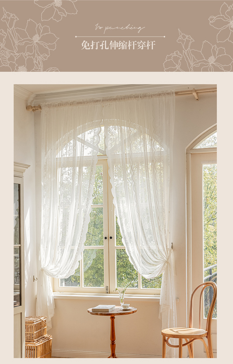 펀치 프리 벨크로 따뜻한 빛 전달 커튼 거즈 커튼 프렌치 화이트 레이스 스페셜 거실 발코니 파티션스토어 가기