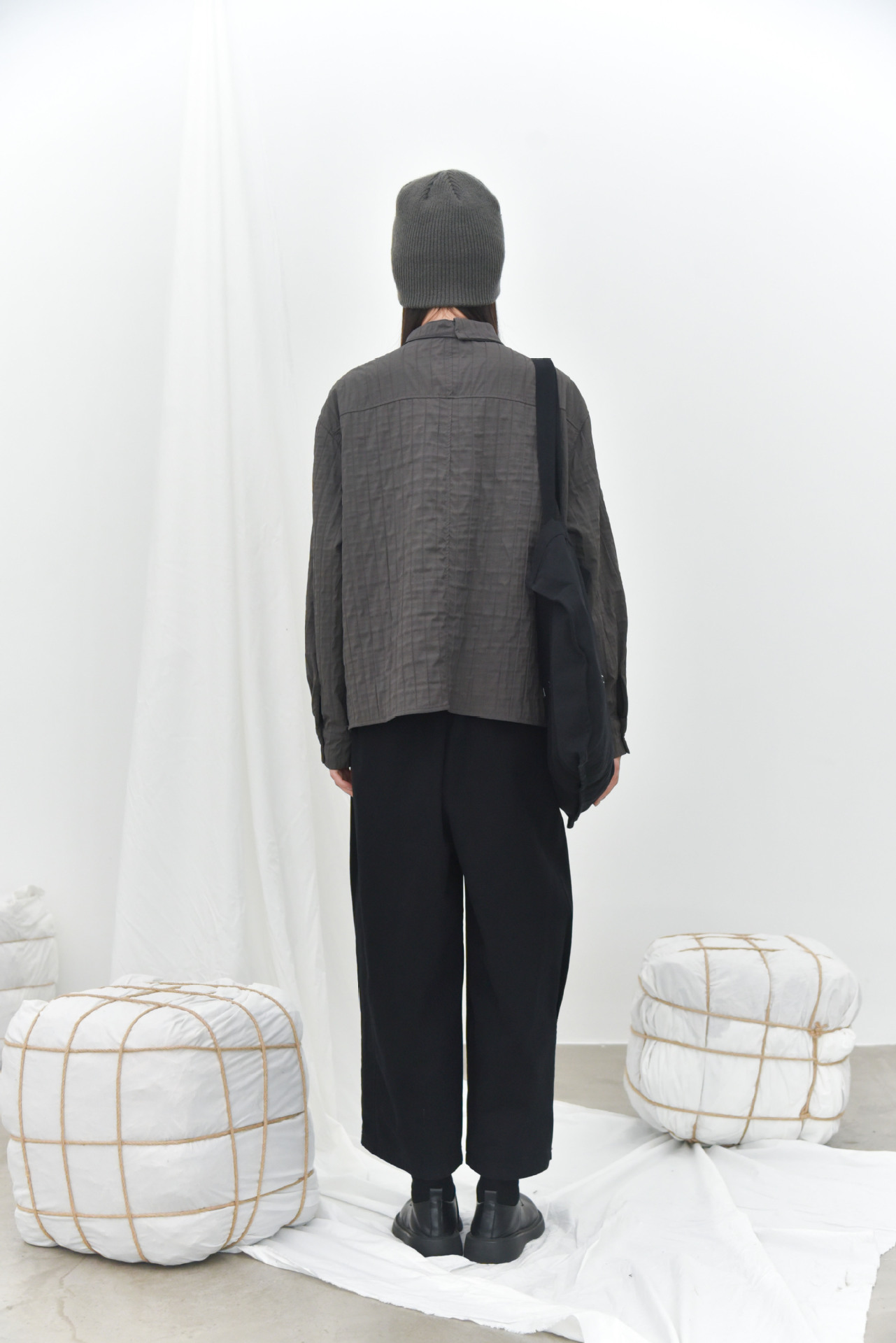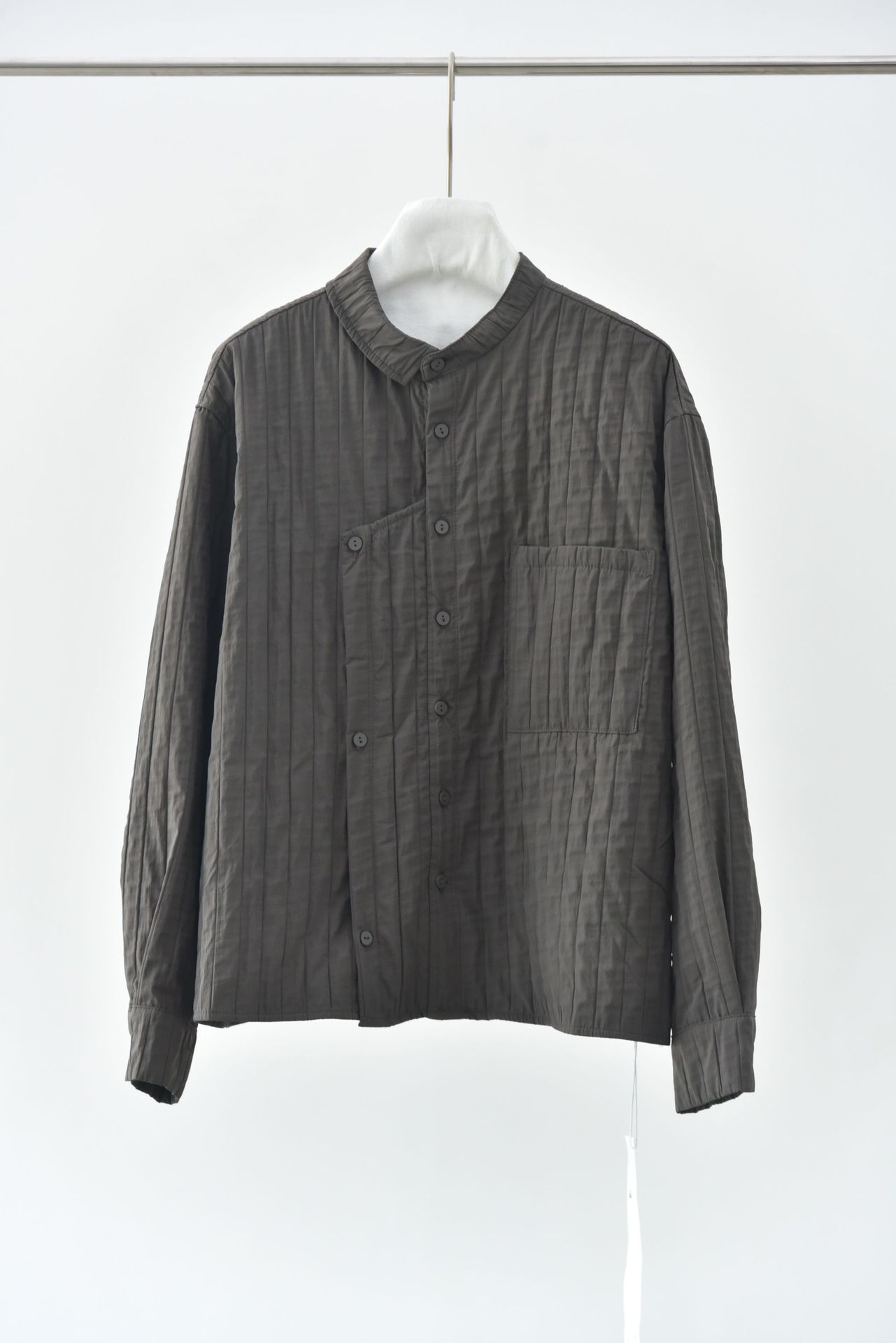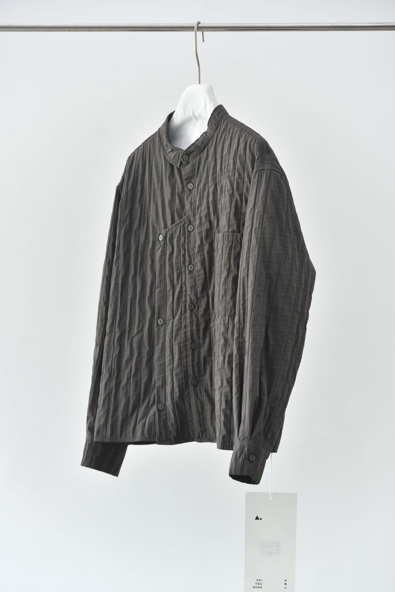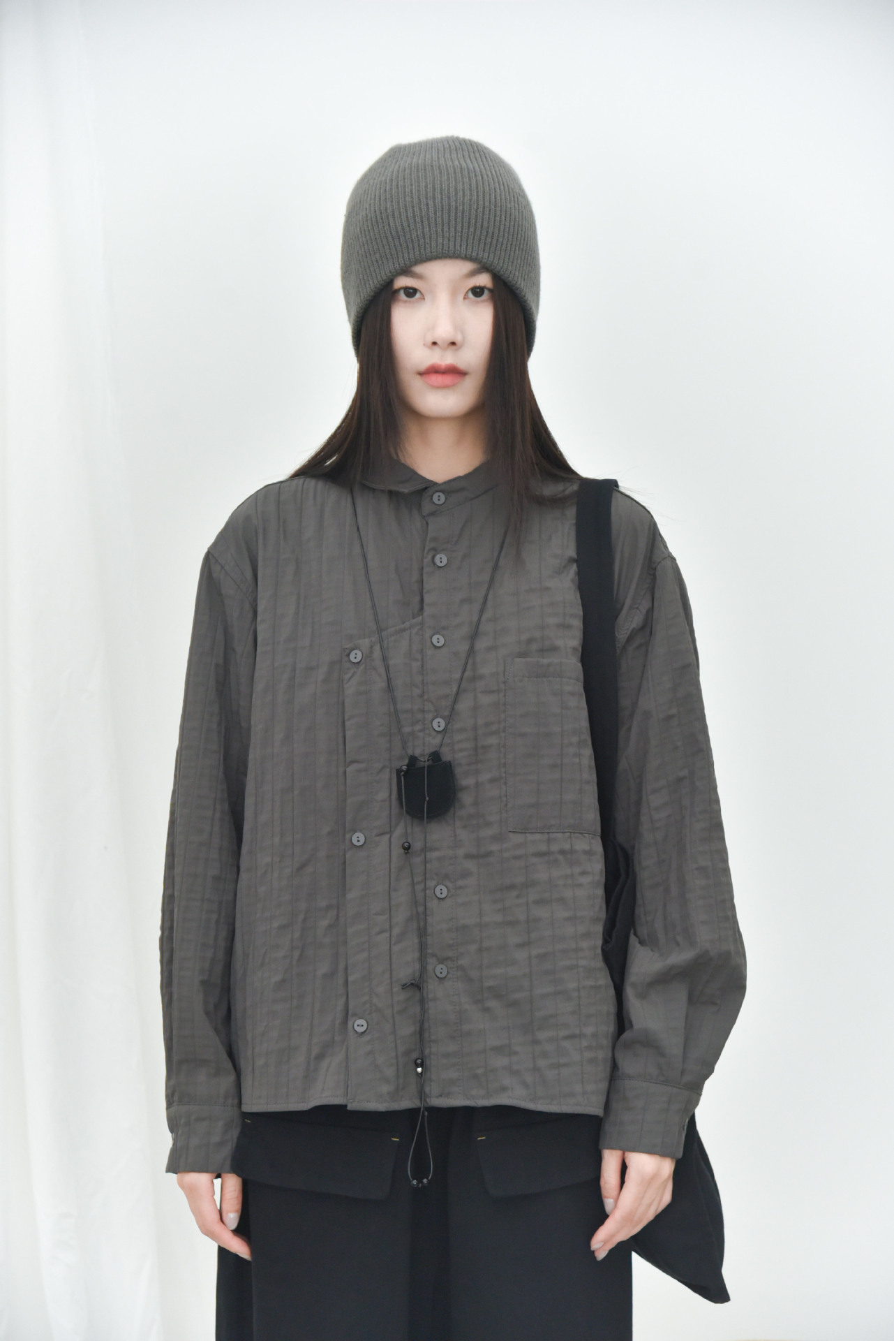 [그리고 산] 질감 어두운 스트립 디자인 단일 목선 조각 플래켓 일본 간단한 셔츠 5350 #