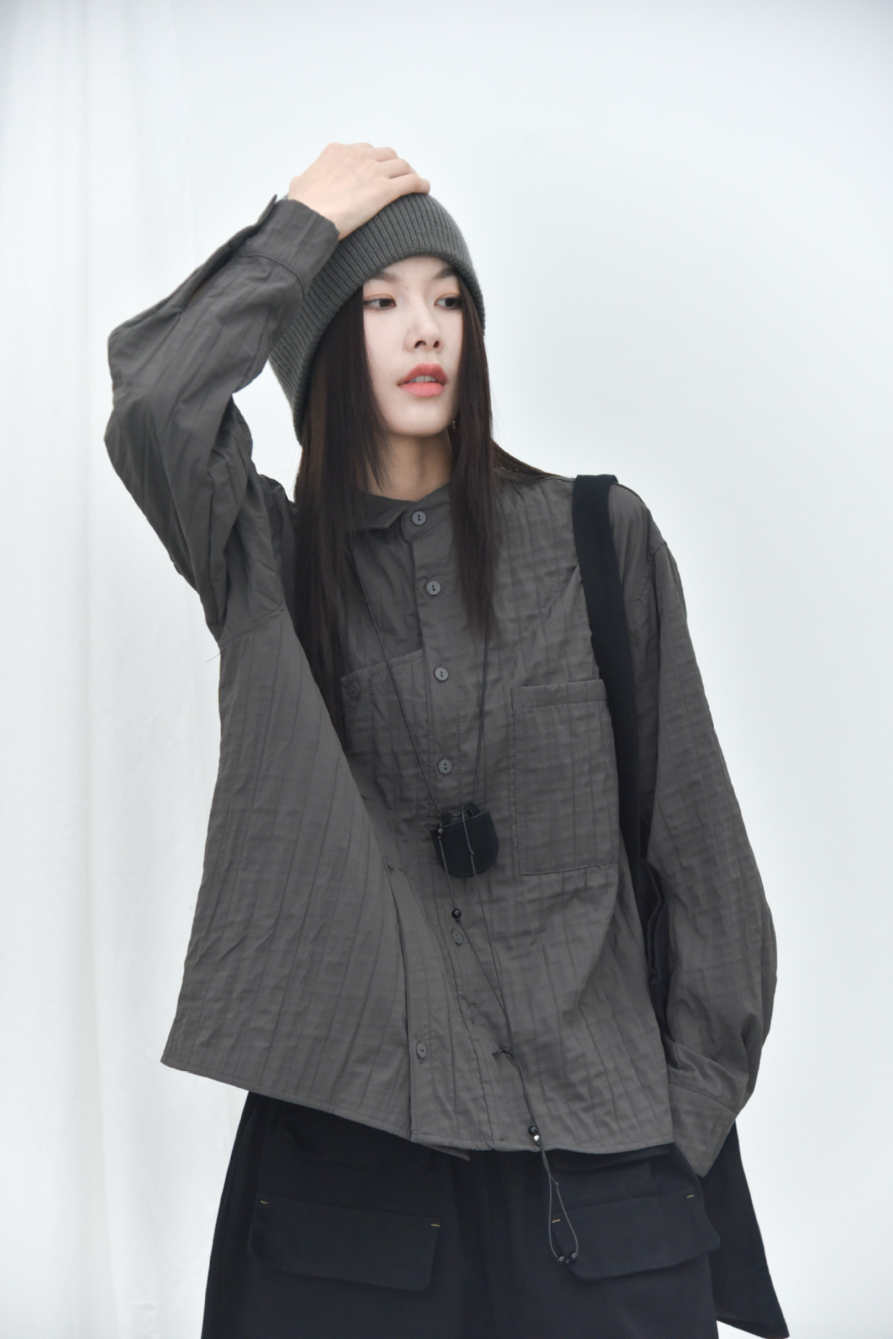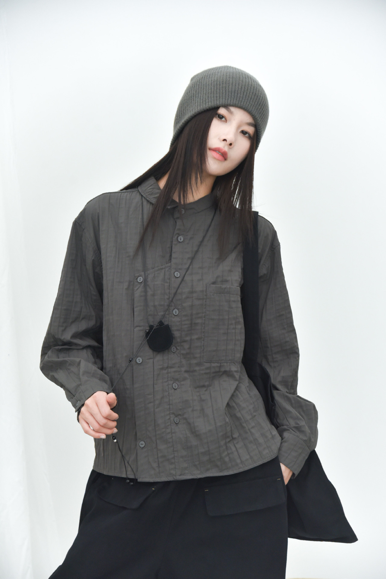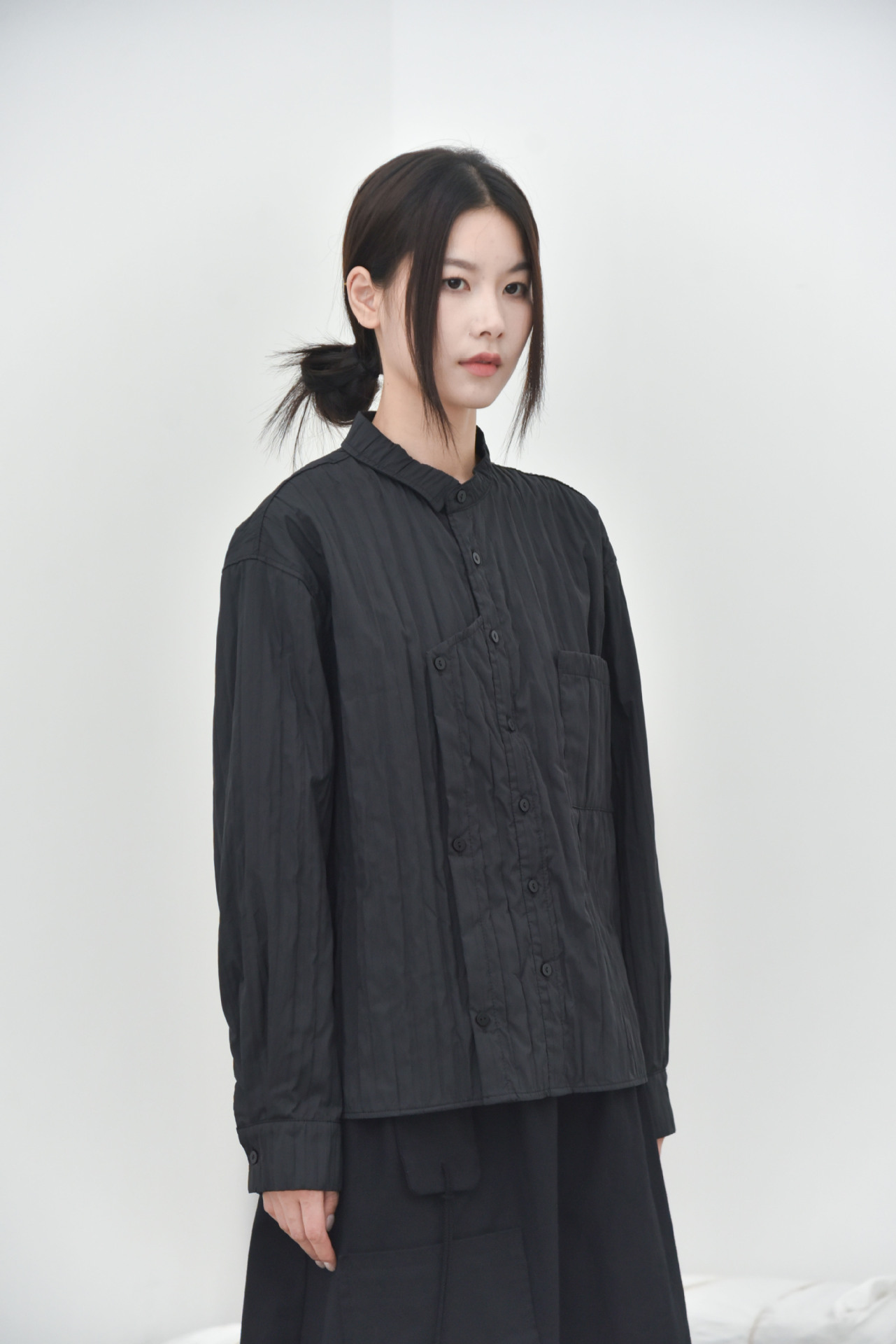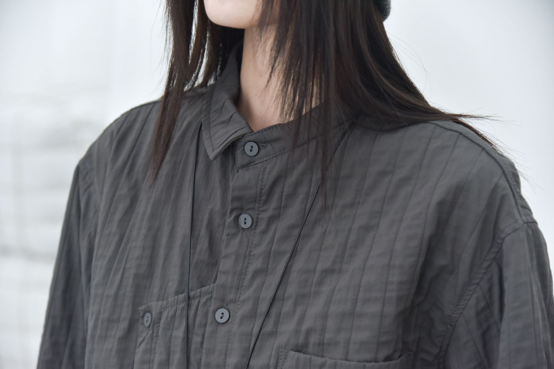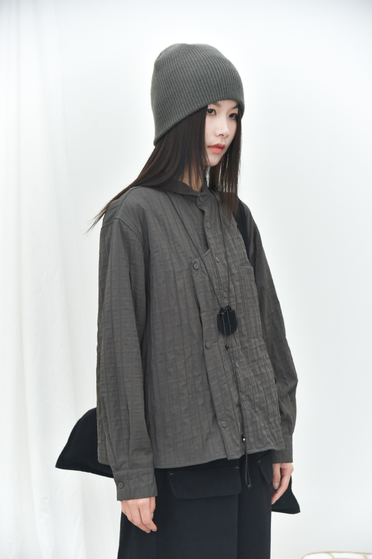 [그리고 산] 질감 어두운 스트립 디자인 단일 목선 조각 플래켓 일본 간단한 셔츠 5350 #스토어 가기