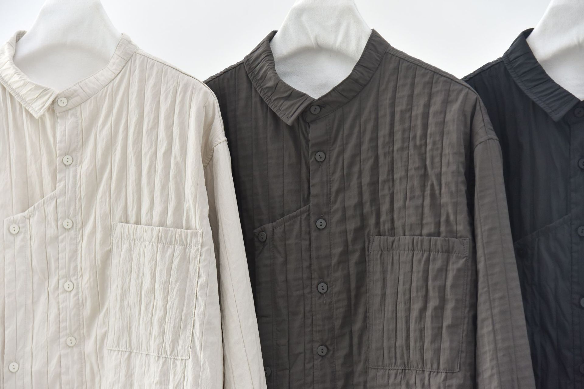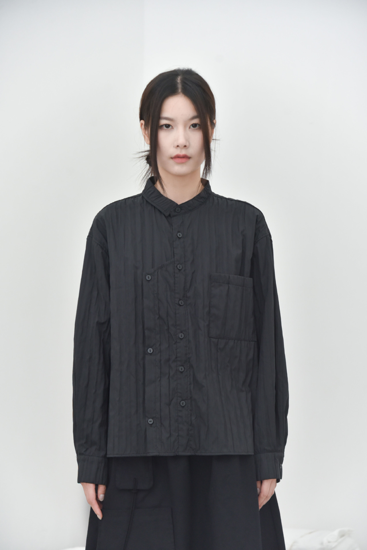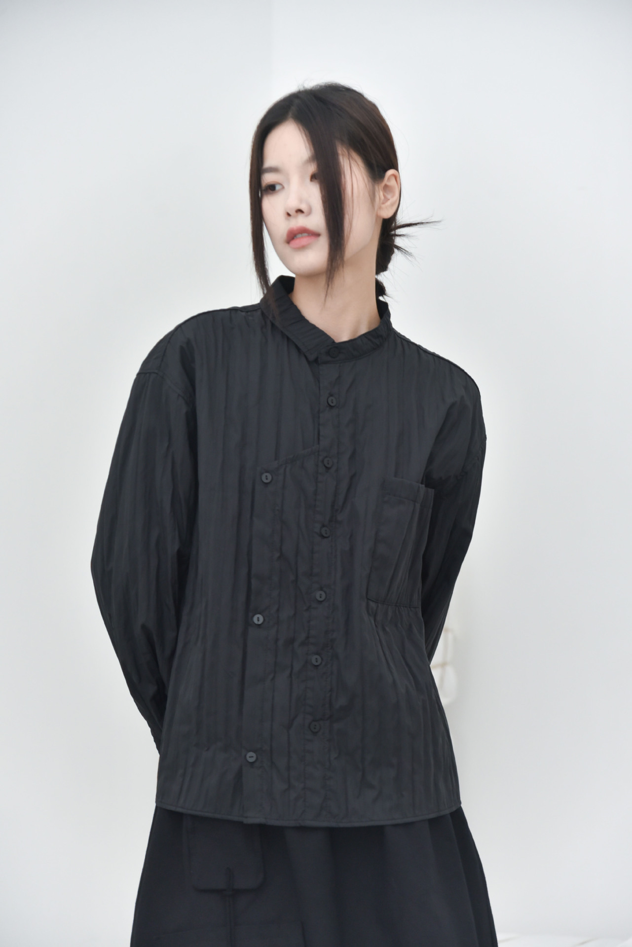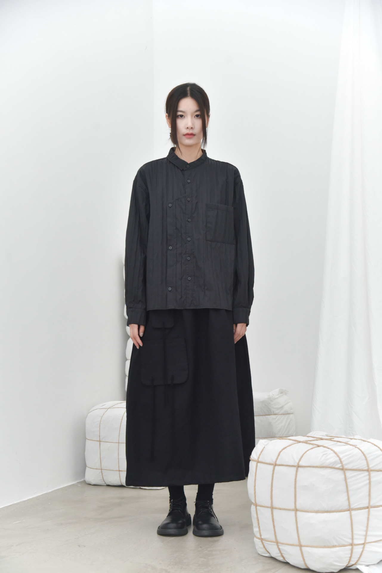[그리고 산] 질감 어두운 스트립 디자인 단일 목선 조각 플래켓 일본 간단한 셔츠 5350 #스토어 가기
