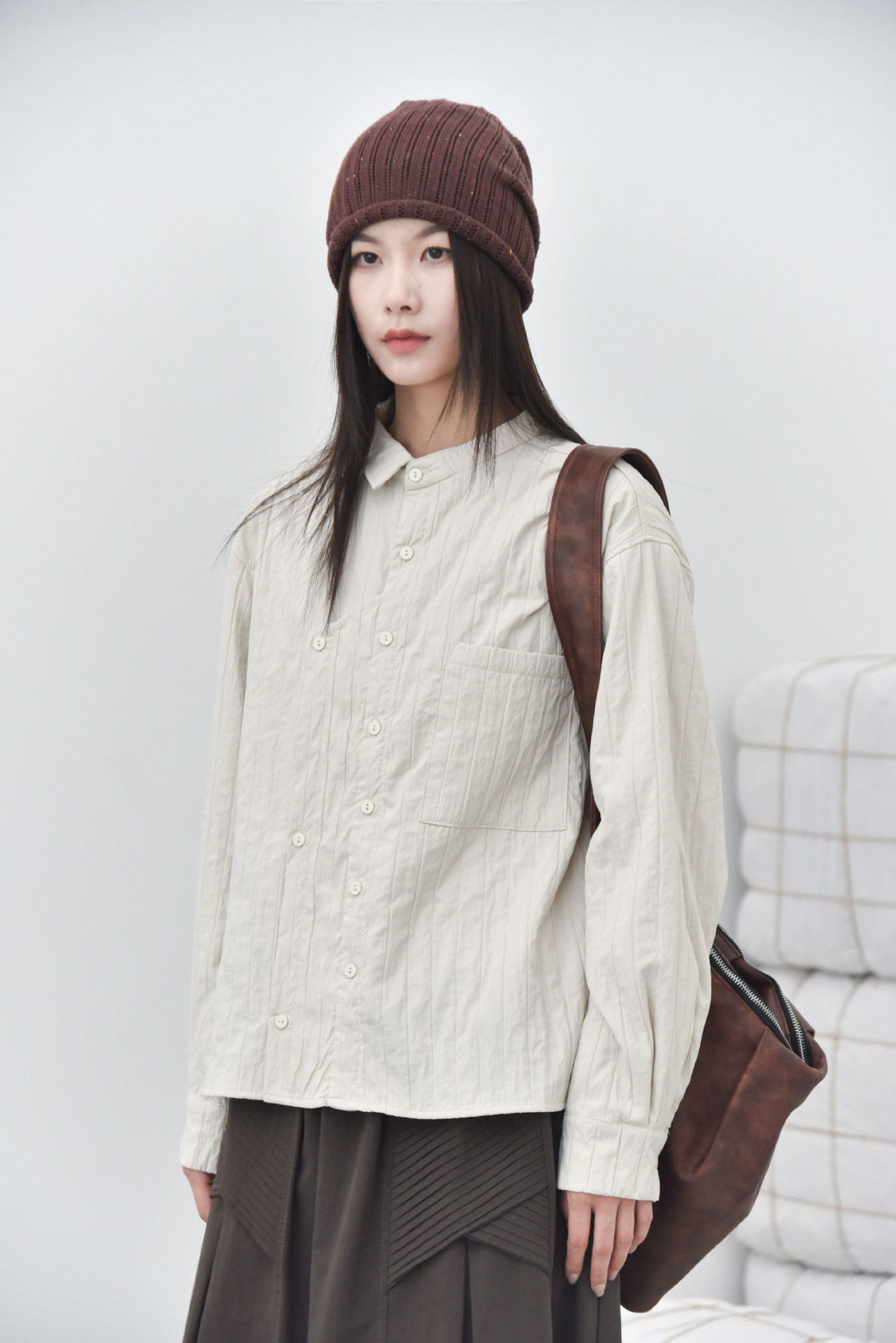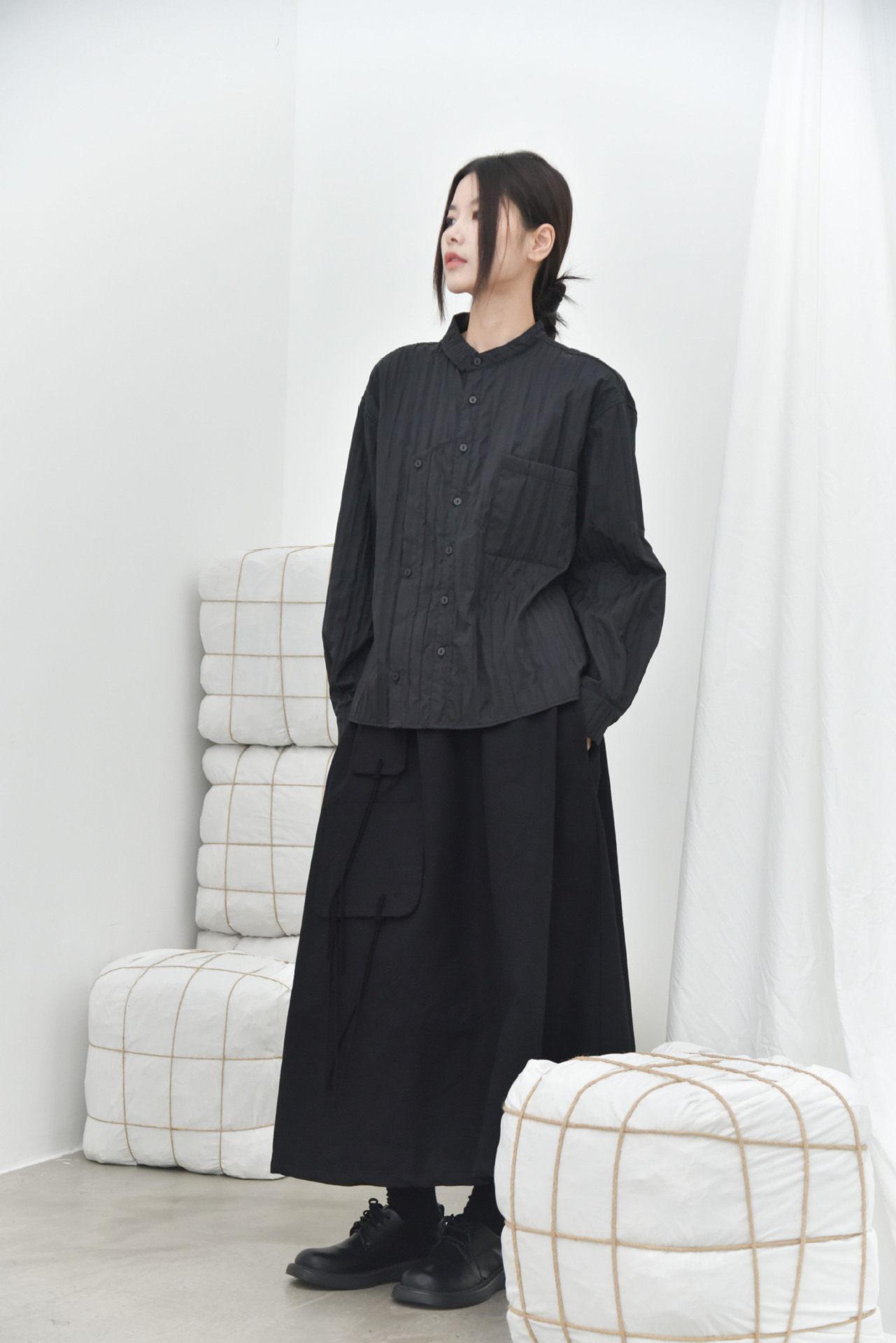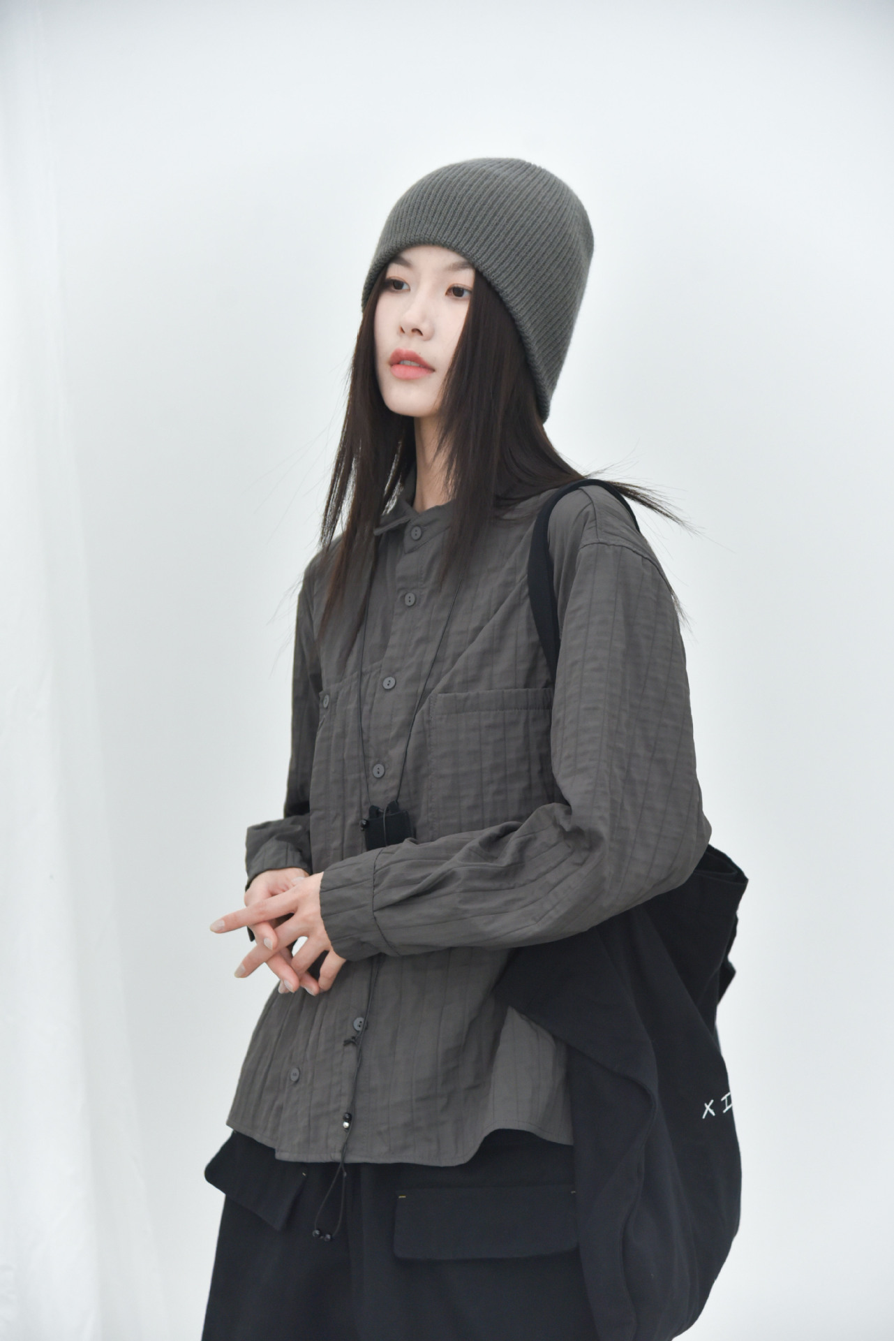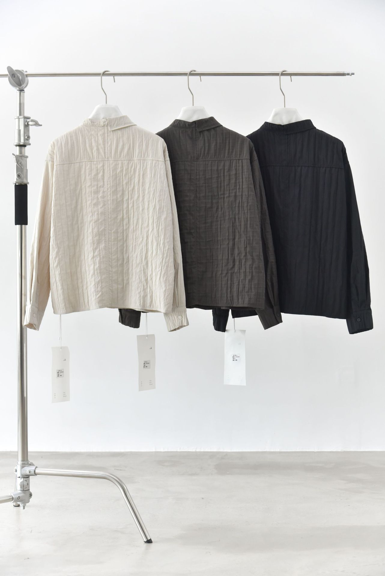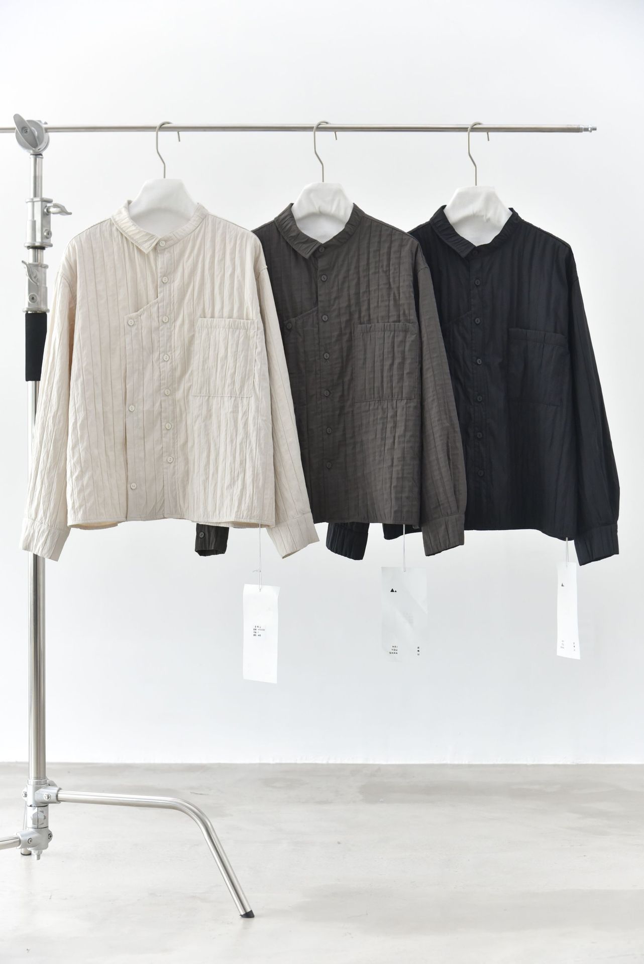 [그리고 산] 질감 어두운 스트립 디자인 단일 목선 조각 플래켓 일본 간단한 셔츠 5350 #스토어 가기