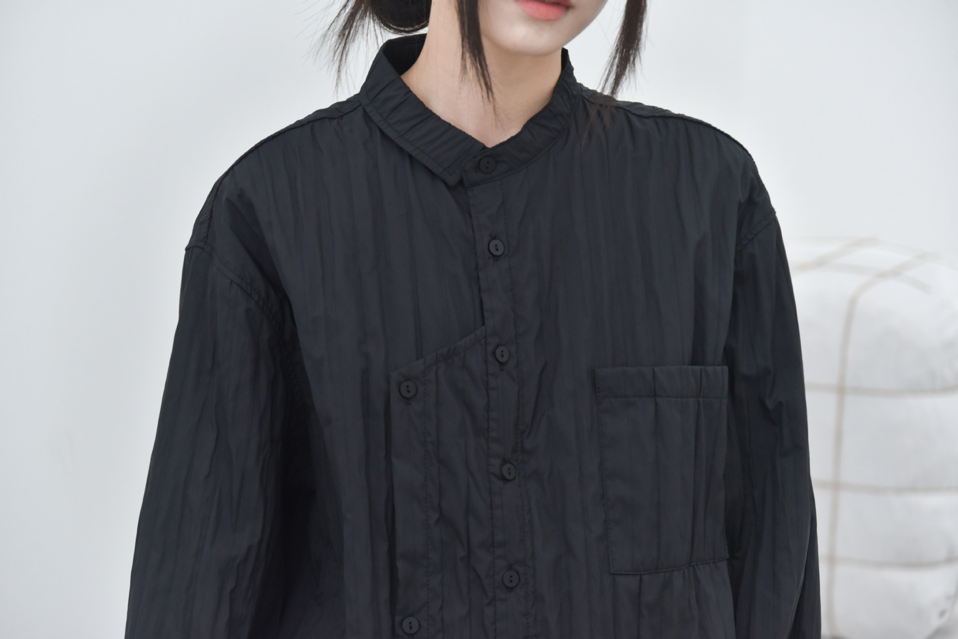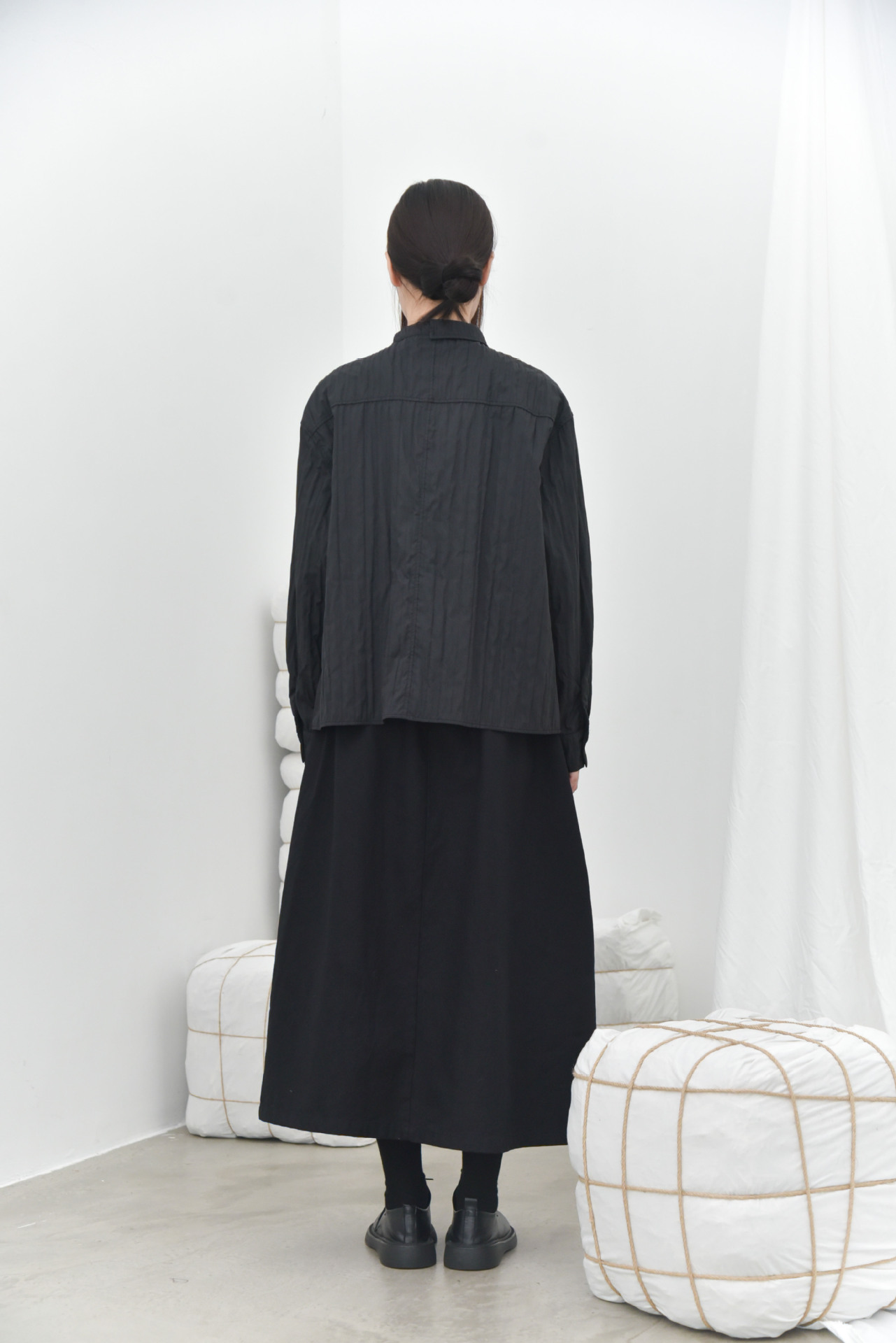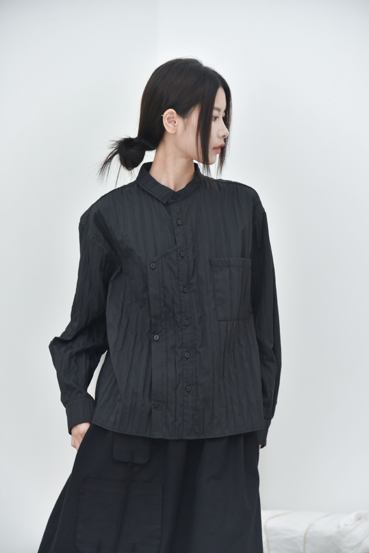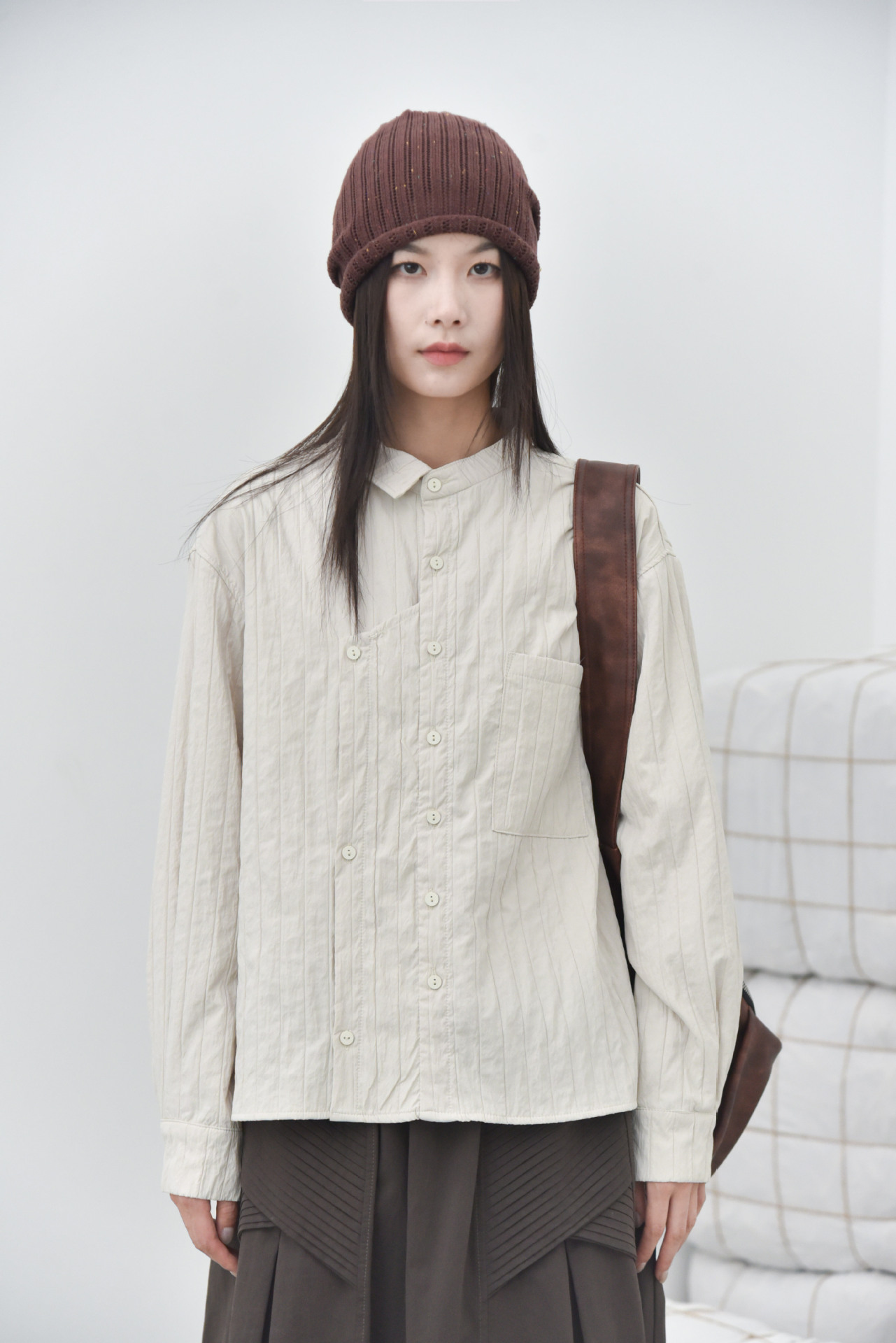 [그리고 산] 질감 어두운 스트립 디자인 단일 목선 조각 플래켓 일본 간단한 셔츠 5350 #스토어 가기