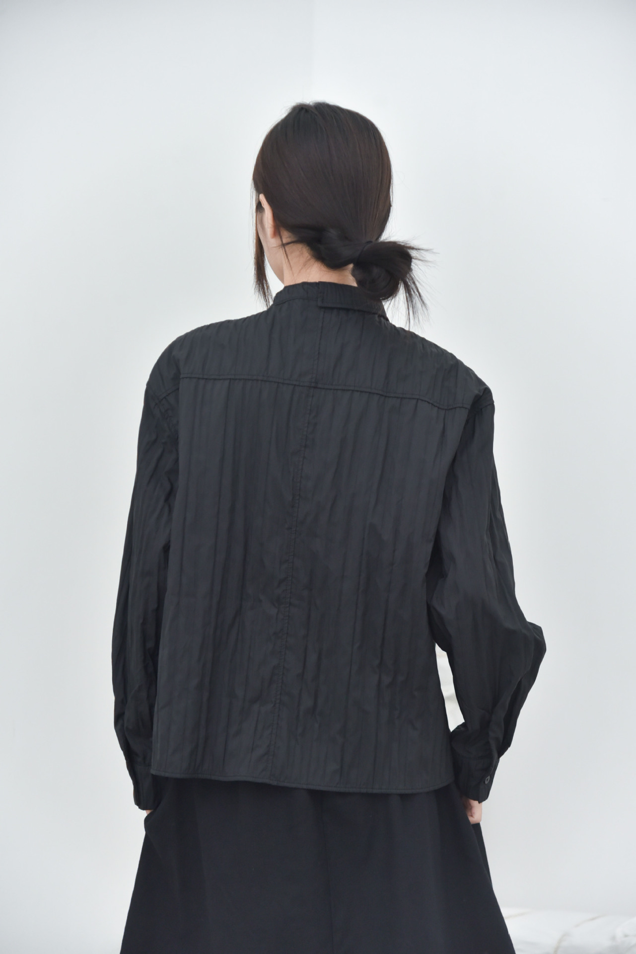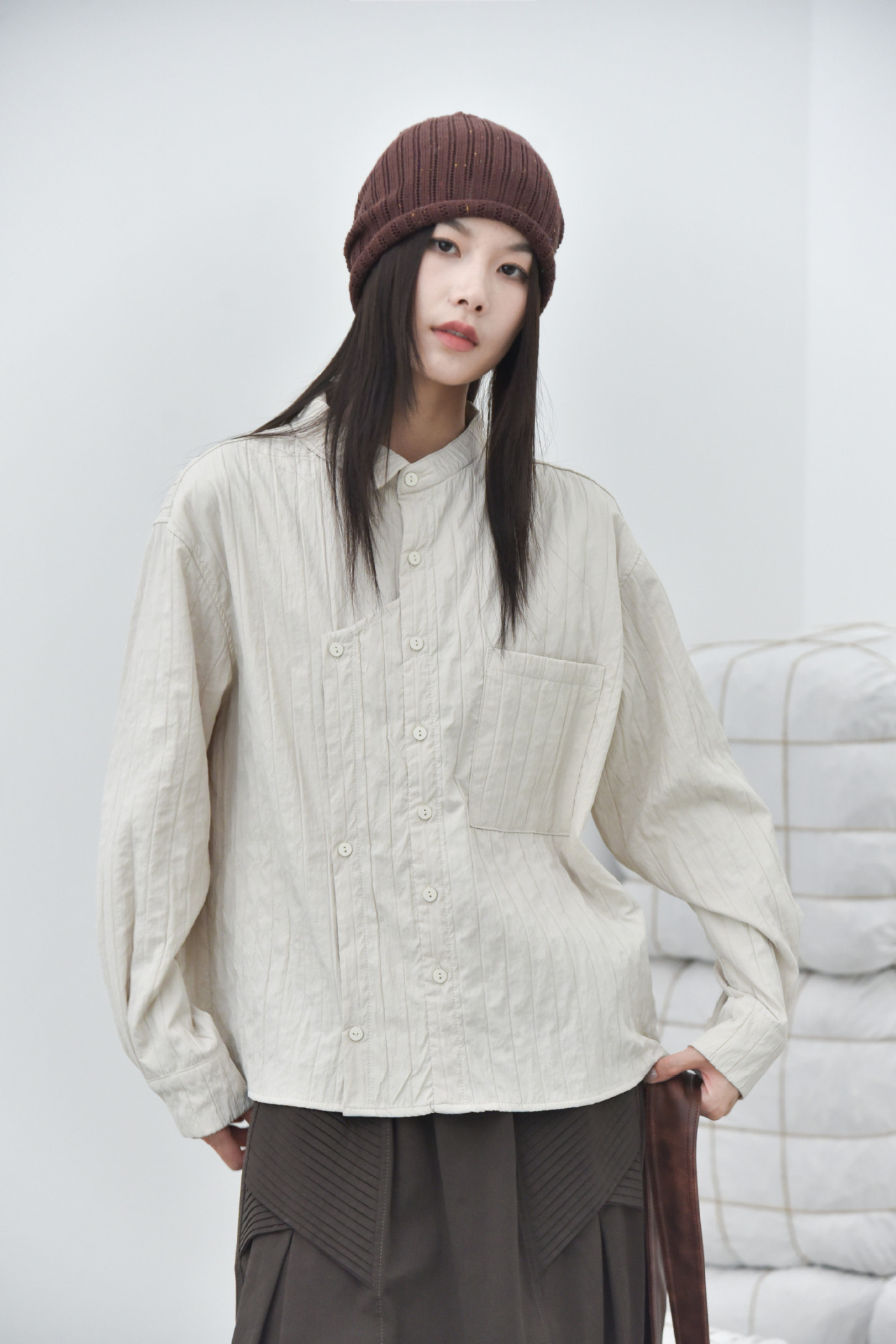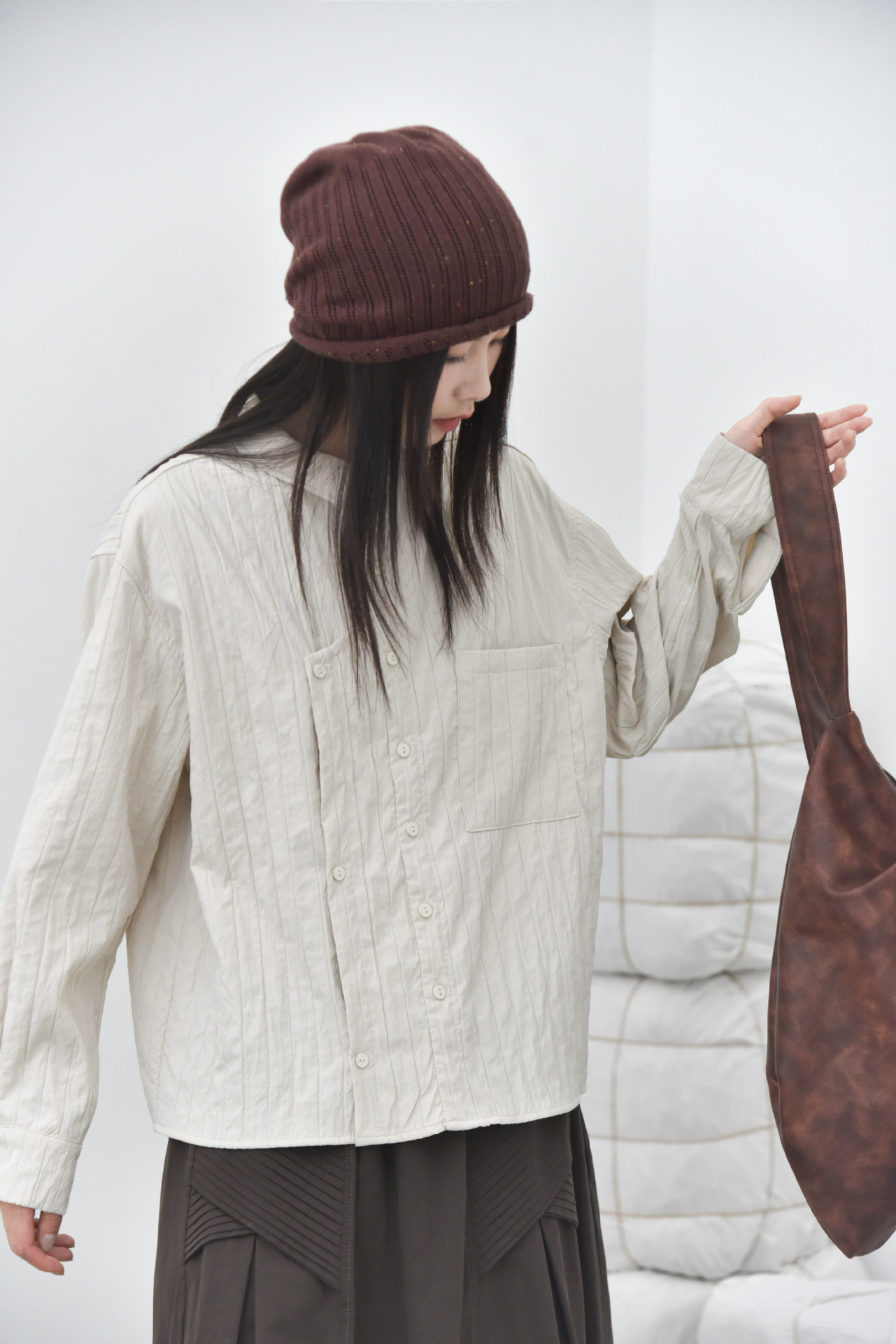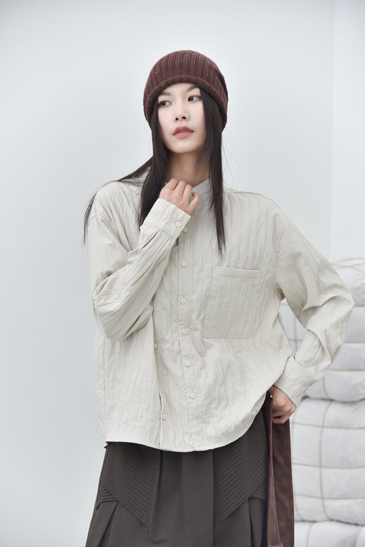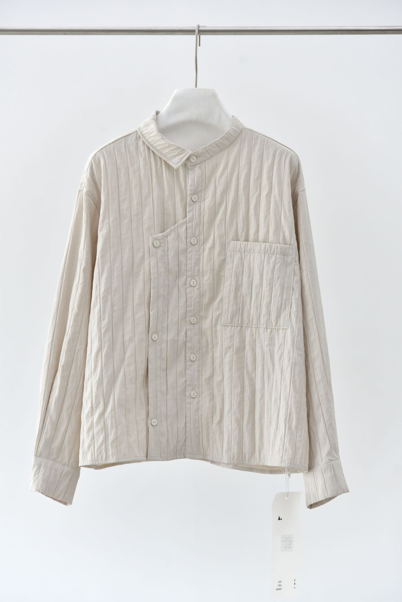 [그리고 산] 질감 어두운 스트립 디자인 단일 목선 조각 플래켓 일본 간단한 셔츠 5350 #스토어 가기