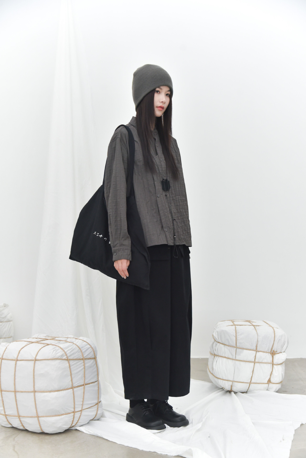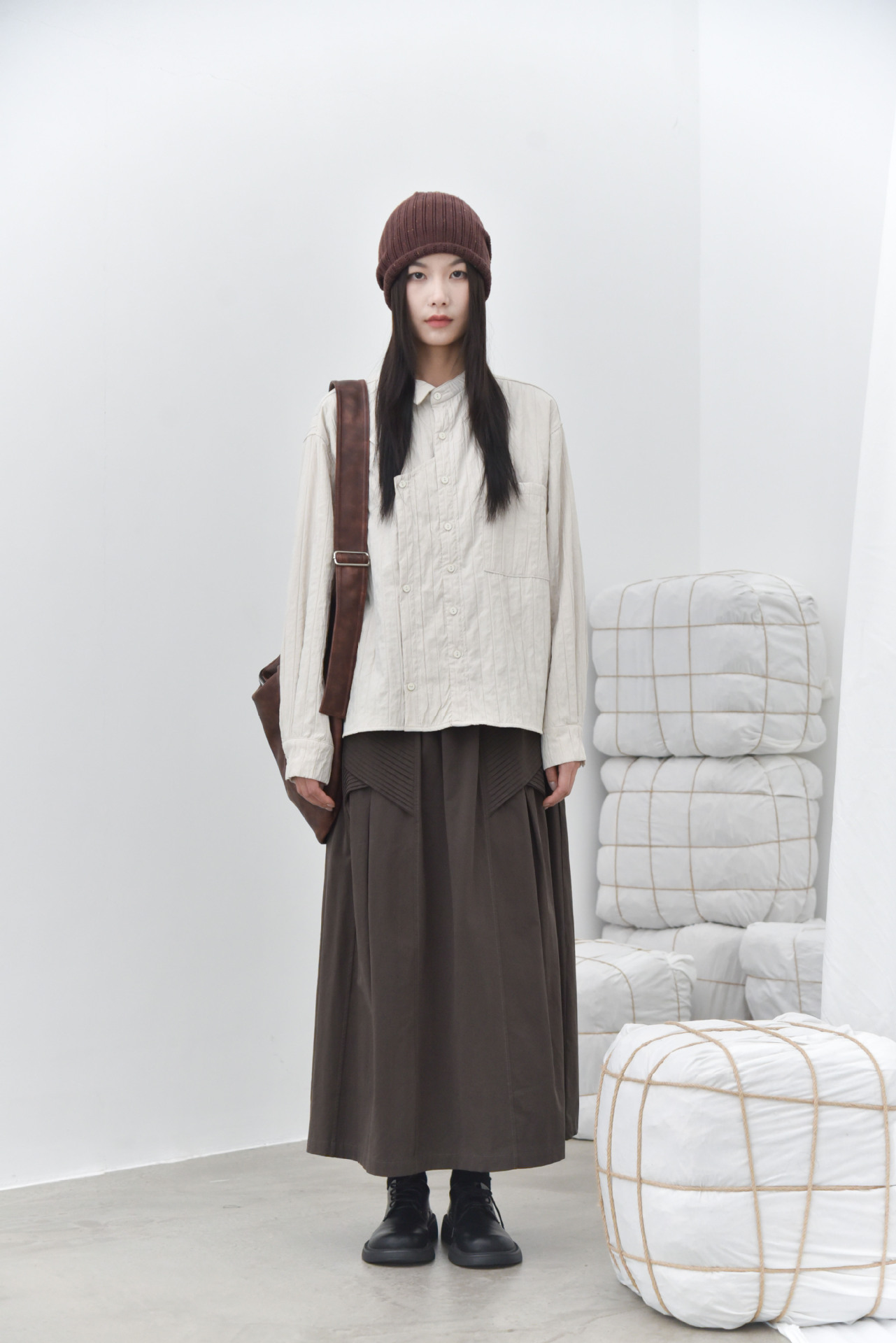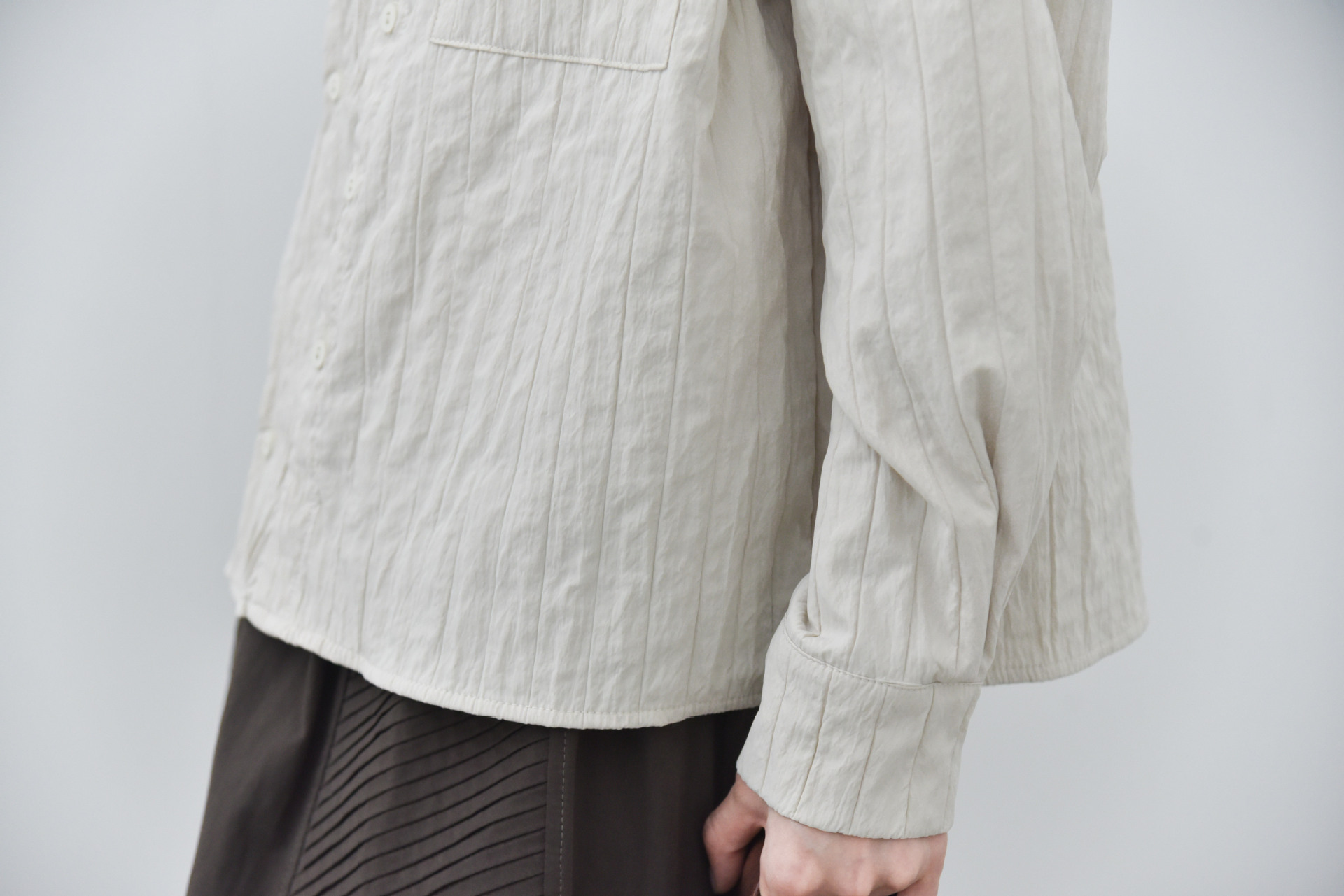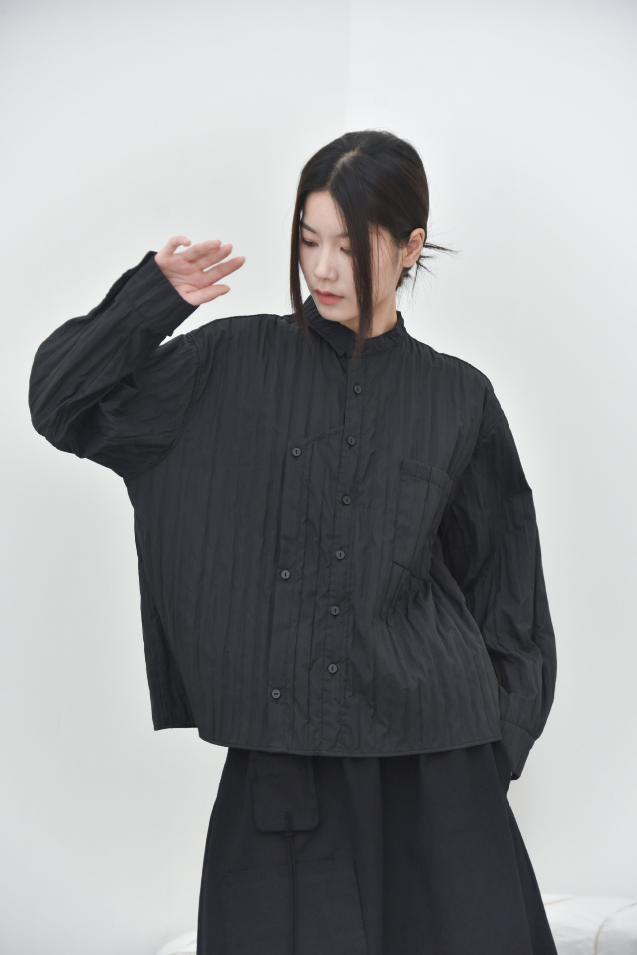 [그리고 산] 질감 어두운 스트립 디자인 단일 목선 조각 플래켓 일본 간단한 셔츠 5350 #스토어 가기