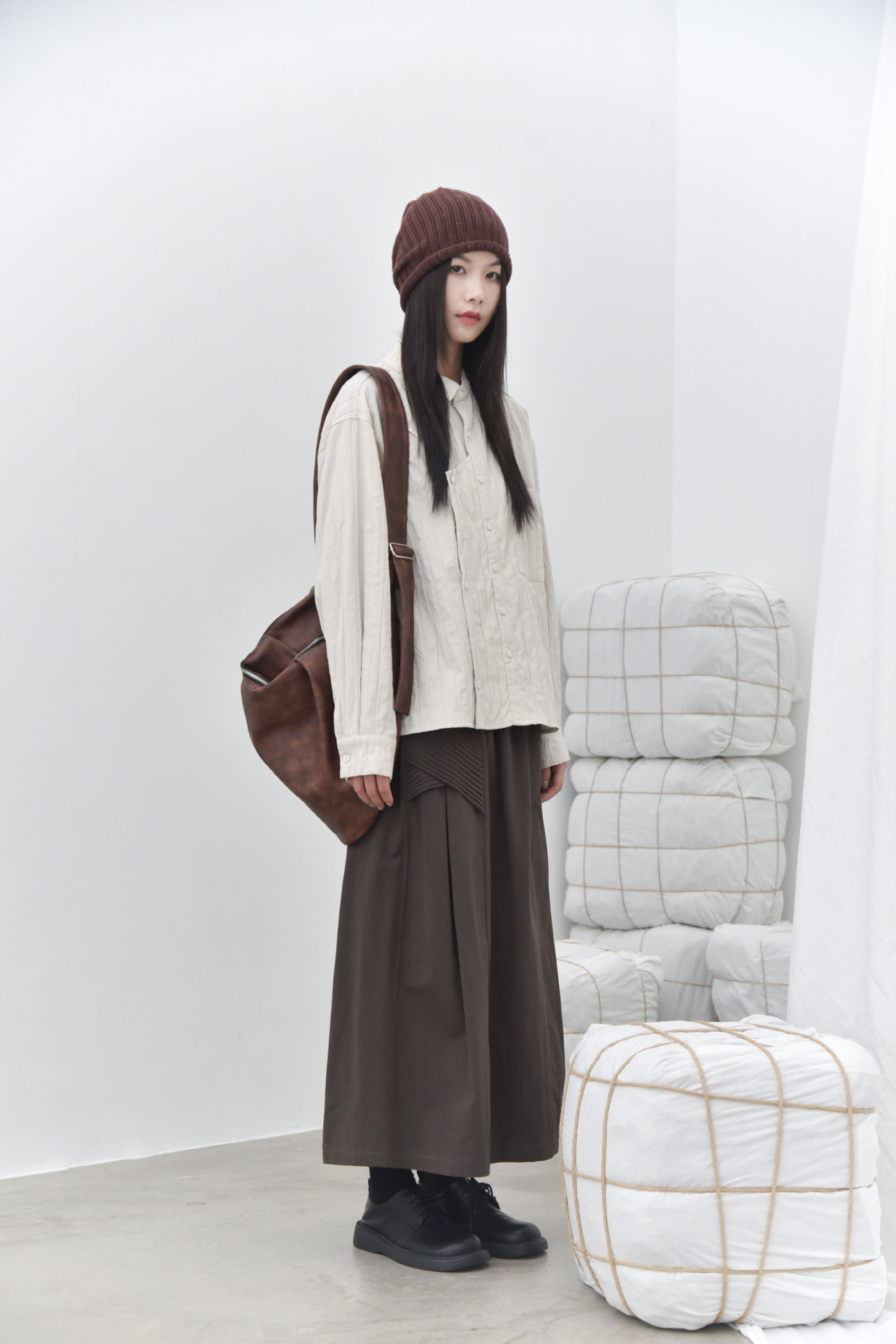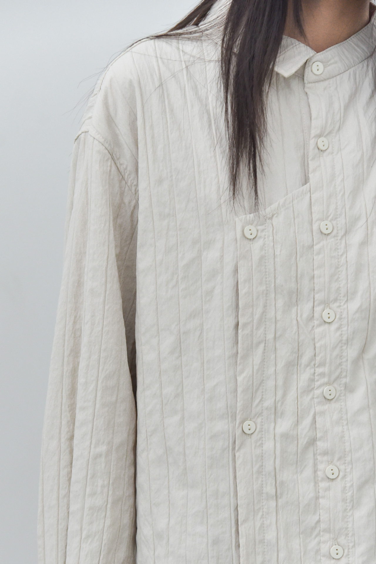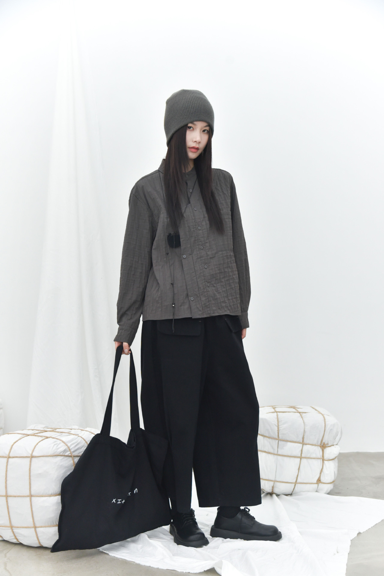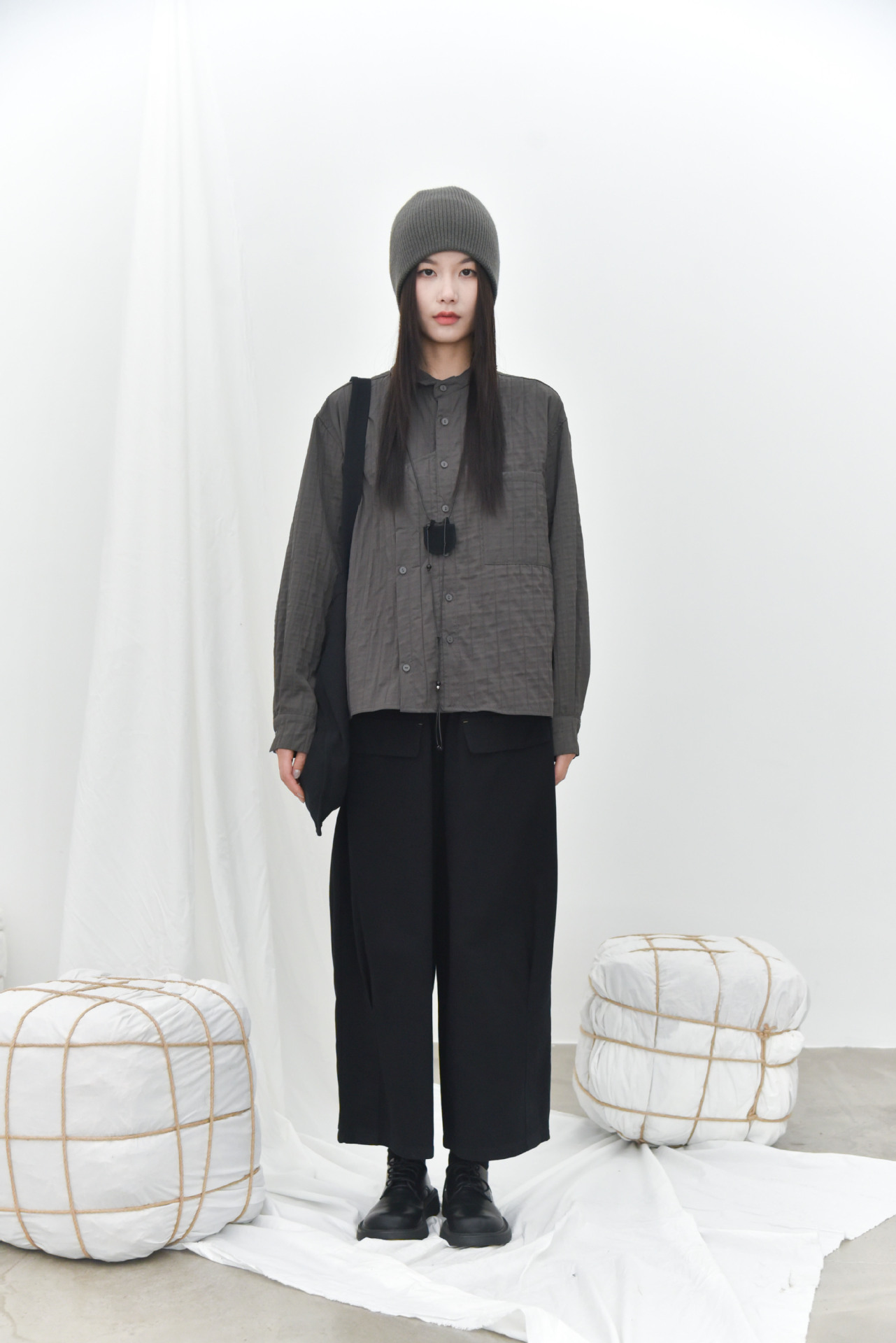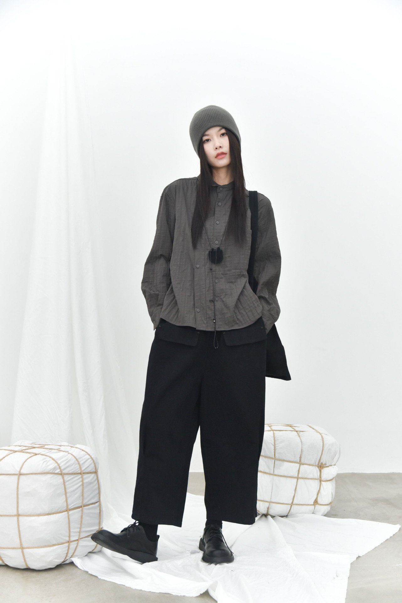 [그리고 산] 질감 어두운 스트립 디자인 단일 목선 조각 플래켓 일본 간단한 셔츠 5350 #스토어 가기