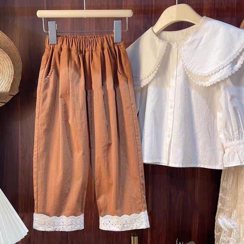 소녀 청바지 가을 2025 새로운 어린이 봄과 가을 캐주얼 느슨한 넓은 다리 바지 어린 소녀를위한 유행 바지스토어 가기