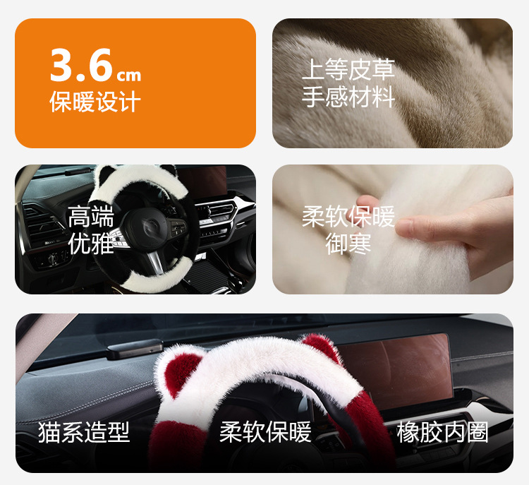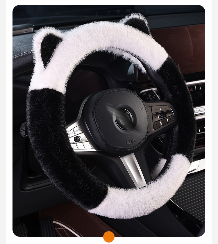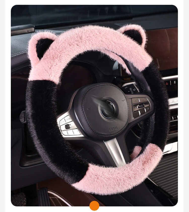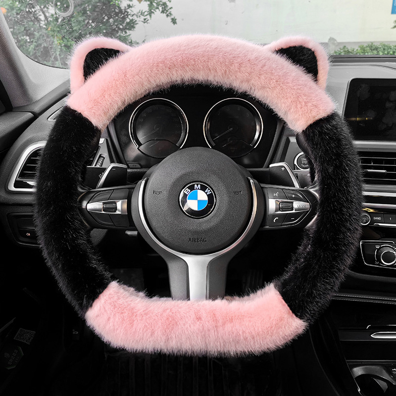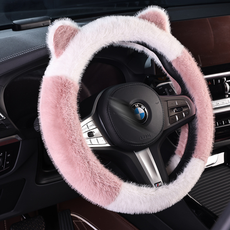 새로운 국경 뜨거운 판매 긴 머리 귀여운 겨울 자동차 스티어링 휠 커버 따뜻한 3 차원 버전 고양이 귀 봉제 손잡이 커버스토어 가기