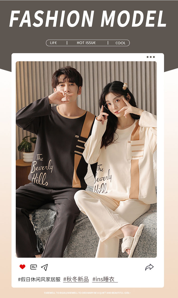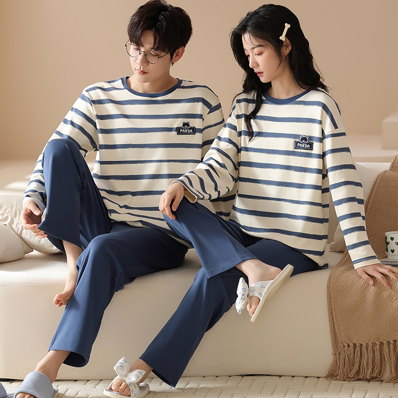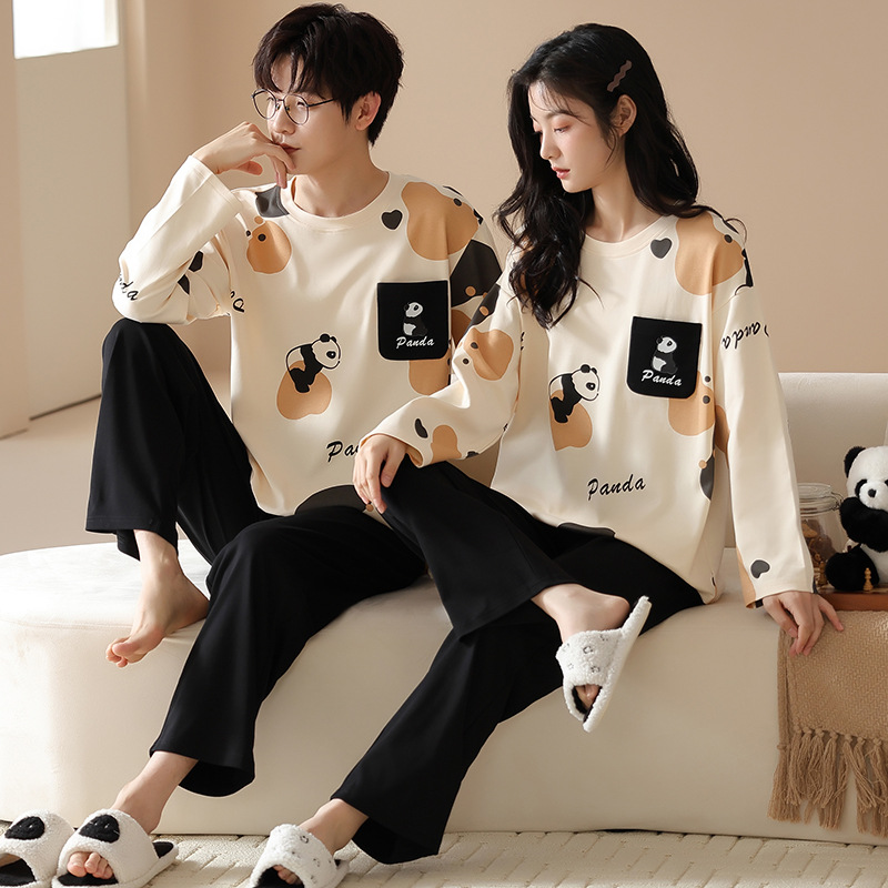 커플 잠옷 봄과 가을 순면 긴 소매 풀 오버 외주 남성과 여성의 홈 의류 만화 귀여운 가을과 겨울 순면스토어 가기