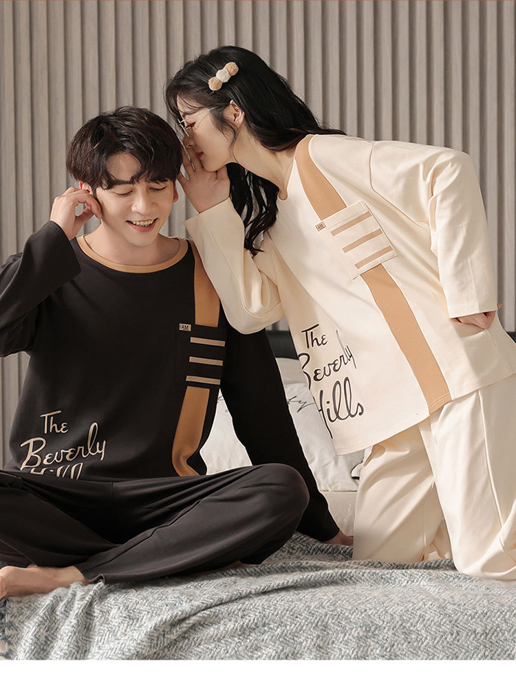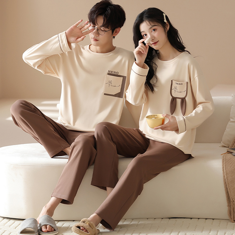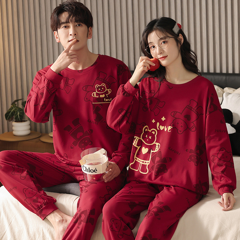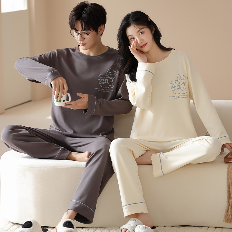 커플 잠옷 봄과 가을 순면 긴 소매 풀 오버 외주 남성과 여성의 홈 의류 만화 귀여운 가을과 겨울 순면