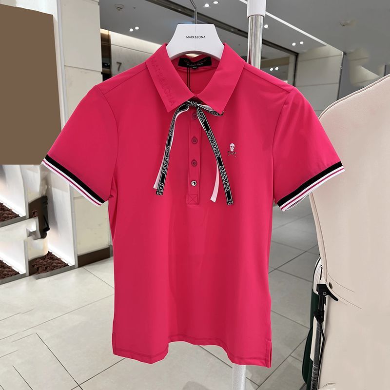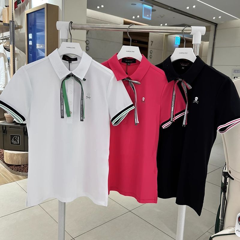 24 여름 여자 옷깃 리본 반팔 톱 24 뉴 한국 골프 의류 웨스턴 스타일 올매치스토어 가기
